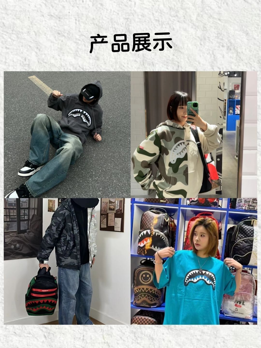 本篇笔记关联了sprayground 2024年春季鲨鱼嘴潮流休闲户外防水包双肩包 透明、sprayground 满印鲨鱼迷彩嘴印花拼接美式解构风长袖纯棉加厚连帽卫衣外套 WE013328 黑等商品,为用户提供真实的使用体验和购买参考。