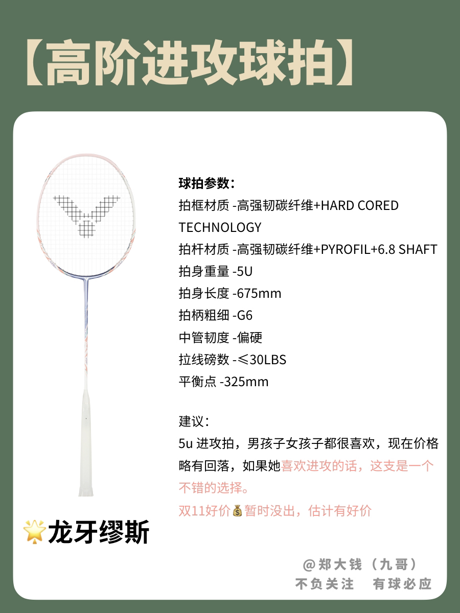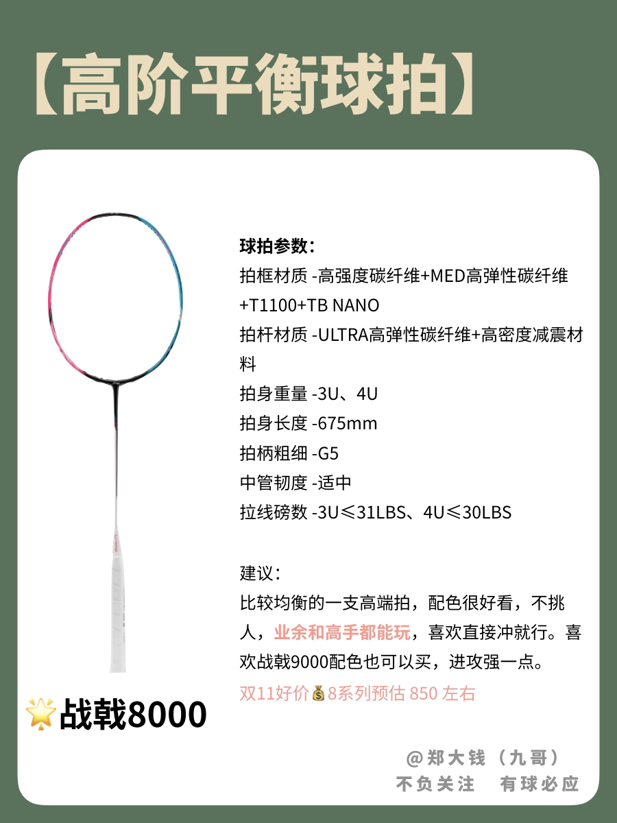 攻略都会发到双十一群里,有需要的朋友可以直接进 ,14号准时发车。 注:以下价格仅供参考,还有额外🧧价格可能更便宜 🏸战戟8000 /雷霆80/锋影800n 口碑比较好的高端平衡型球拍,也是为数不多对新手很友好的高端拍之一,看中直接冲。 🏸战戟9000 /雷霆90/锋影900n 比战戟8000进攻更强的平衡型球拍,上手难度高一点。 🏸白金利爪/黑金隼 说要停产的,不知道哪又来一批货,这次错过可...
