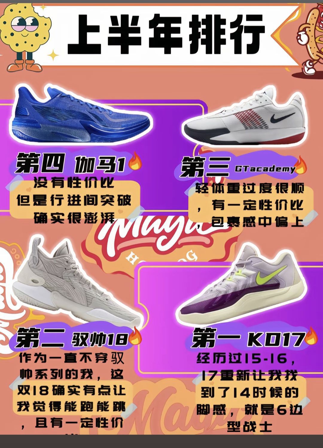 本人轻体重,瘦脚高脚背,七投三突,上半年也穿过几双球鞋,结合半全场,我的评判标准是包裹性中上,不卡脚趾,不掉根,综合上述几点,浅排一下心目中的前十,跟大家一起分享一下