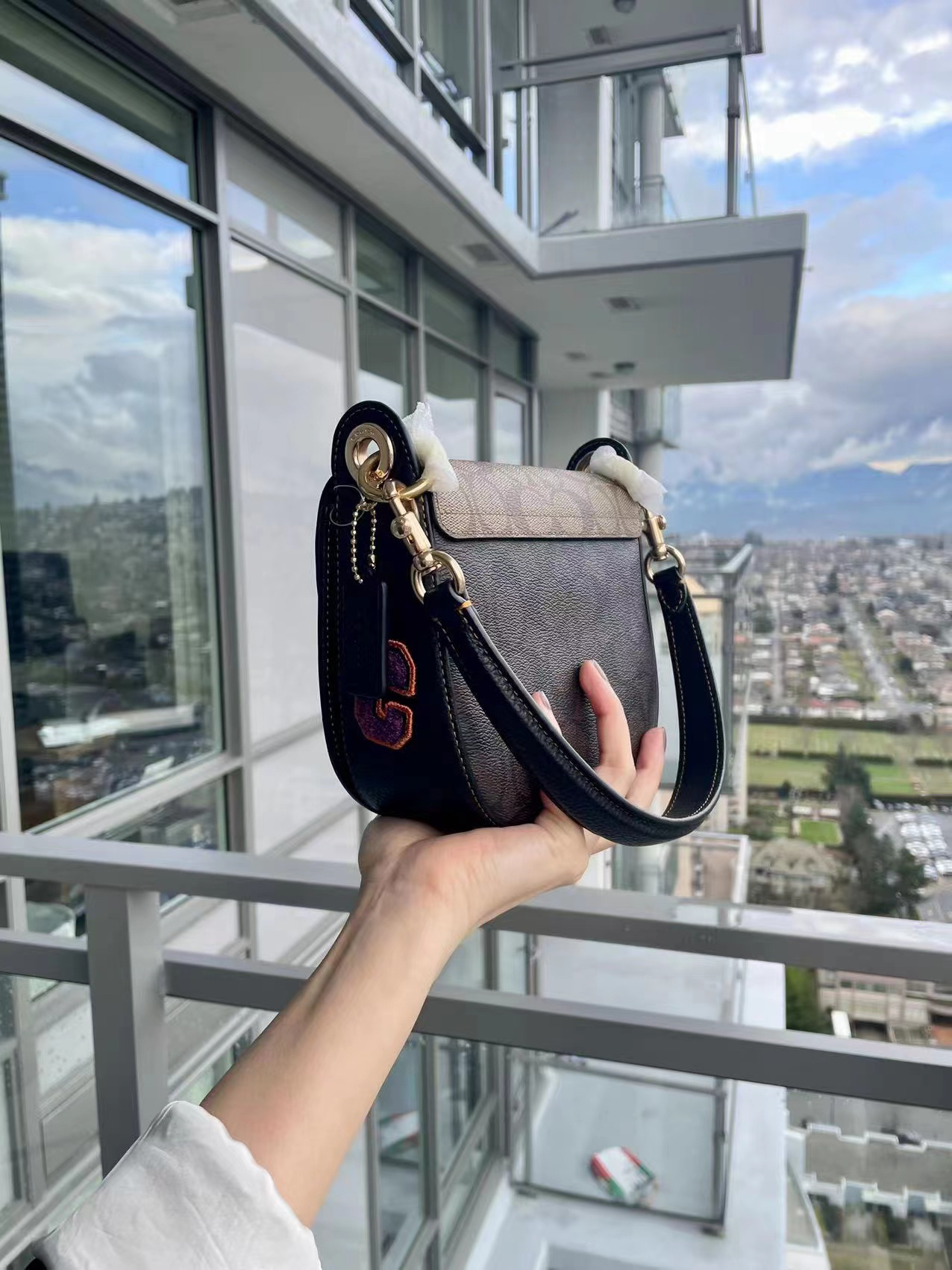 本篇笔记关联了Coach Kleo 17 经典老花徽章贴标搭扣彩色肩带马鞍包单肩斜跨腋下包 黑色拼卡其色 C6917-IMNOX等商品,为用户提供真实的使用体验和购买参考。