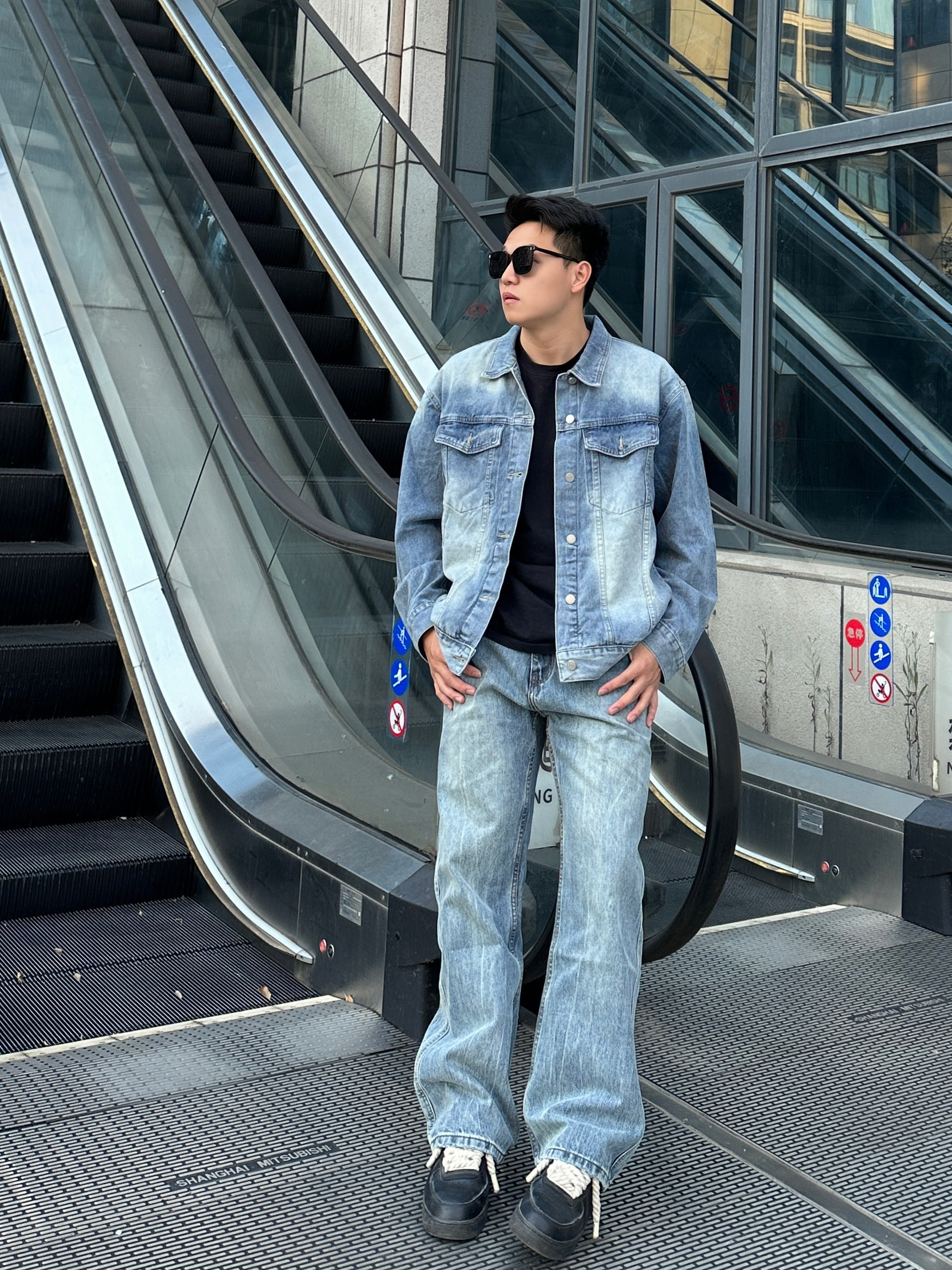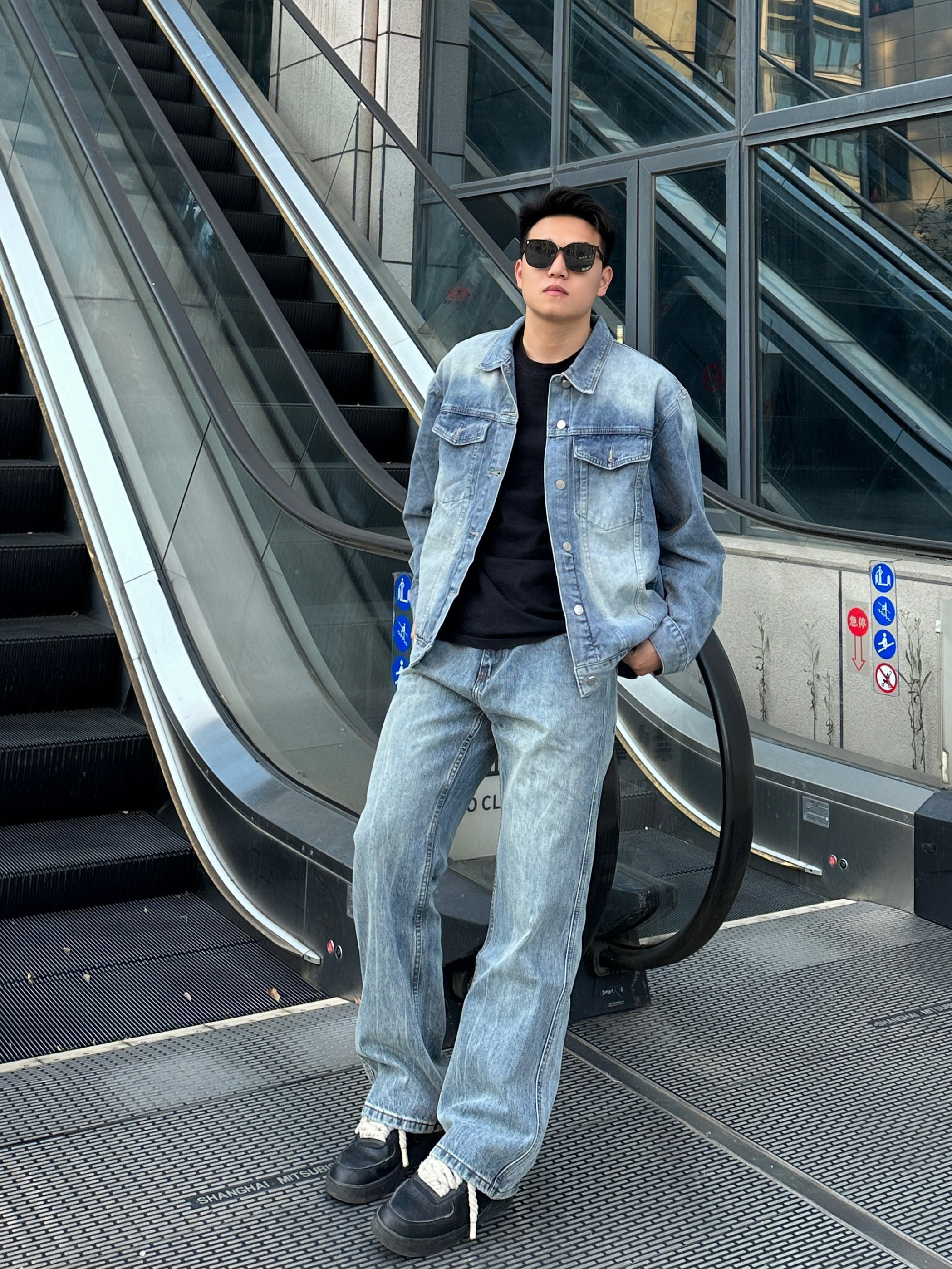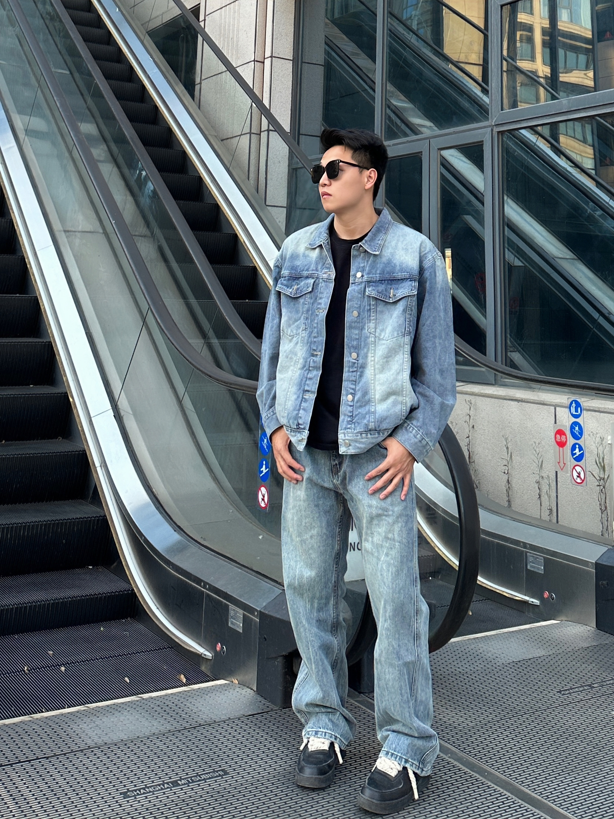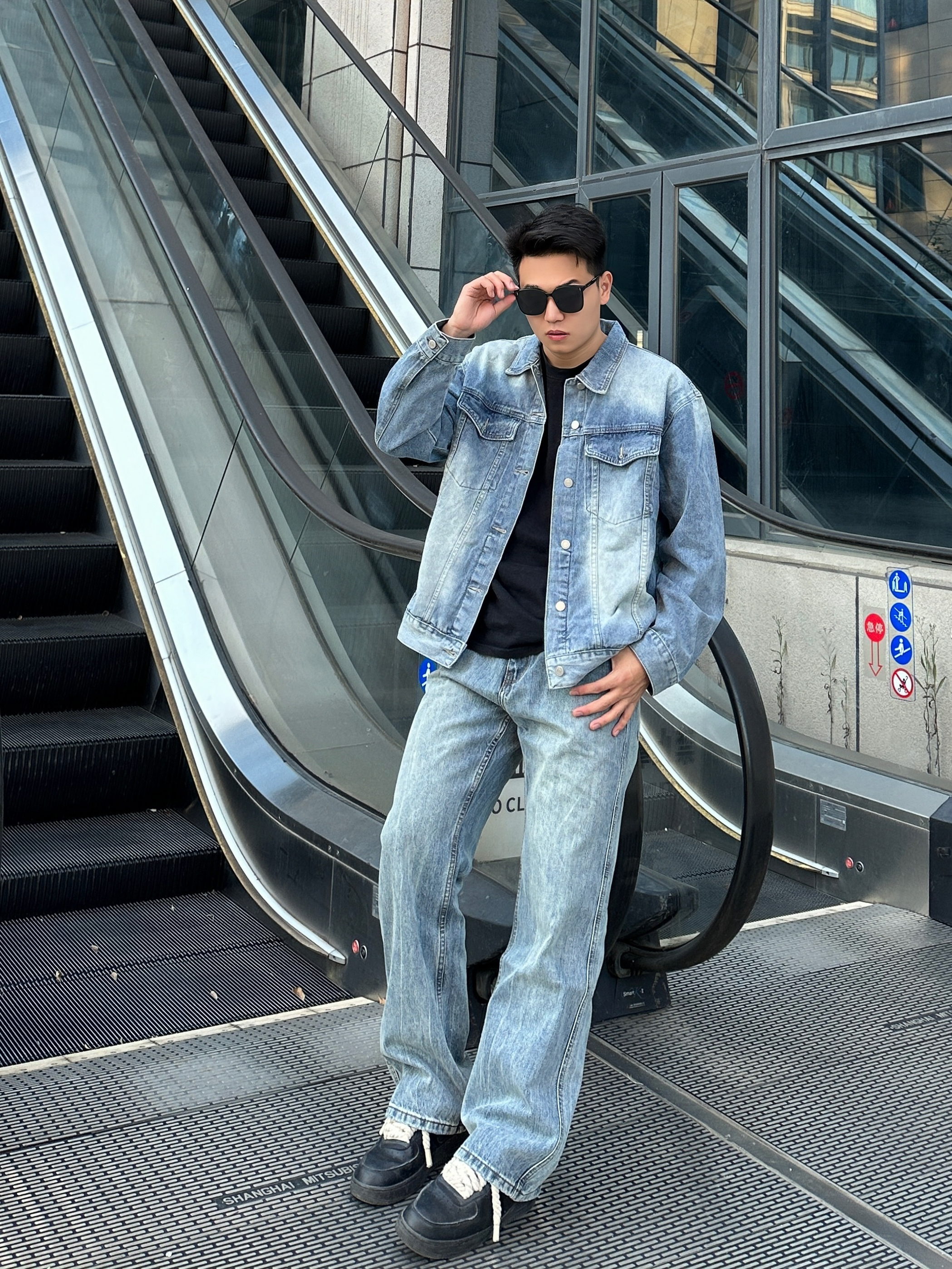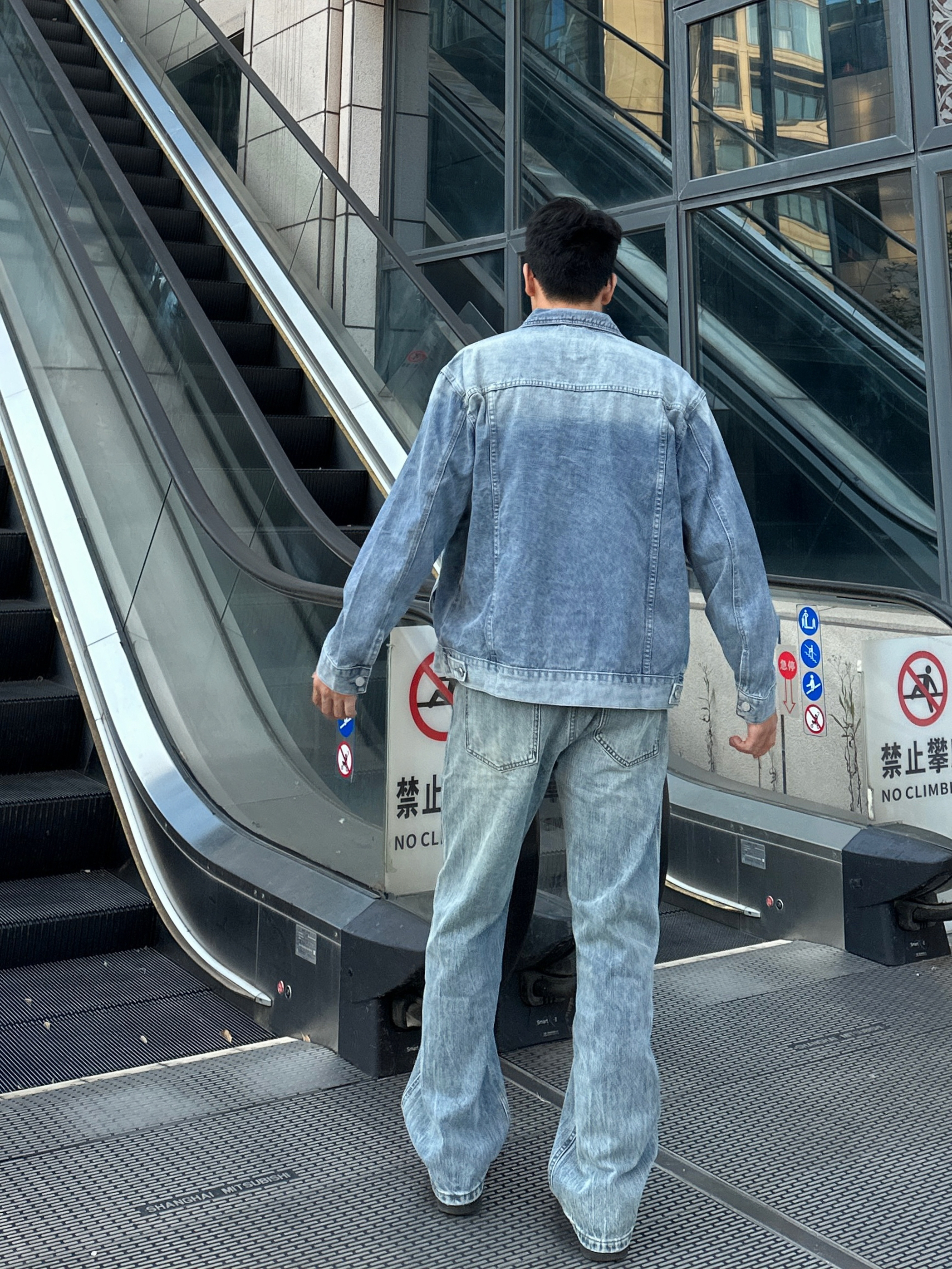 一身牛仔搭配经典时尚 渐变色牛仔外套潮流帅气 版型也很不错 搭配蓝色牛仔裤包帅的! 👖UKTK