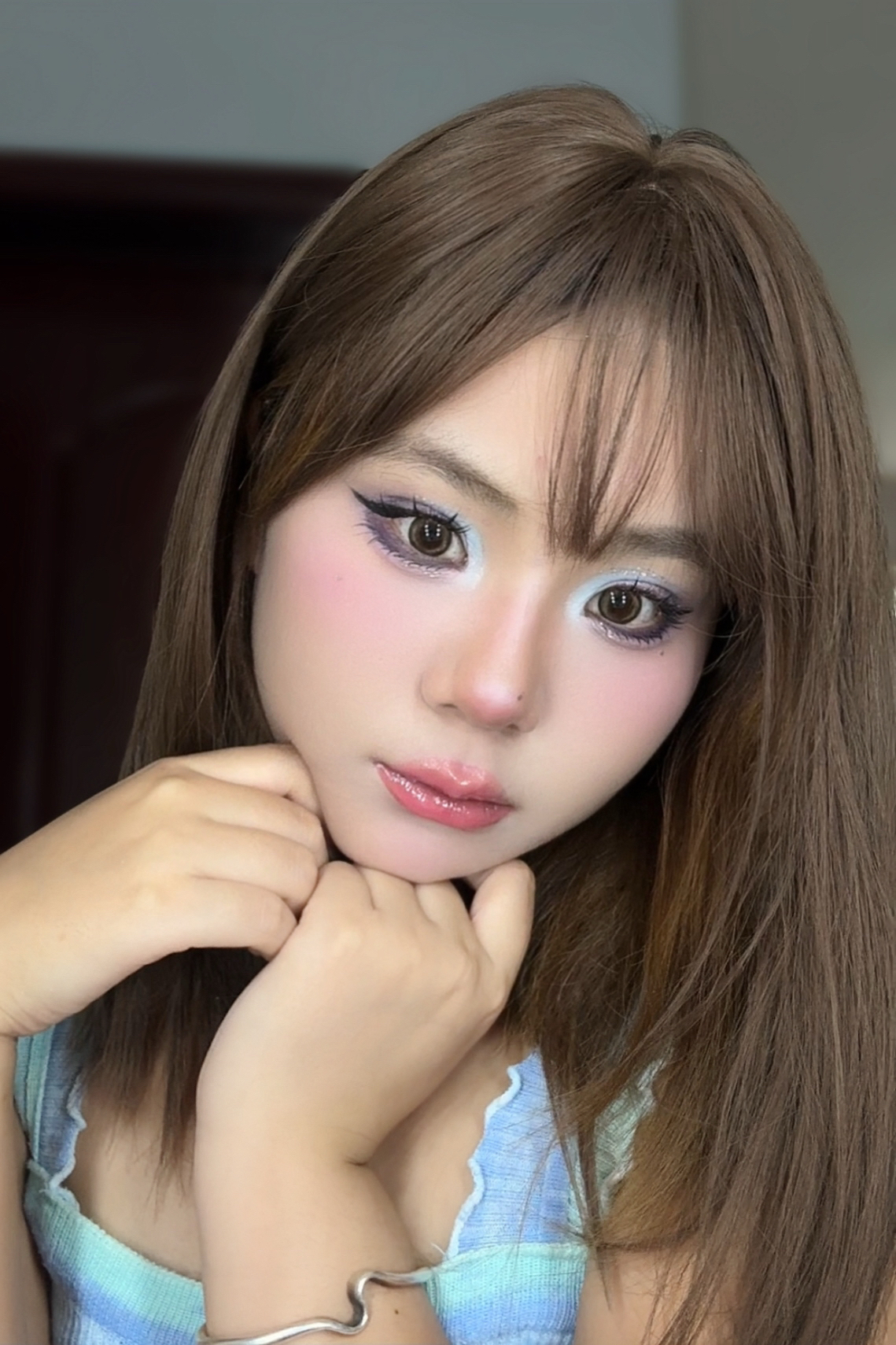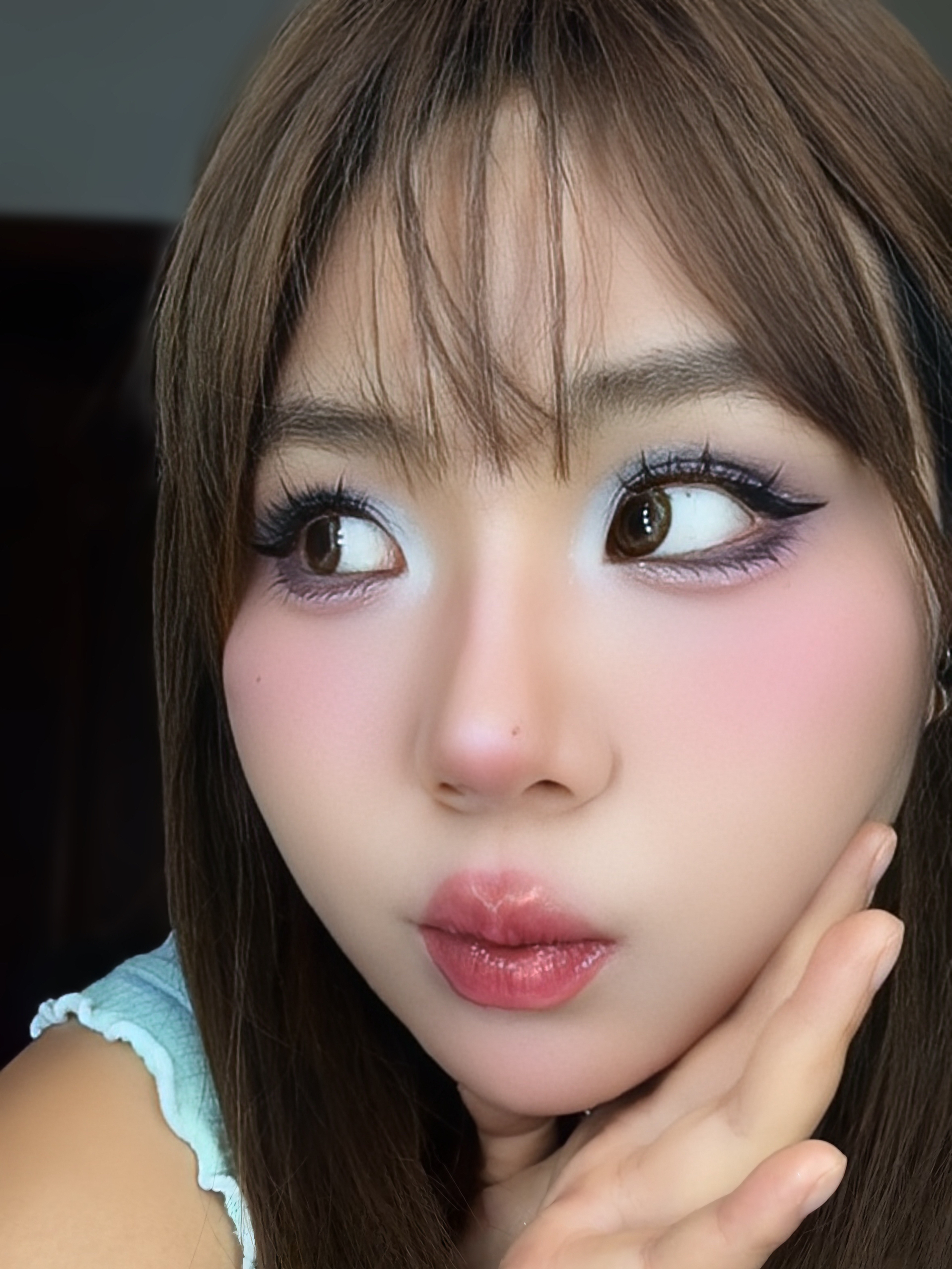 今天的玩妆是紫色十薄荷蓝😉 整体采用撞色!这个音乐节氛围直接拉满~😍 眼妆一个盘十腮红和唇釉同色系~ 😇 具体妆教下期来😂