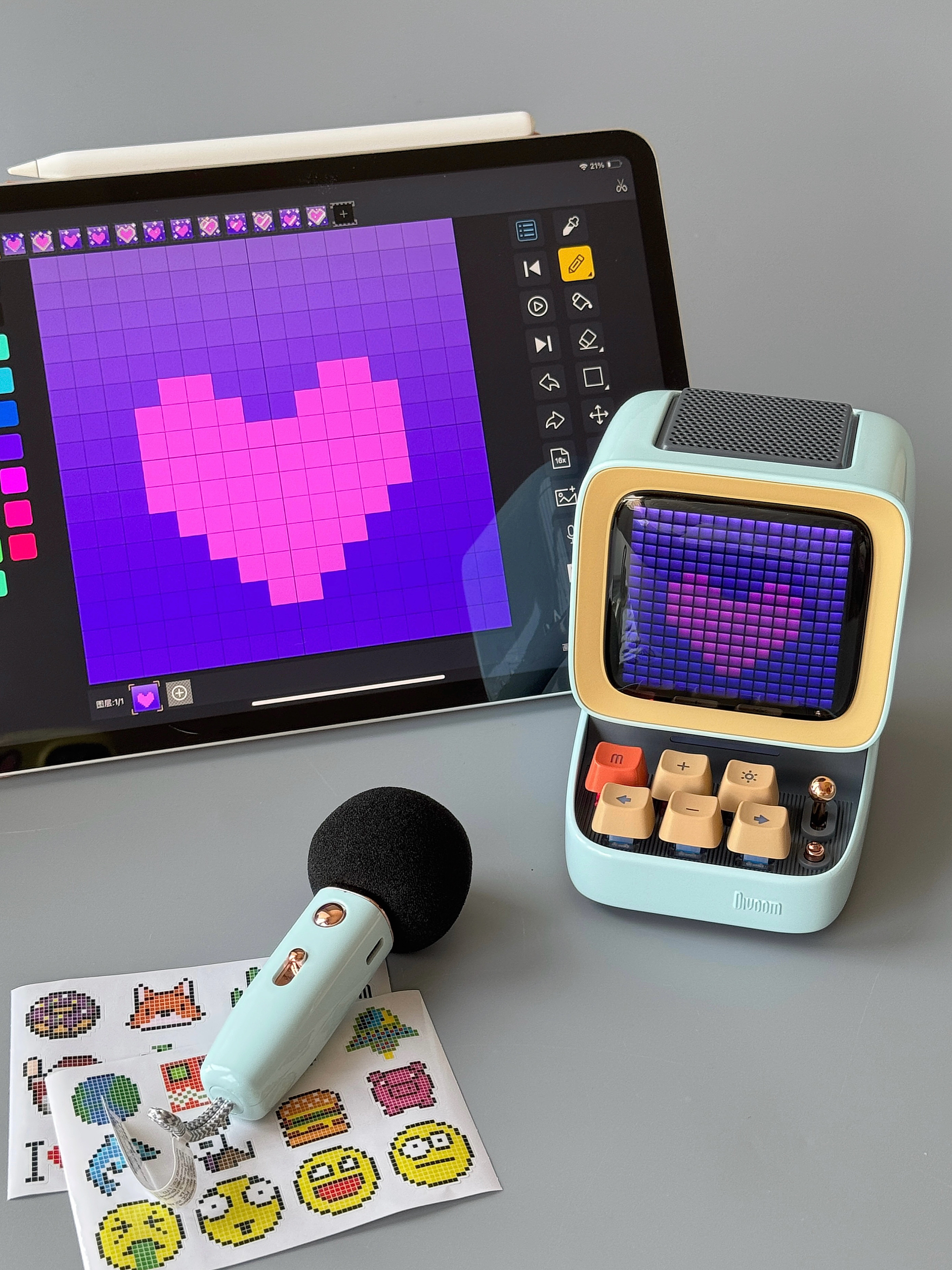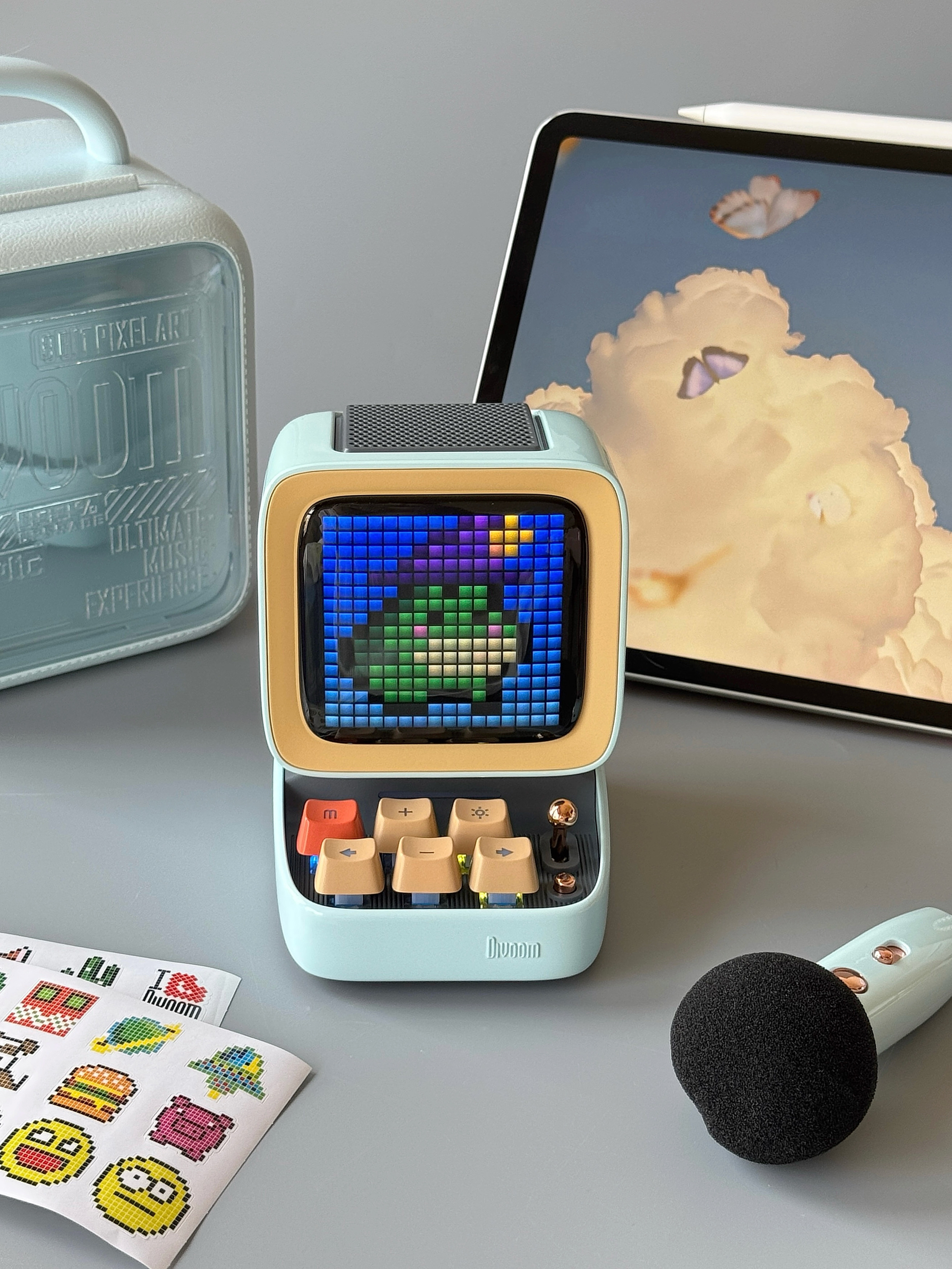 啊啊啊又挖到宝了我! 就是介个点音小电脑音箱呀 小电脑造型复古又别致~ 我试了一下 音质尊滴hin不错 还有小麦克风🎤在家k歌好快乐 像素屏还可以自己DIY哦~✨