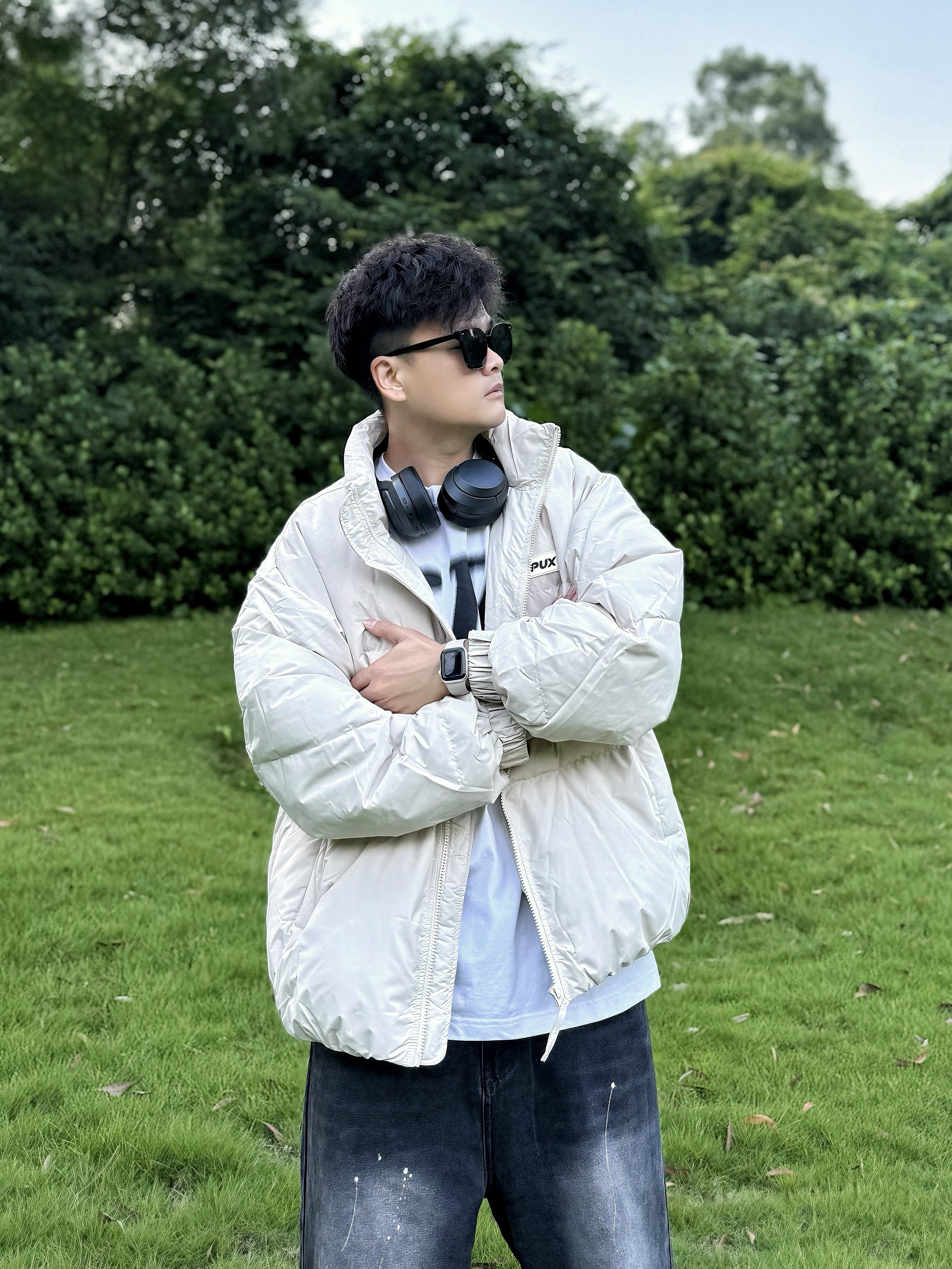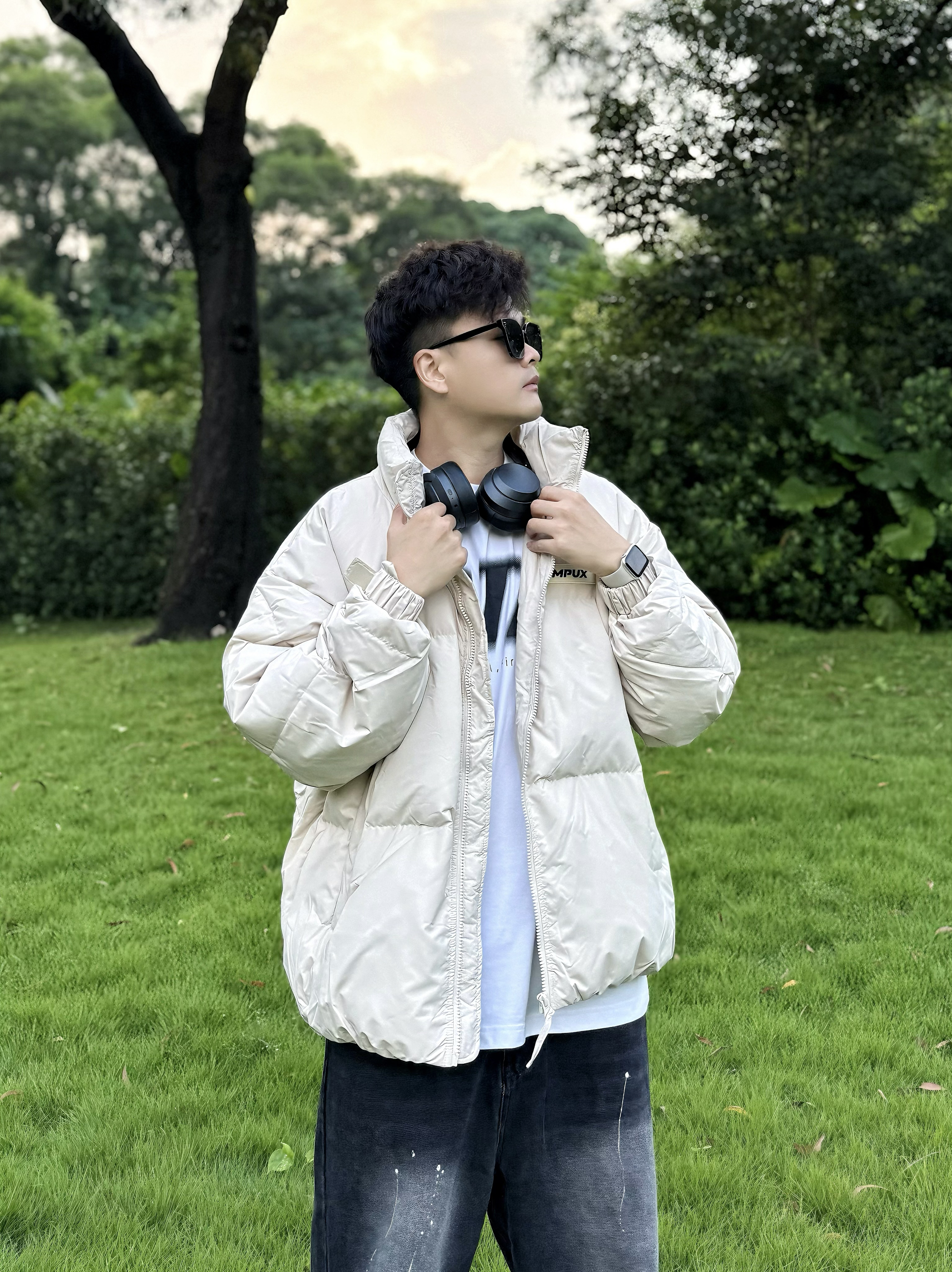 hello!又素我呀,阿b仔 过几天和对象要去新疆旅游✈️ 我打算穿这样,look.. 👔上身白色打底,脖子戴个耳机 🧥然后外穿一件杏色羽绒服 简单的logo外观,上身潮流帅气 穿着舒服暖暖哒,蓬蓬的质感还阔以nice 👖下身再来一条黑色牛仔裤 休闲风get,潮男feel拿捏住咯 👟然后随便穿一双黑色板鞋 呼应我的裤子颜色完事,so easy? - 尺码参考丨180cm/70kg 上身2XL 🧥:...