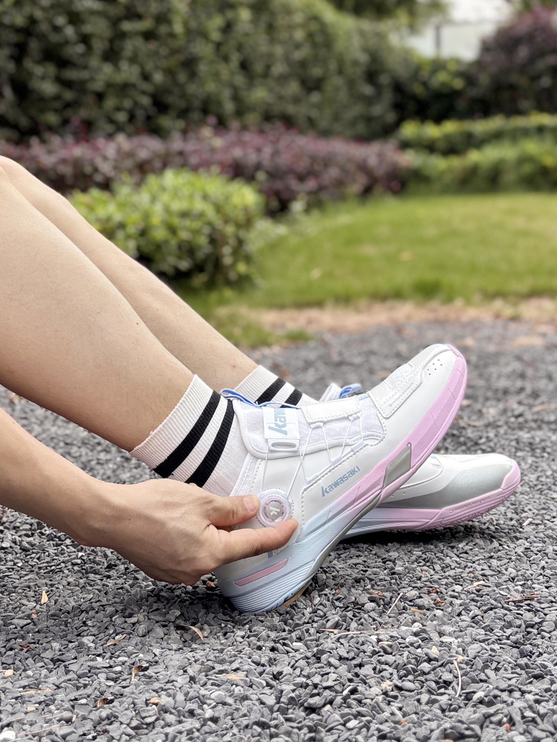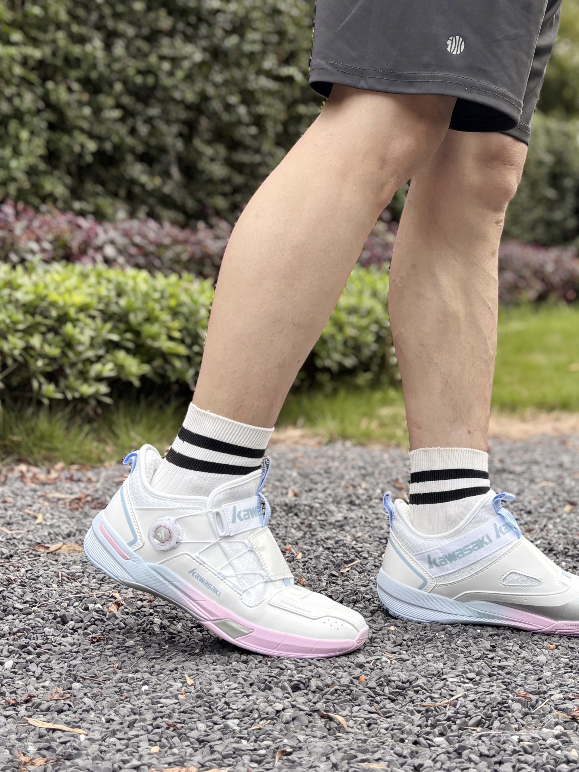 💁♂️:Hi~ 这里是大大纳mi~ 拥有好看的鞋就更想去运动了🏸 看中 Kawasaki川崎 穿越2.0MID的颜值 用的是粉蓝CP配色,清新又显温柔诶! 皮革鞋面➕旋转扣免系鞋带设计 吼有质感的说,还敲适合我这种懒人! 有透气网布,打球也不会闷脚出汗 日常通勤搭配裤装小裙子👗也很好看 尺码不偏码!正常选择就可以啦✅