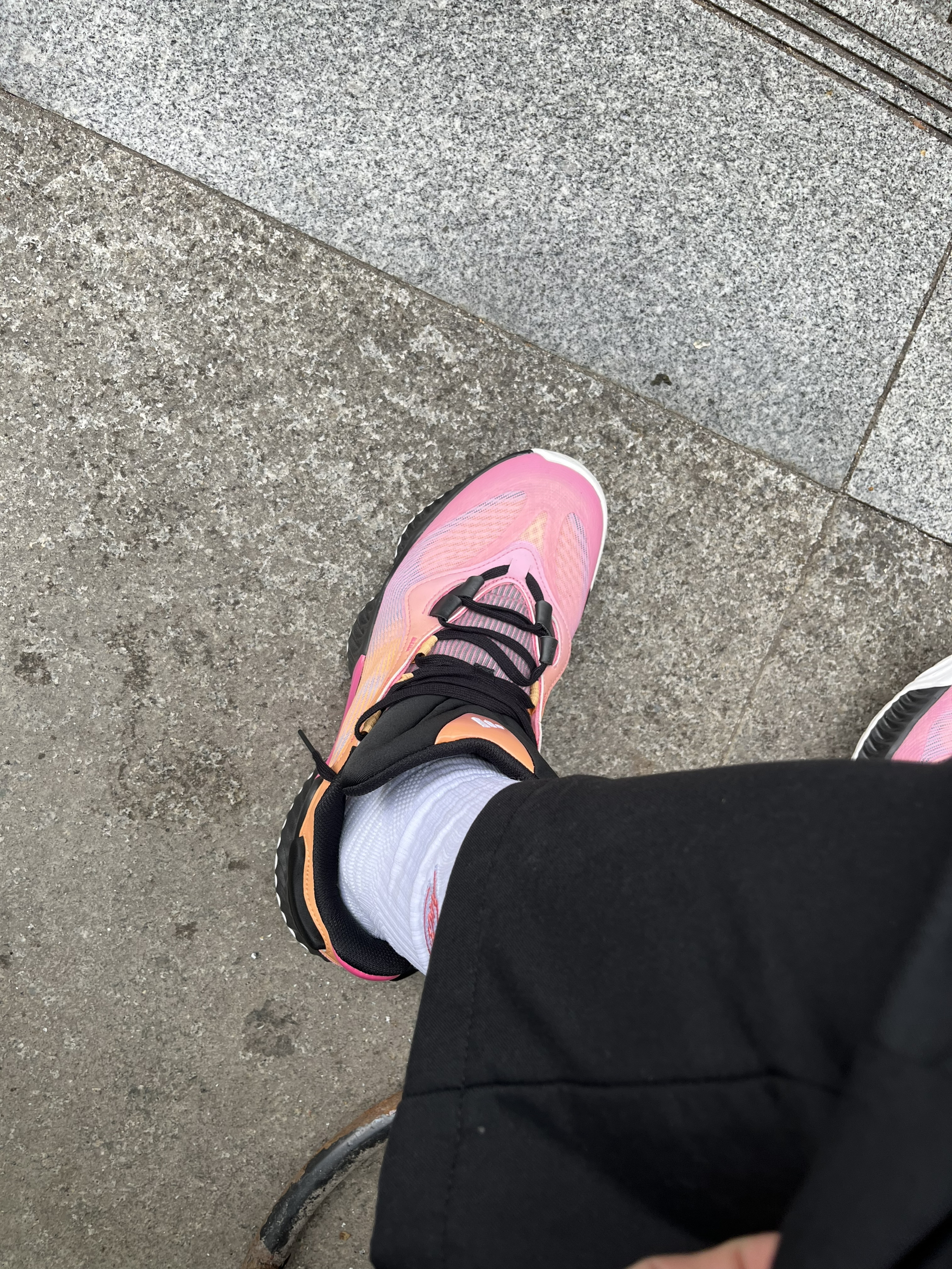 属于是pb2018换了个新鞋面 我认为Pb2018的中底是没有什么问题的 唯一变化的就是鞋面部分 原来的pb2018是织物鞋面 这个换成了鞋头多层的复合鞋面 中足的鞋面只有一层网纱 比较单薄 估计透气性会好一些 有三条动态绑带连到中底 不过重量的变化感受不太出来 不过颜值话就 我觉得变得更有质感了 一些小细节 用了一些漆皮和麂皮点缀了一下 还有就是不建议新鞋就穿去打球🏀 先压压马路 边问我怎么知道...
