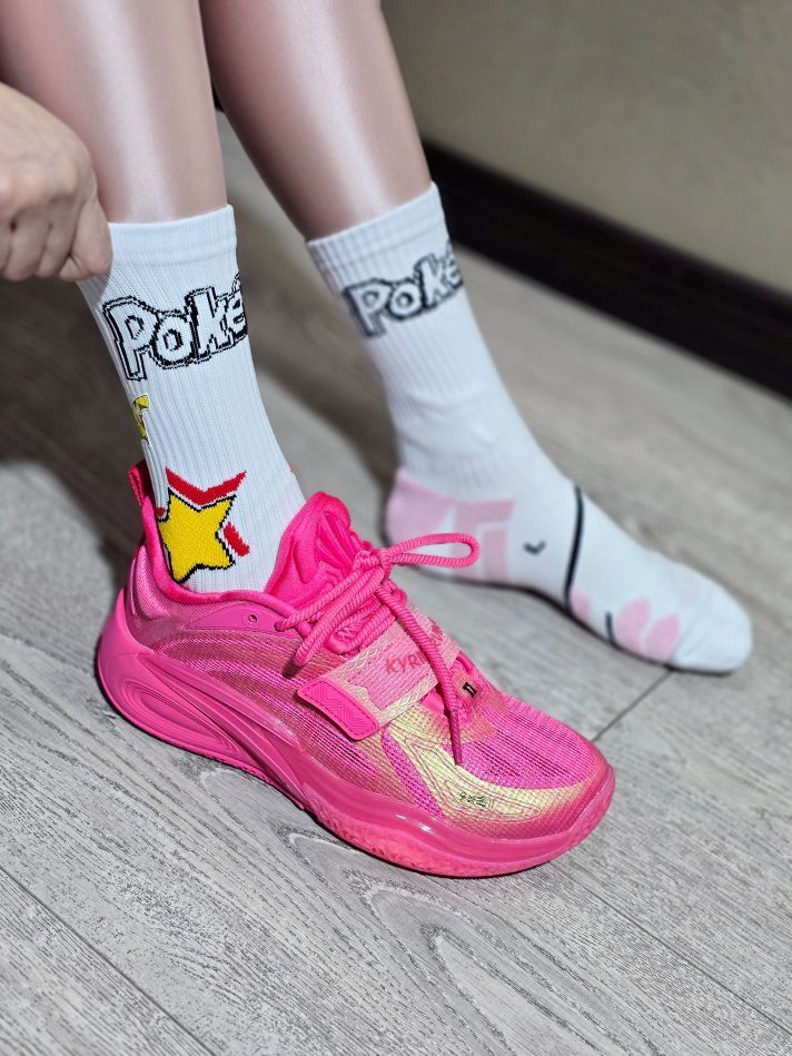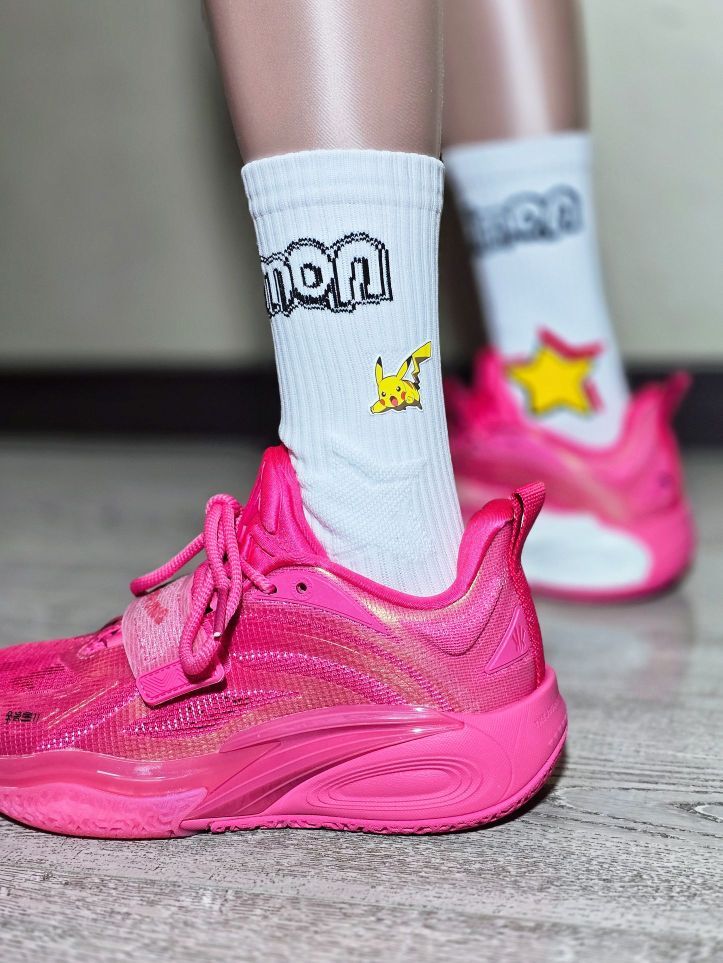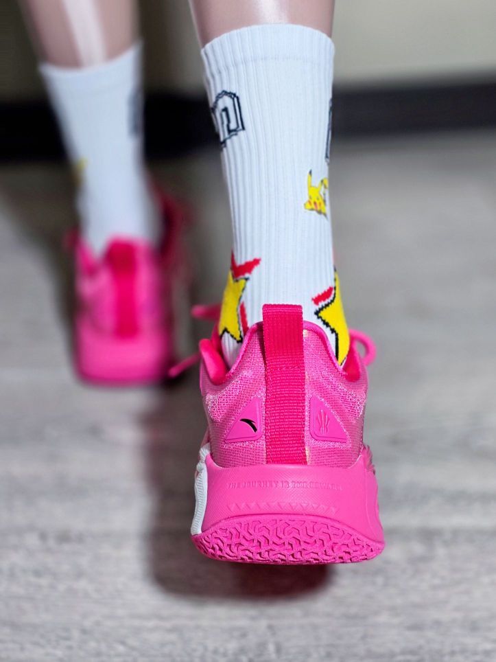 欧文一果冻粉上脚确实有点不好驾驭呀,这个芭比粉的涂装有点太亮了, 虽然欧文一鞋型上脚效果很不错, 但个人感觉这个配色有点太艳 丽了, 有一定的搭配难度!