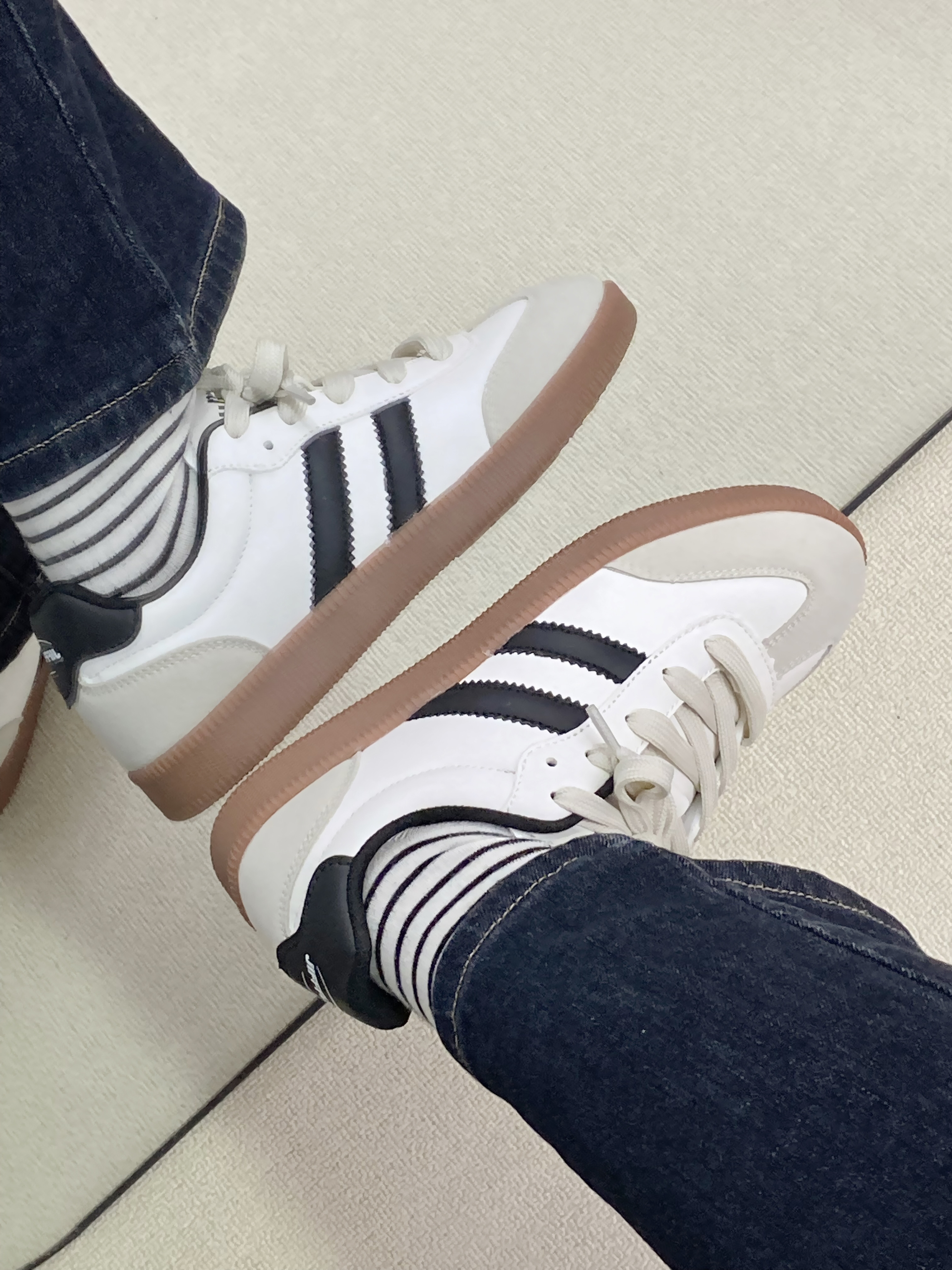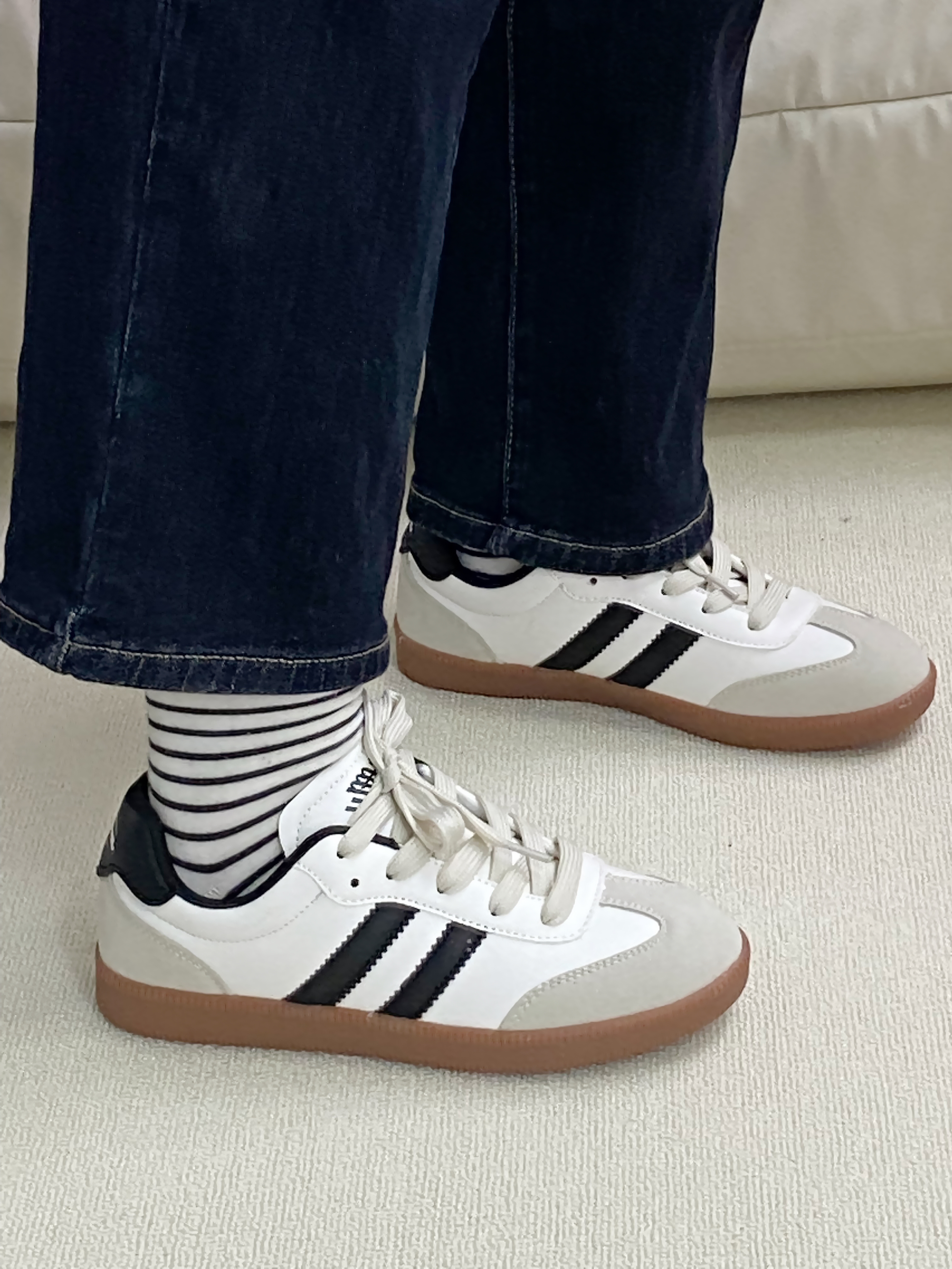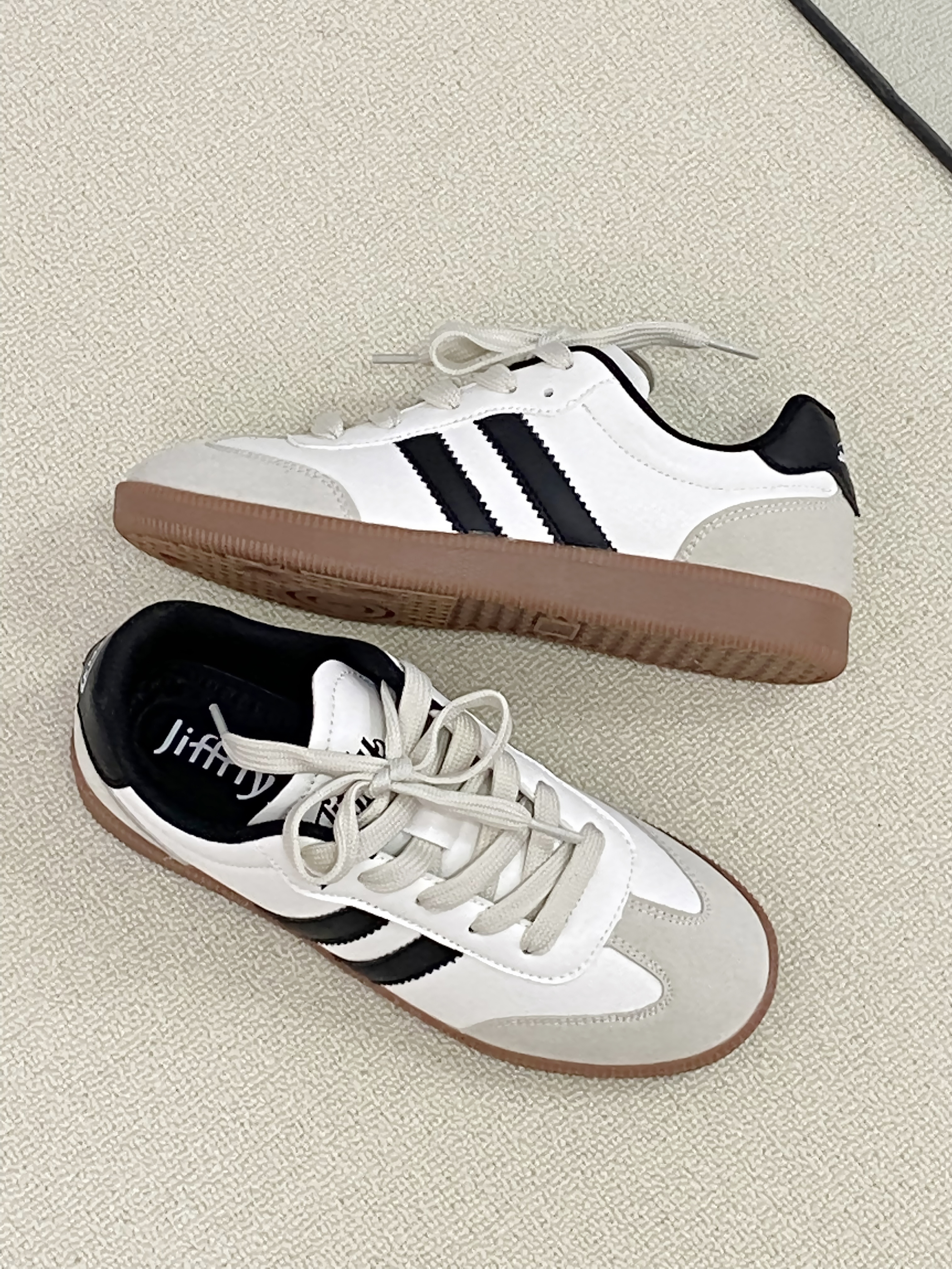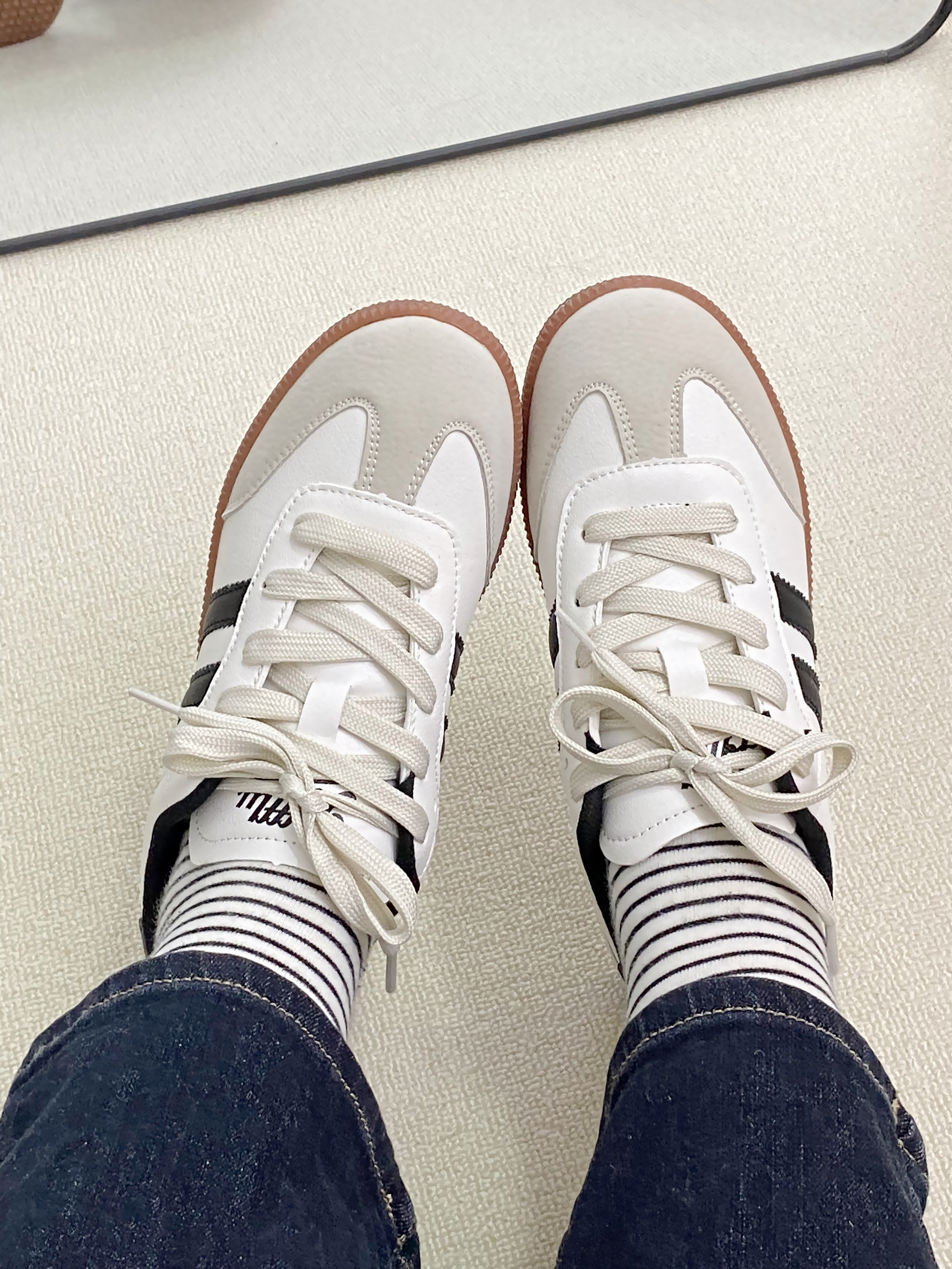 光看图片就能知道这双鞋有多好看! 和以往德训不同的是 这双做的卡其色鞋底的撞色 自带清冷感 上脚一整个韩味 鞋子还很轻盈 走路不会累脚