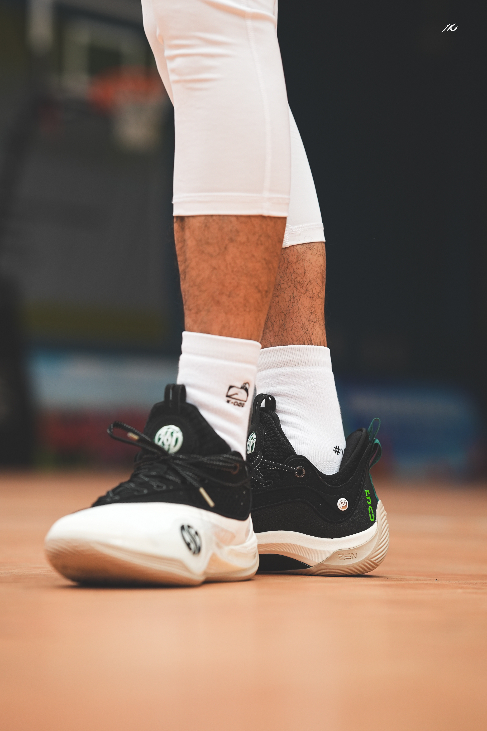 今日给兄弟们上脚展示下禅6秋冬PRM版本的熊猫配色! 我个人觉得上脚还是很帅的! 黑白阴阳设计,夹带点绿色点缀,符合熊猫主题! 这双鞋我个人体验下来认为更是锋卫摇摆人使用,相比前几代稳定性更好,前掌还填充了碳临界材料,启动爆发更好,同时重心也更低! 尺码建议大宽脚高脚背买大半码!