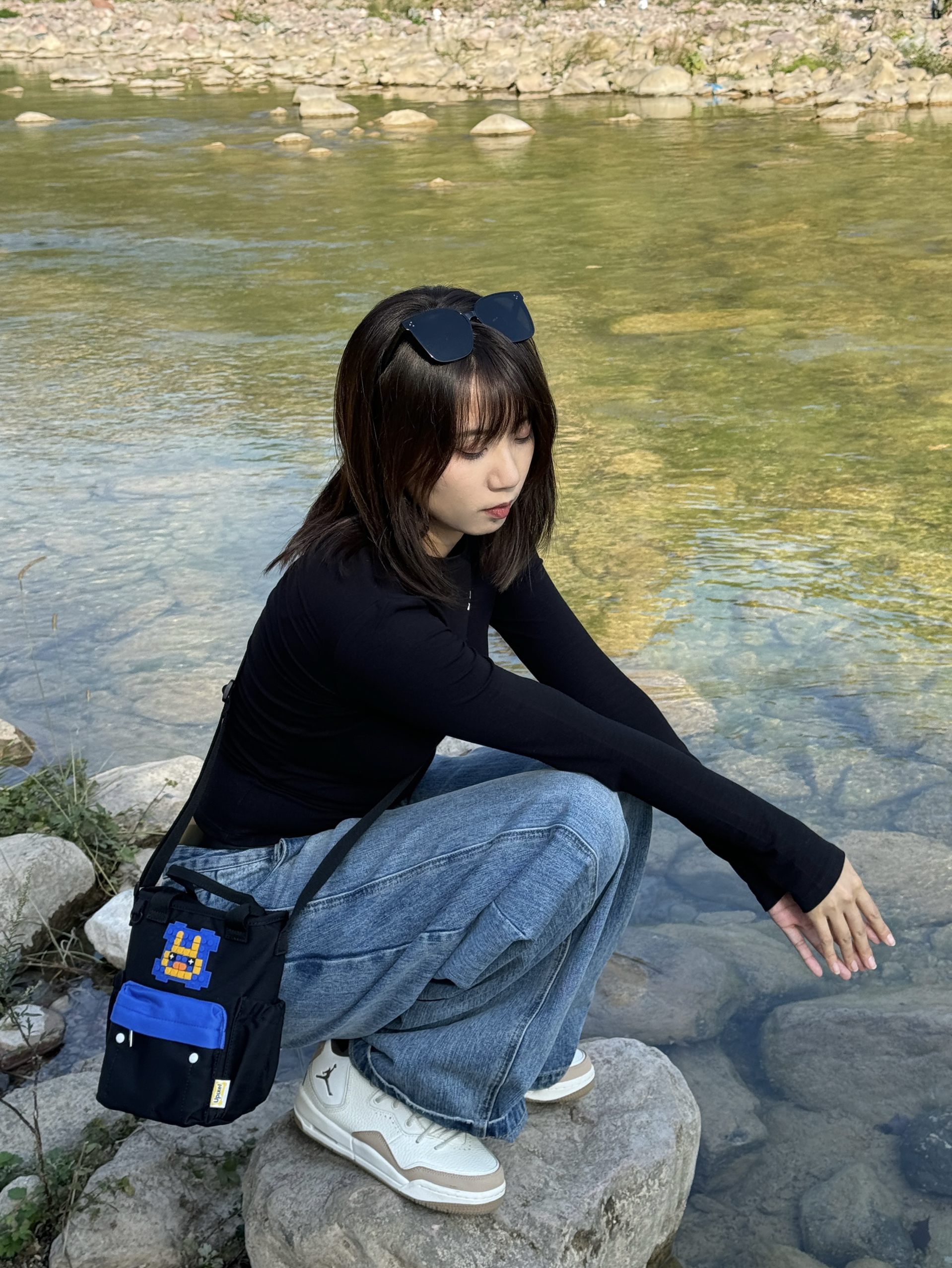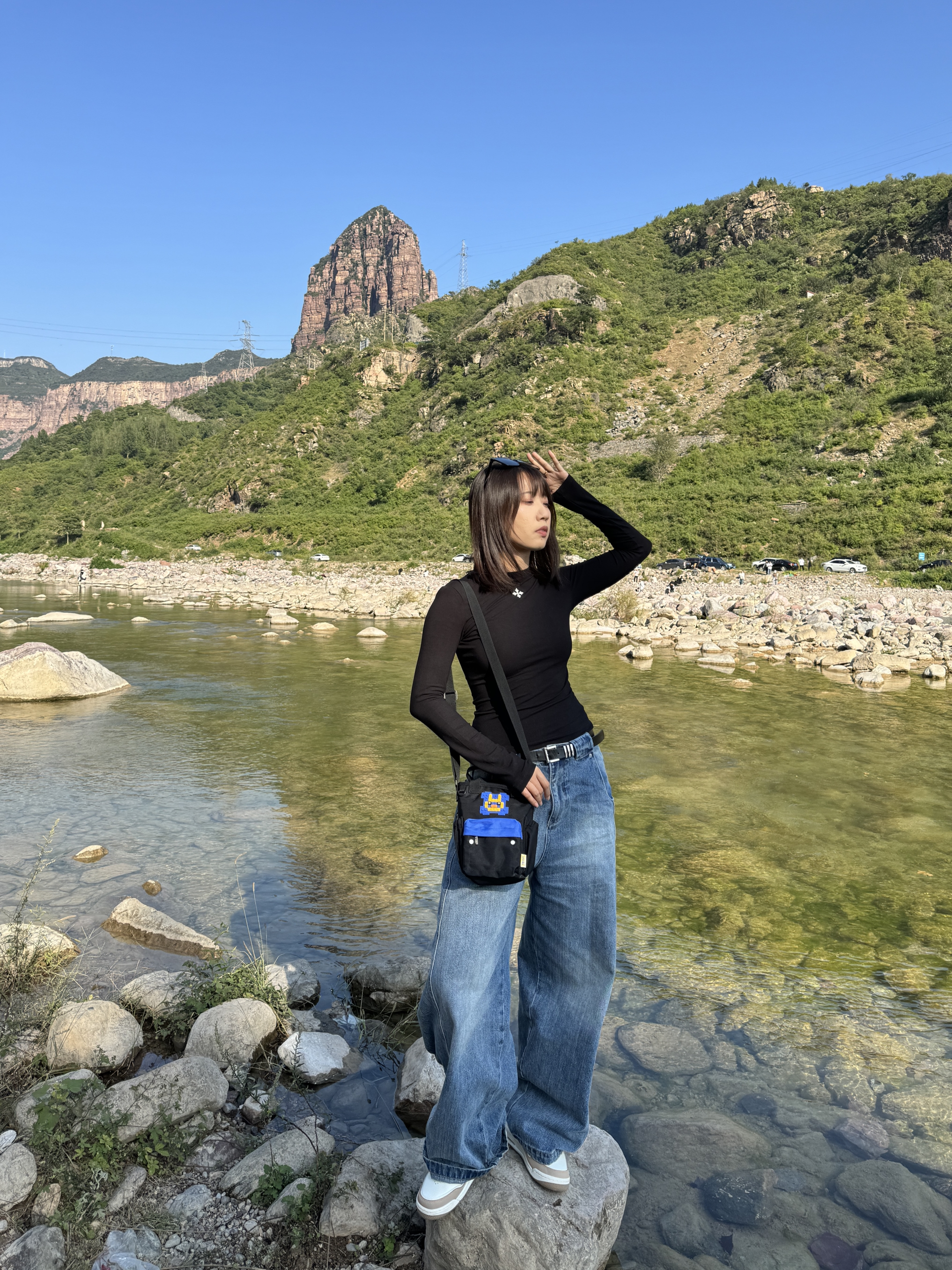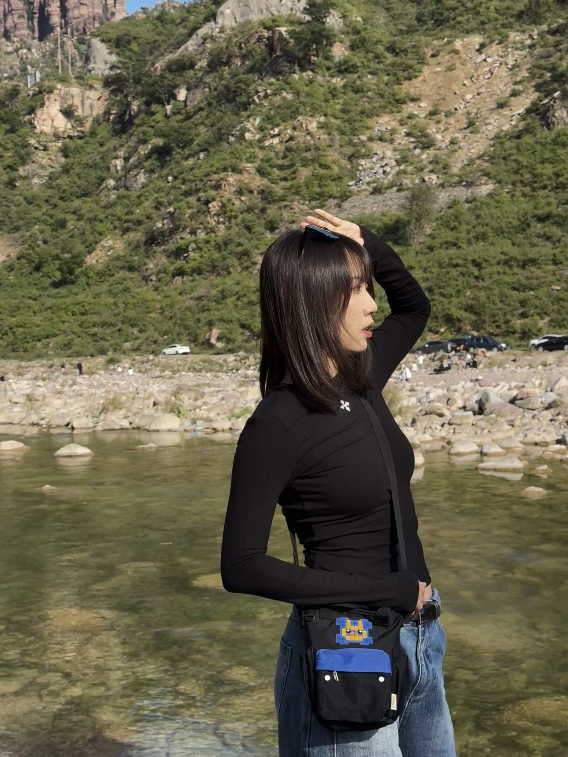 有山有水好地方! fitcheck一下! 黑色紧身croptop配弯刀牛仔裤,再fit一个同配色斜挎小包,原相机把松弛感拉满!