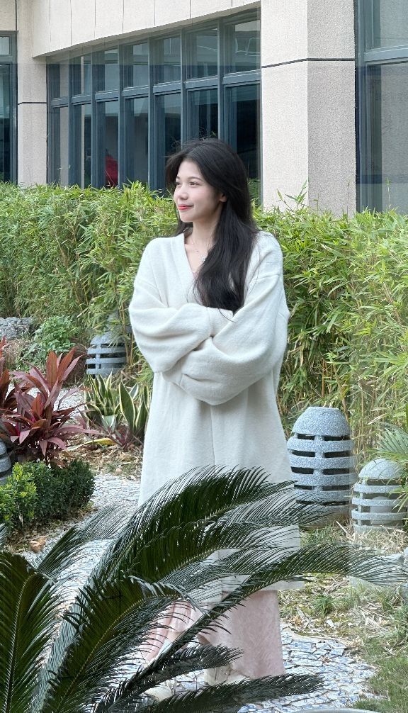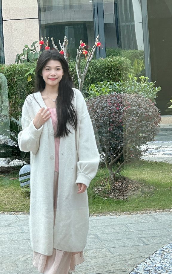 大衣布料柔软不扎人,面料是抗起球的,不起球不粘毛,很有质感,裙子的面料是轻飘飘的,很仙女,米白色的大衣搭配偏粉色的内搭,粉白搭配真的是温柔穿搭的神😆😆😆