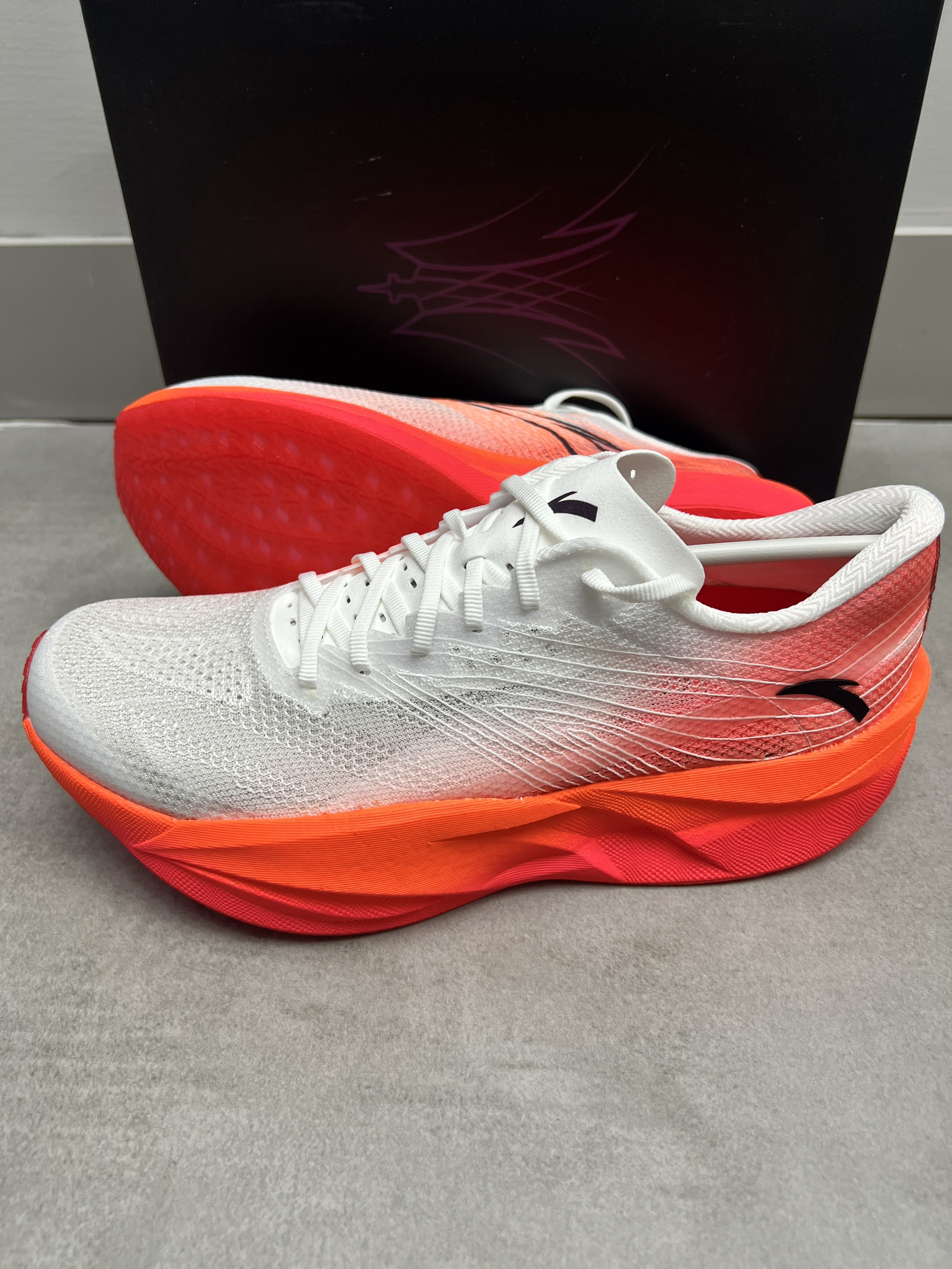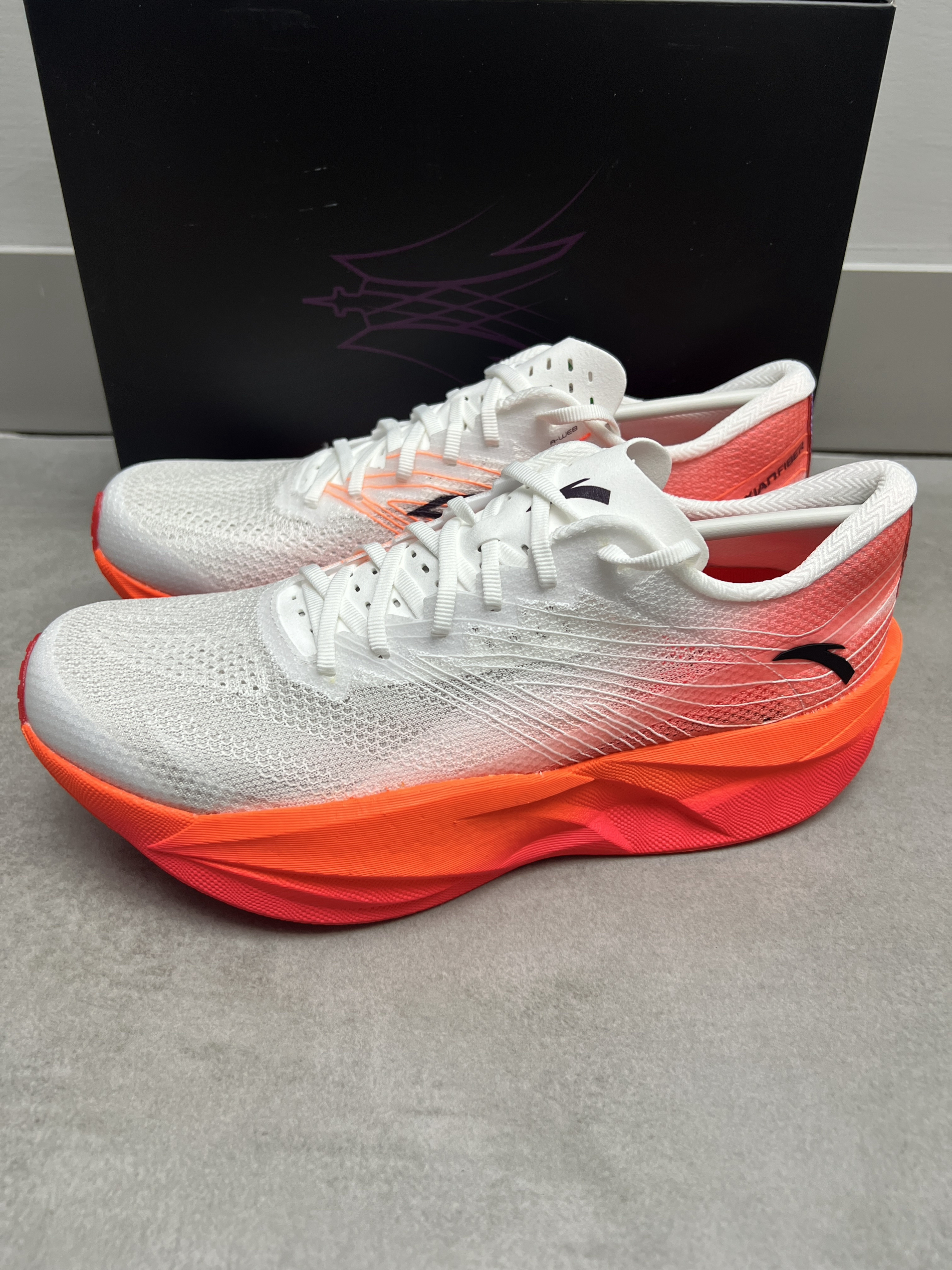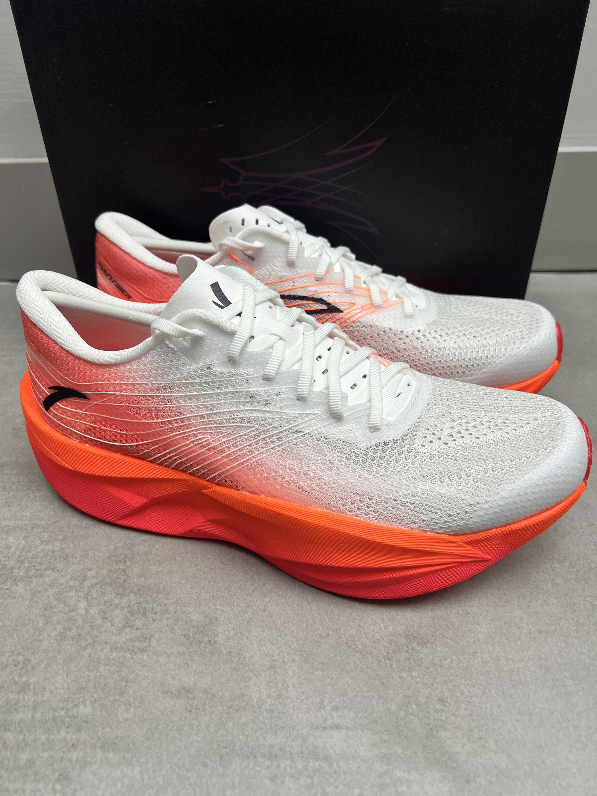 来这款安踏的C202六代新配色 !回头率高! 颜值是没话说的,外观设计都很不错的👍 鞋子很轻,穿起来很舒适很轻弹,配上氮科技和碳板的加持相当不错!半马全马就选它!