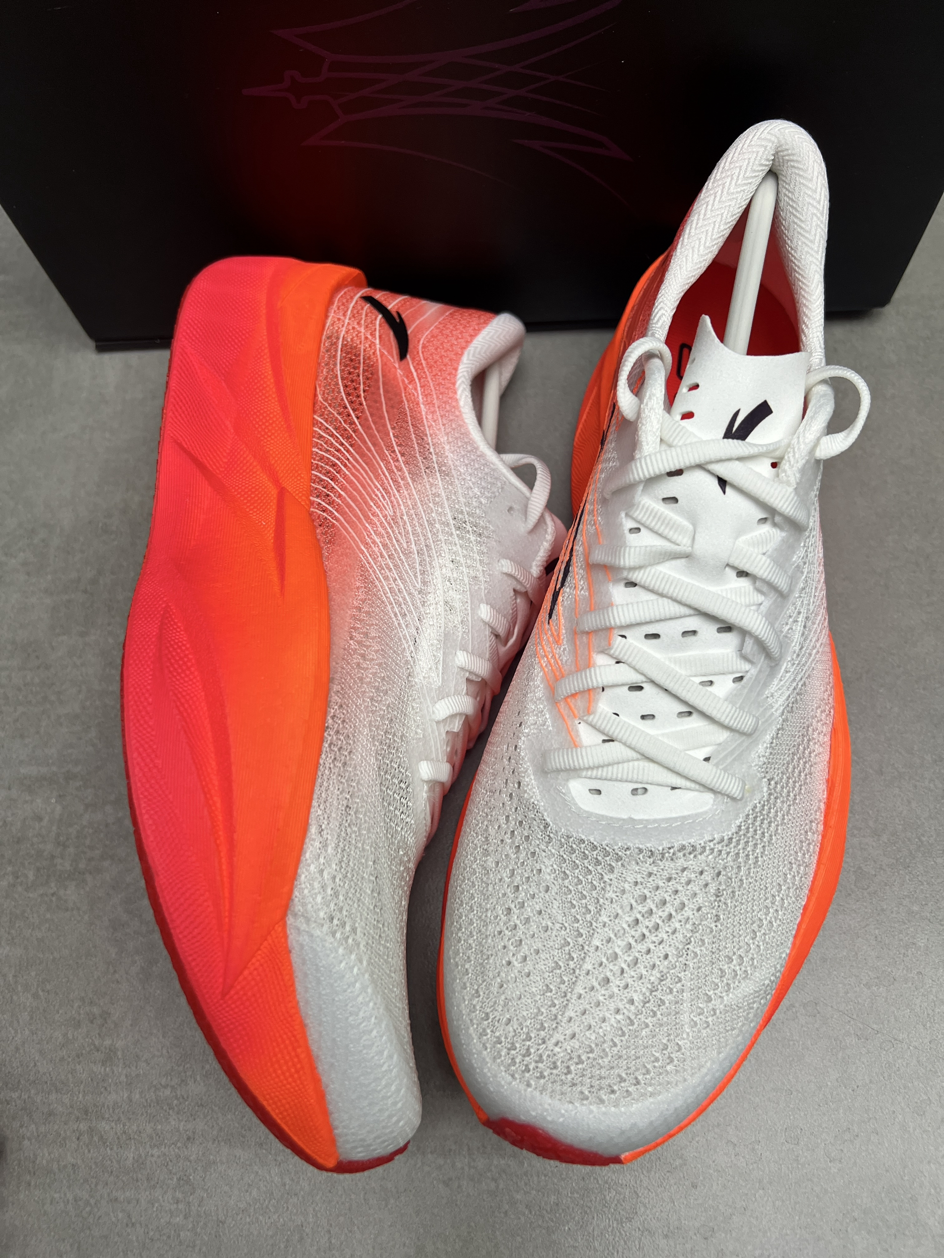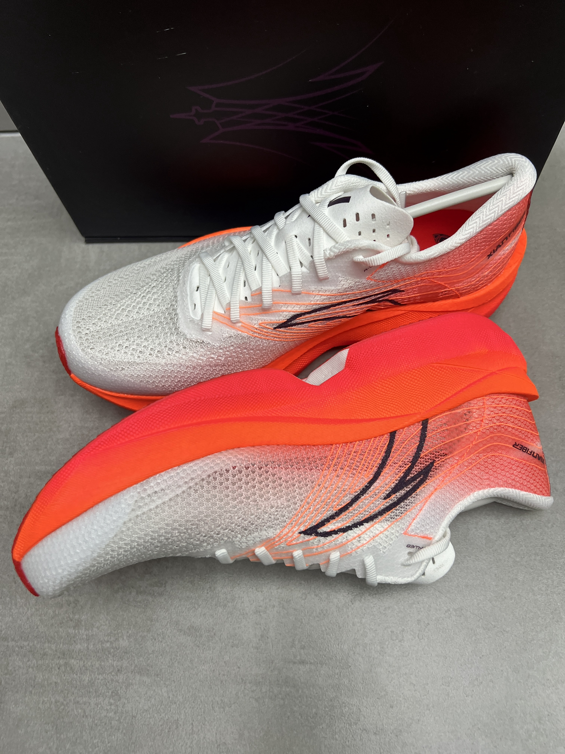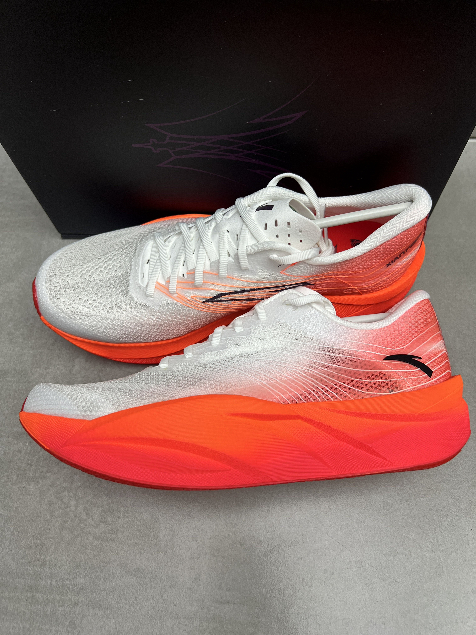 来这款安踏的C202六代新配色 !回头率高! 颜值是没话说的,外观设计都很不错的👍 鞋子很轻,穿起来很舒适很轻弹,配上氮科技和碳板的加持相当不错!半马全马就选它!