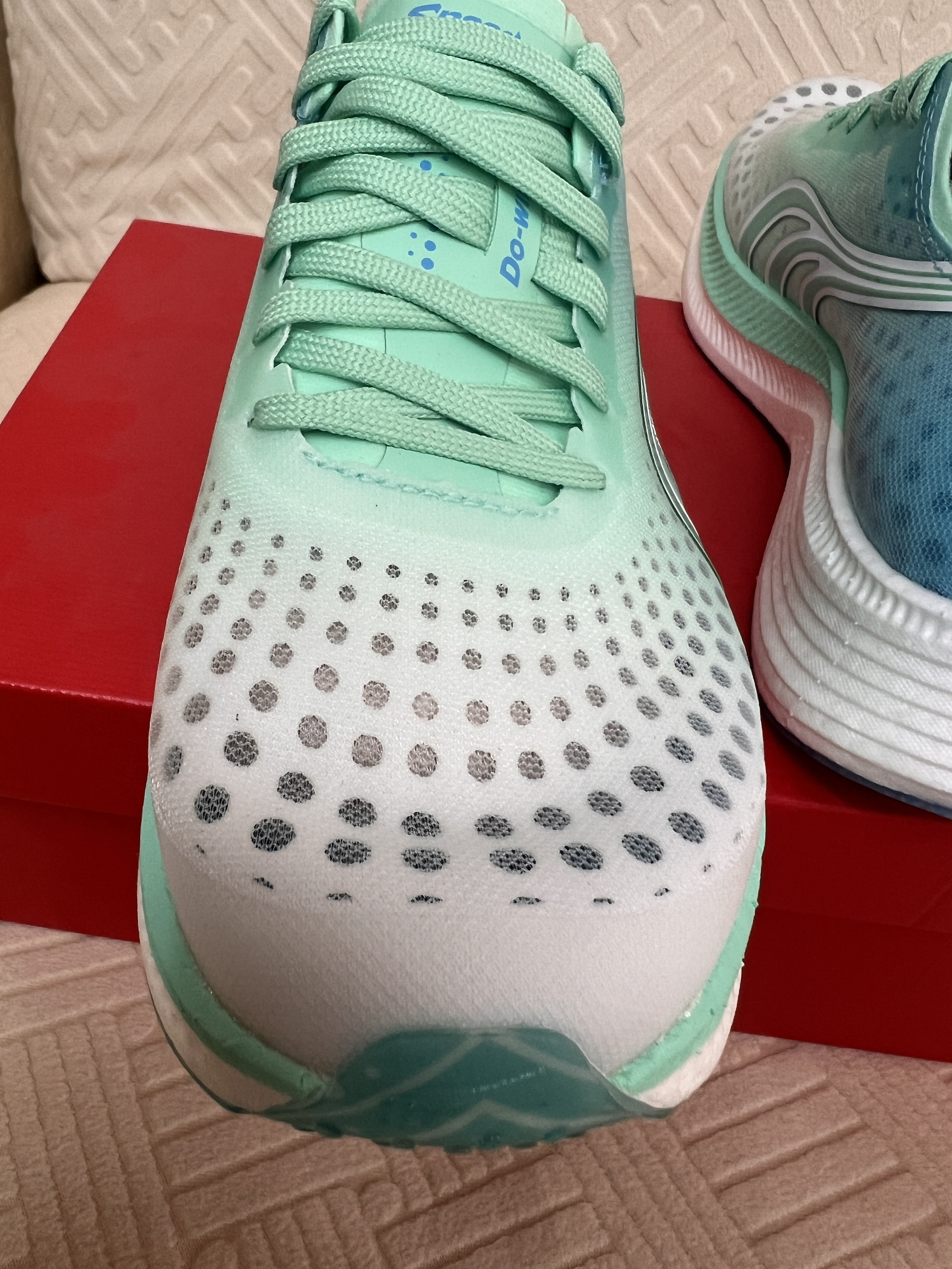 嘿,各位小伙伴们!今天给大家带来一款超燃的跑鞋——多威神行者 SE 沁柠色! 哇哦!当我拿到这个鞋盒的时候,就已经按捺不住内心的激动了。来,咱们赶紧开箱,看看这双跑鞋到底有多厉害。 打开鞋盒,这抹沁柠色瞬间抓住了我的眼球。哇,这颜色,简直太清新了,就像夏日里的一缕微风,让人感觉活力满满。 咱先来看看这鞋面啊,采用水母元素点缀的 mono 纱和半透明网纱,这设计,简直太酷炫了有木有!而且啊,无...