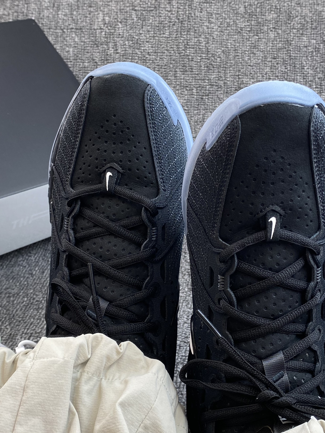 👟Nike G.T.CUT 3 实战篮球鞋 ✨帅气又耐打的篮球鞋GT3是不错的选择,这次的新配色还是酷酷的黑武士风格,颜值很加分了。 🌸鞋面透气性没问题,整体的强度也不错。中底是厚实的ZoomX泡棉,上脚能明显感受到鞋子的缓震感,这点我觉得还是蛮不错的👍大底则是水晶底,抓地力和耐磨程度没有橡胶底来的给力,不过应对外场也足够。 💫尺码方面按平常穿的选择就可以啦。
