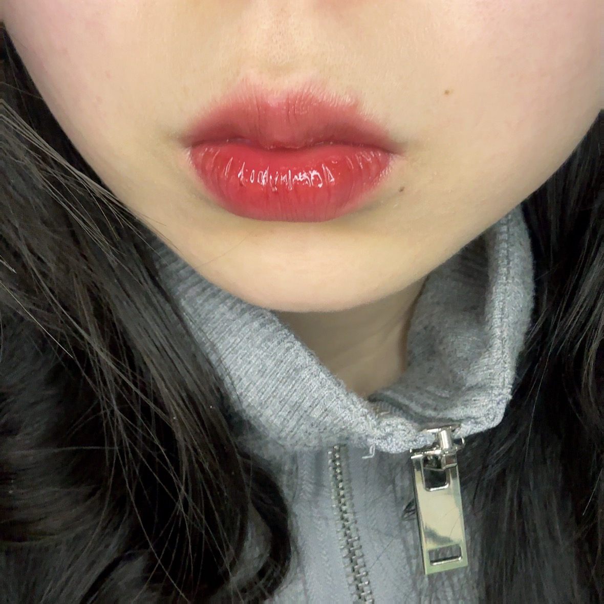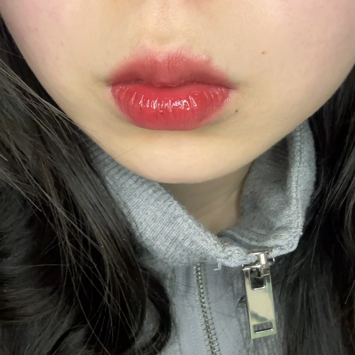 这个真的超级火的 试色出来都是嫩粉 为什么我涂出来是紫不拉几的 很便宜的唇釉 担我心里预期太高 水光感也一般般 下次换05试试🥹 #唇釉试色[话题]# #平价彩妆[话题]# #嫩妹色[话题]# #原相机试色[话题]# #镜面唇釉[话题]# #无滤镜口红试色[话题]# #水光唇釉