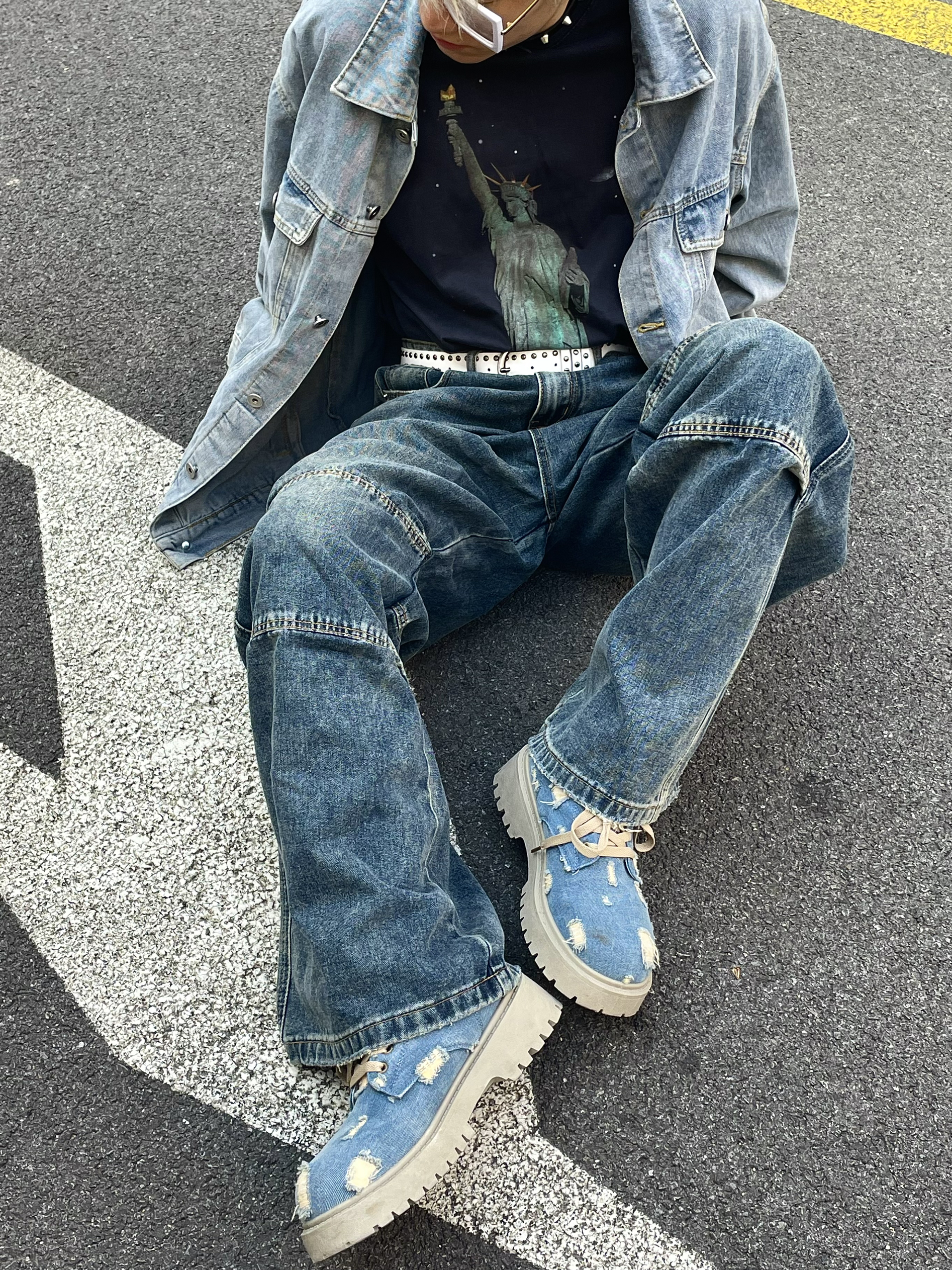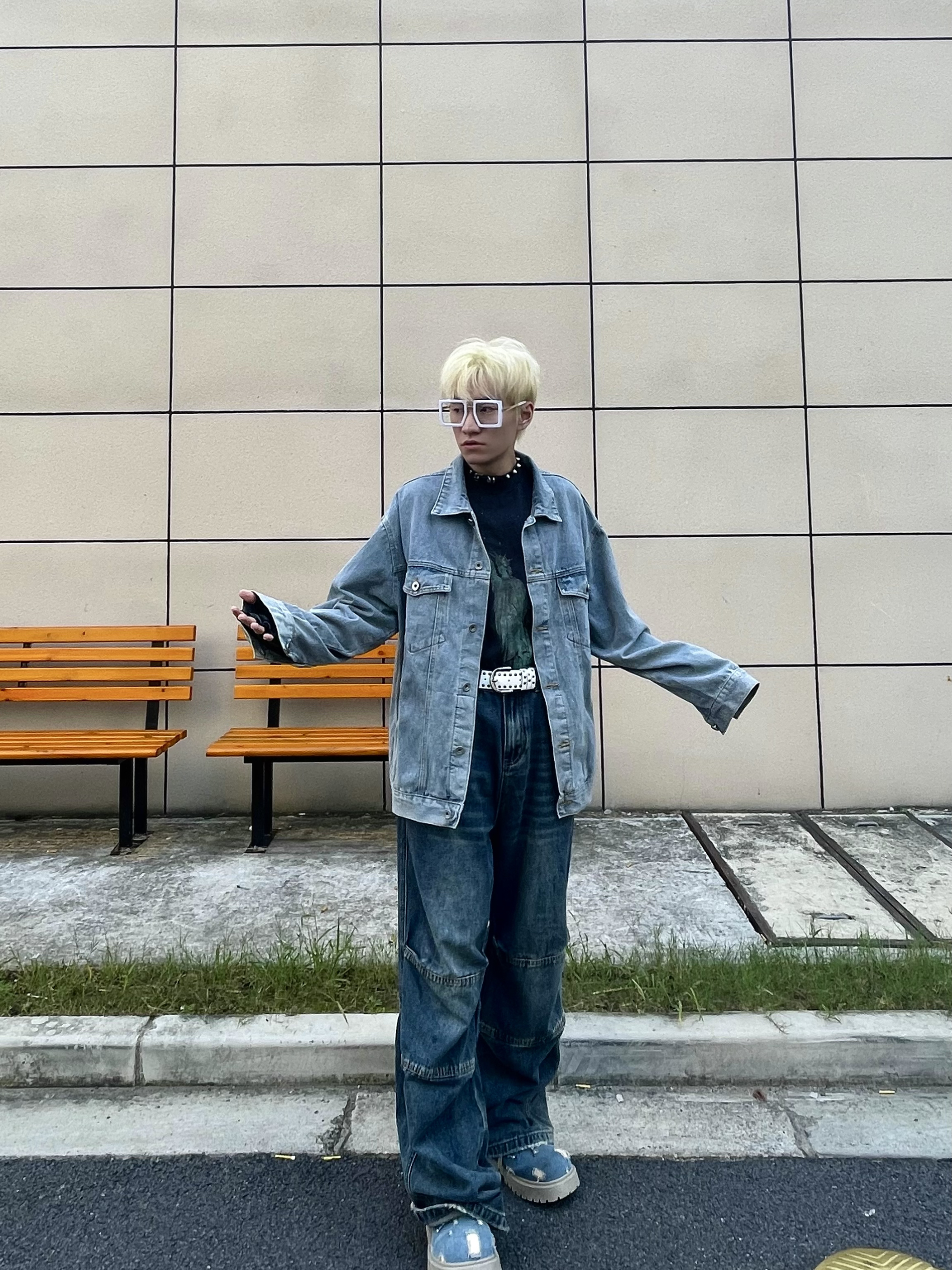 大家好!今天是单宁小猪🐷! 今日份出门整套丹宁牛仔出门^_^ 上身一件水洗牛仔外套,宽松的设计上身很舒服😌~ 搭配一条工装牛仔裤👖,多出拼接的设计很有意思,区别了普通的牛仔裤同时还把细节处理的很帅🤵♂️! 再来一双丹宁牛仔靴子🥾,一整个出门抓住回头率😬