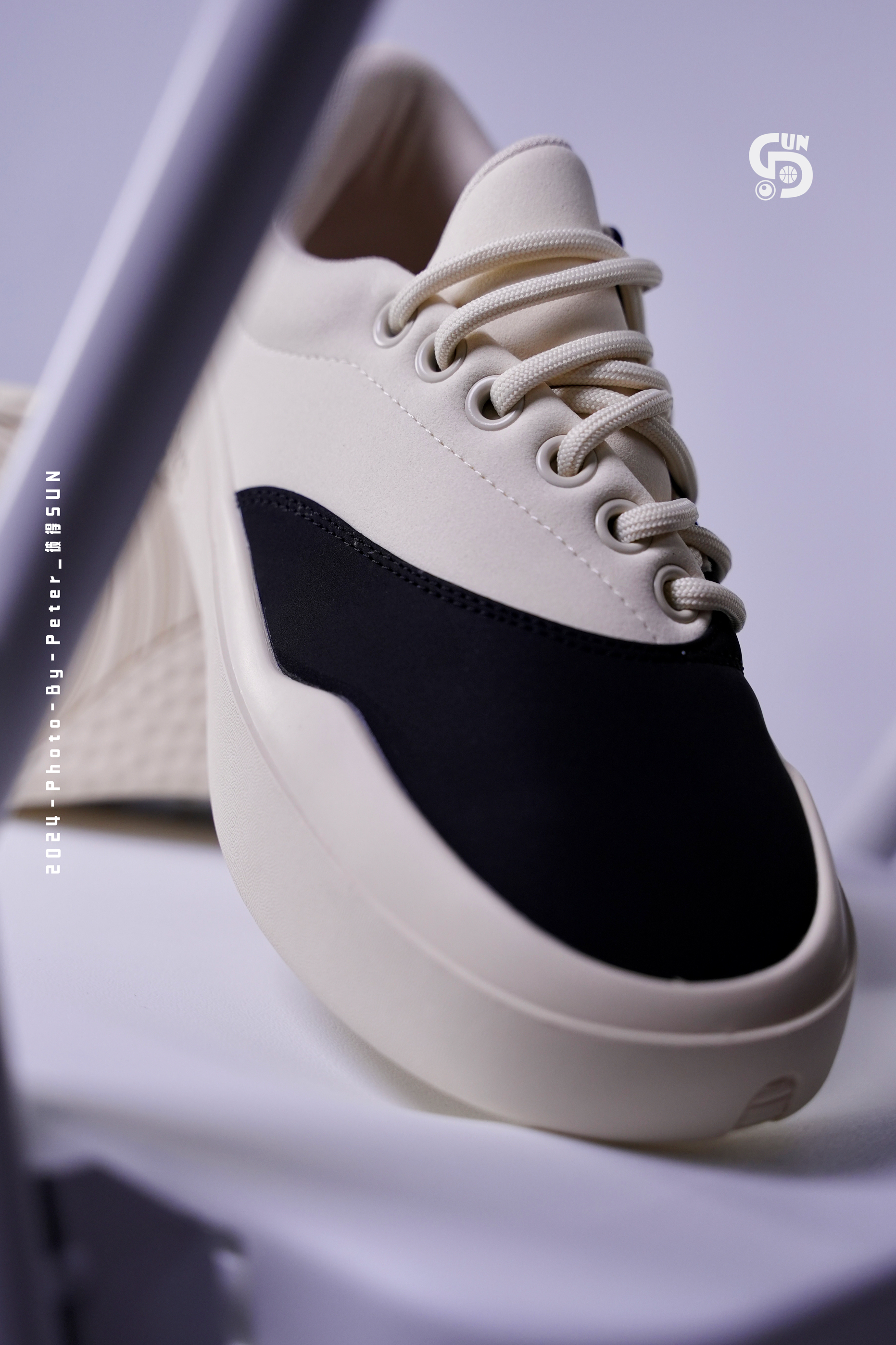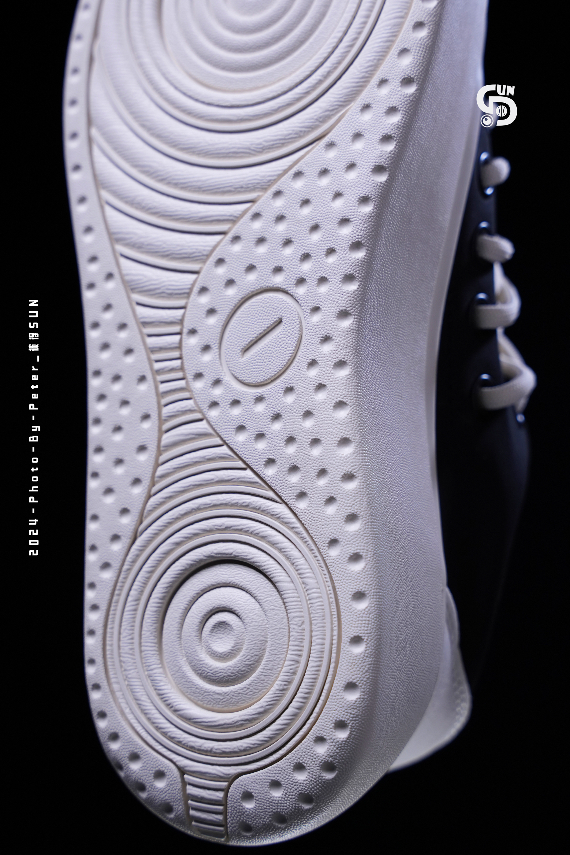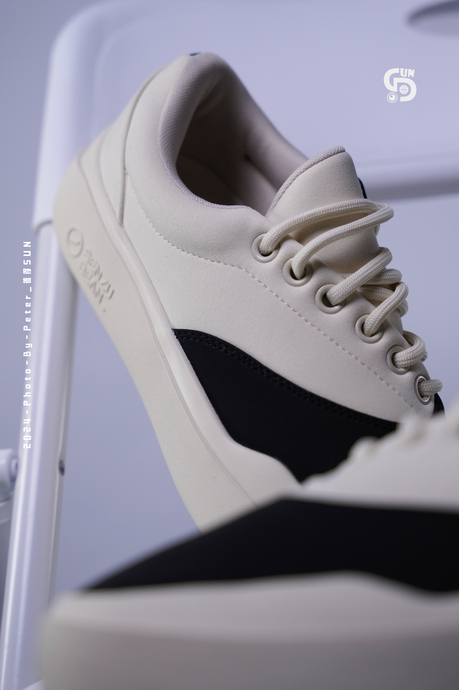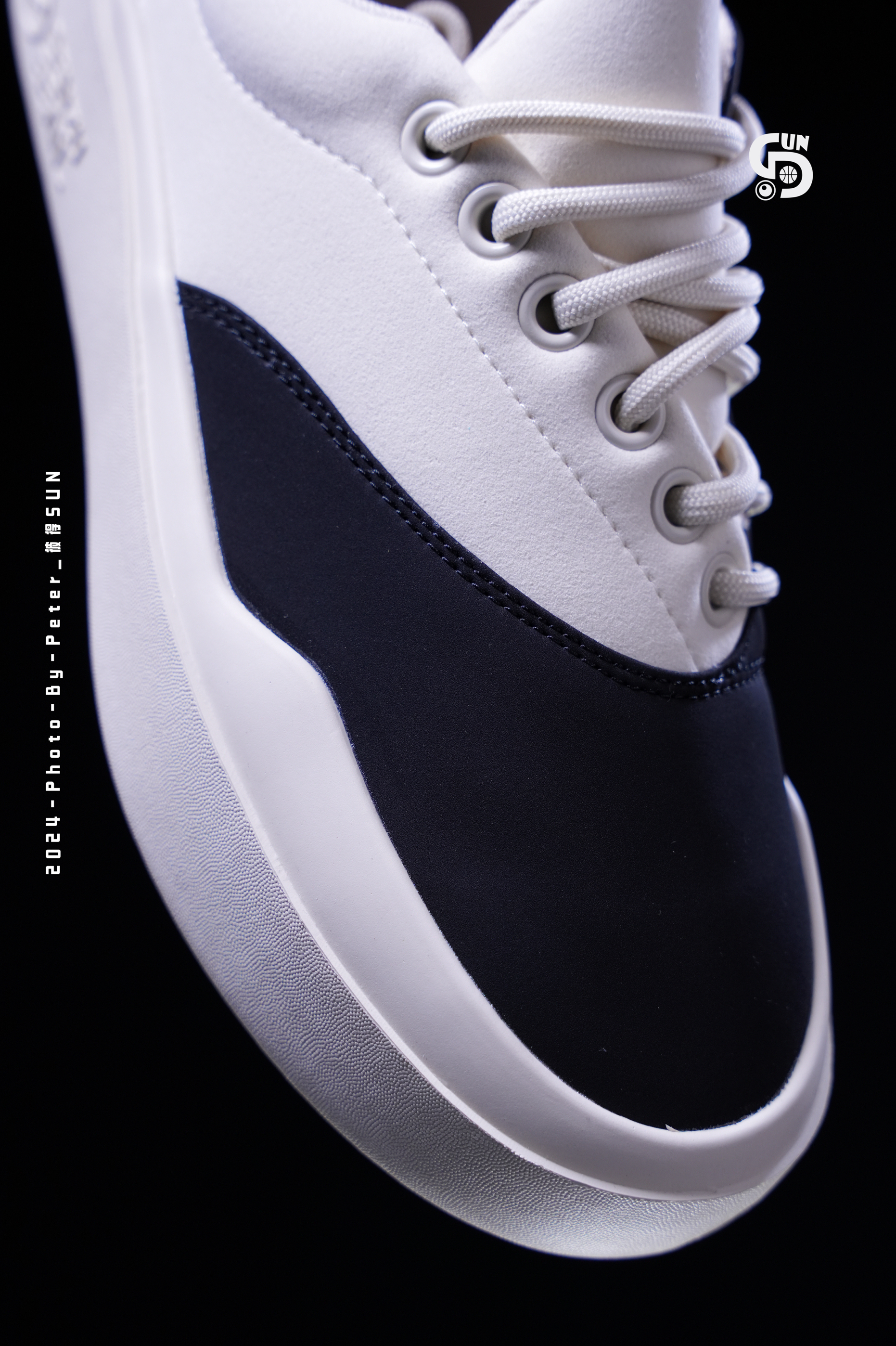 入手这双仙豆板鞋大概就是挺喜欢曹芳的 之前的仙豆篮球鞋是让我眼前一亮 这款板鞋太极的设计理念太明显了 我觉得挺好看的也挺夸张的 把鞋带系统变成了分割界限 我印象中比较经典的就是And1 太极和AJ12了 不过这个鞋带系统感觉解构更吸睛 鞋面有橡胶的上翻设计 看起来质感挺不错 有一定的增高效果 尺码正常选好