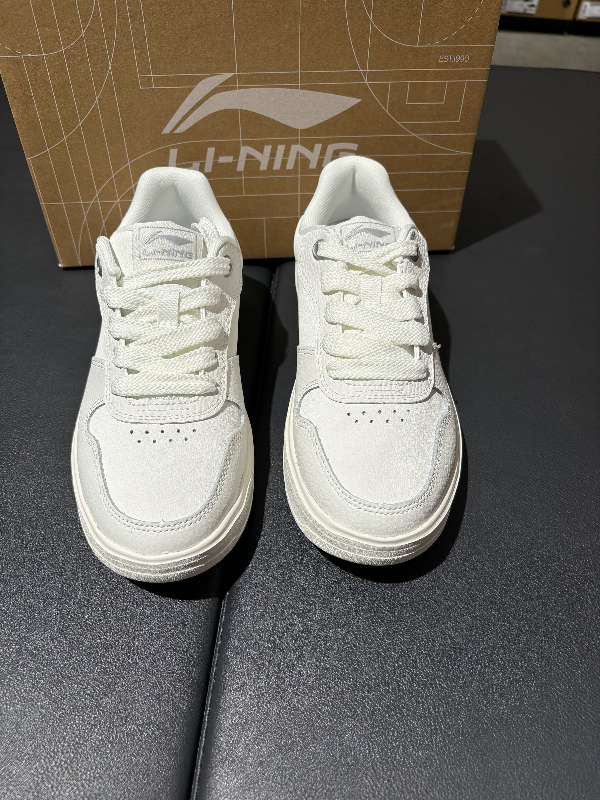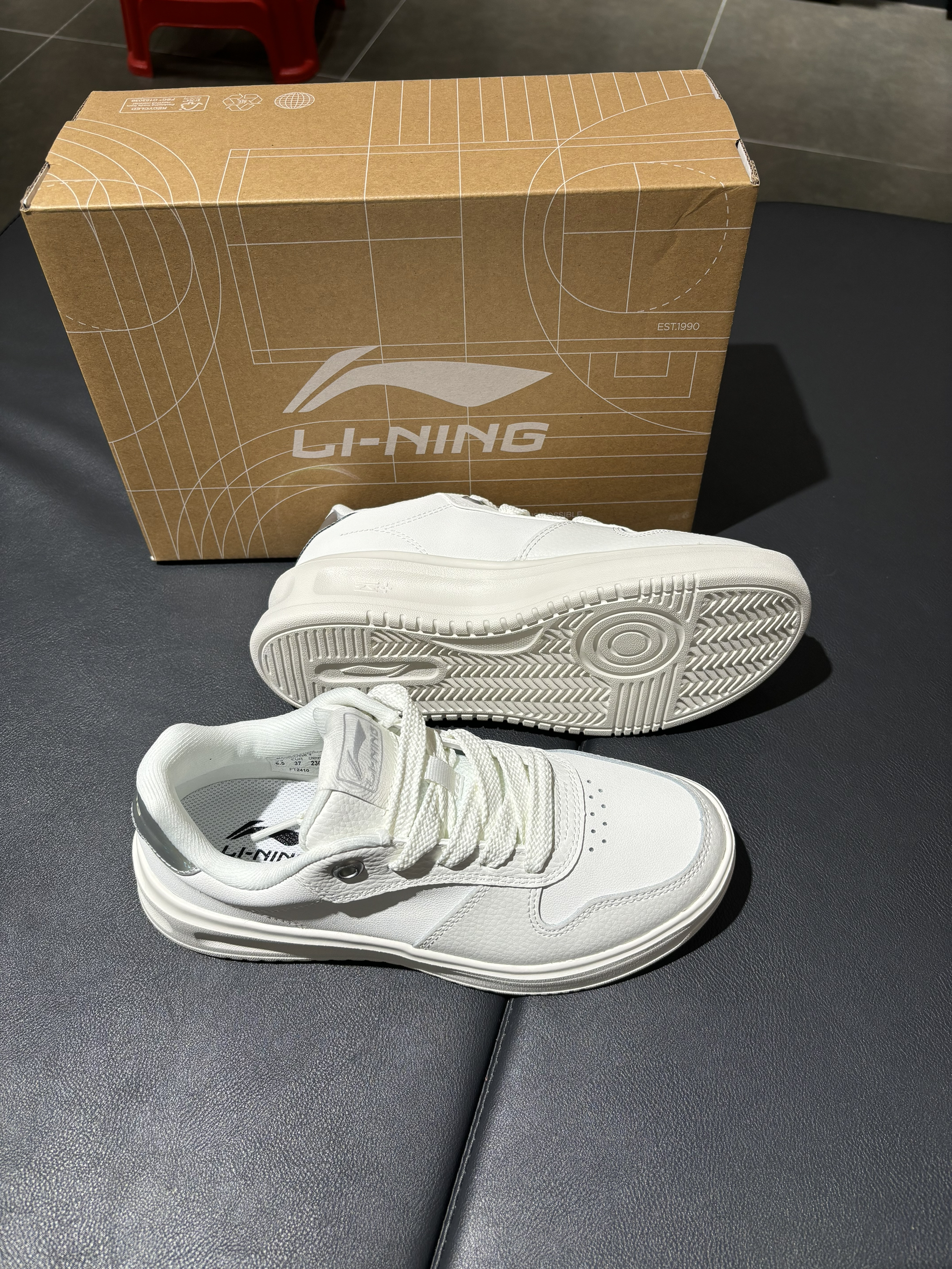 我选称之为李宁最简单的一双鞋子 整个鞋子就只有鞋尾有一个李宁的logo 全部鞋面都是pu合成革,穿脏了抹布一抹直接搞定 这款鞋的特点就是鞋底,鞋底很软,踩屎感的触觉 就算一整天穿搭下来也不会脚掌痛