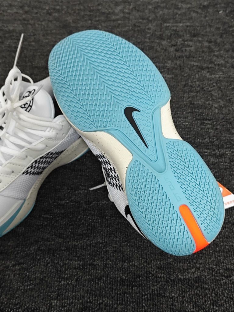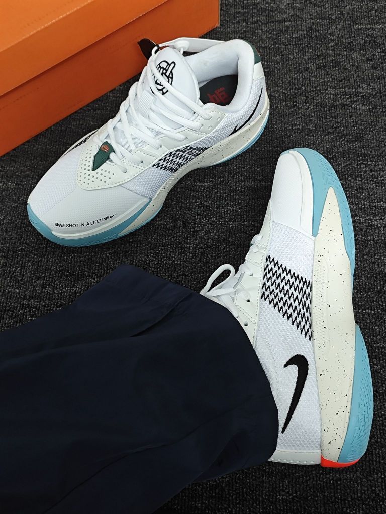 鞋面白色为主调,搭配鞋底蓝色点缀,时尚大气 包裹性强,搭配zoom air,缓震脚感不错 鞋底人字形纹路和耐穿橡胶外底,轻松驾驭户外球场网 这个配色真的太帅太好搭了 实战跟穿搭两不误 尺码标准按正常码数选择就行