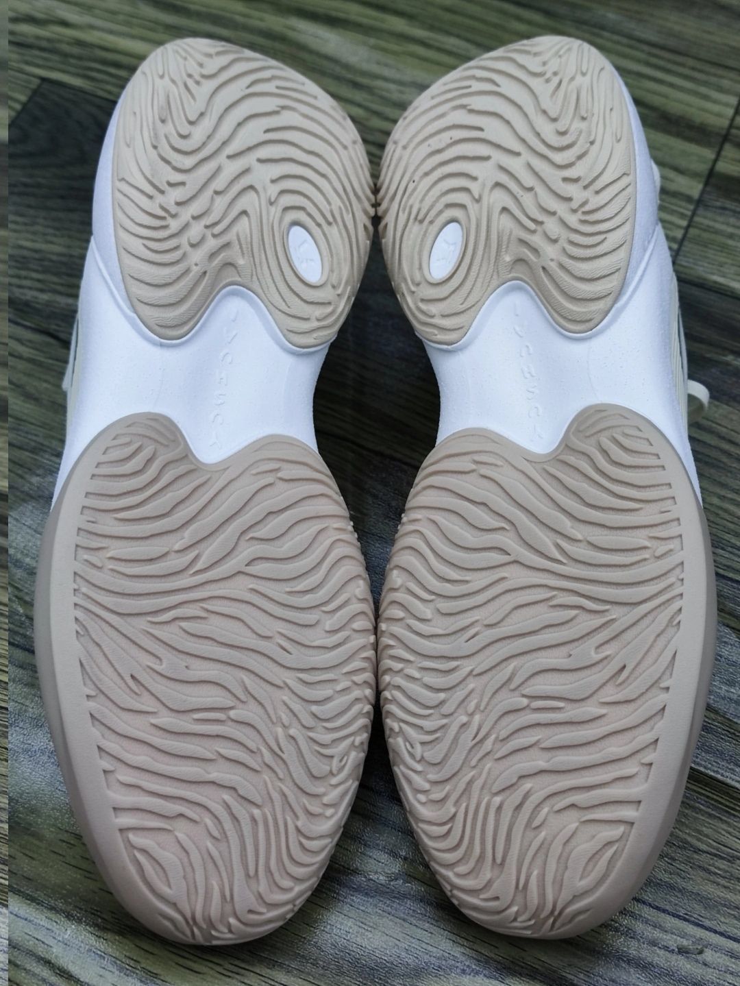 今天分享一双李宁的驭帅18v2,这个颜值比高帮好看不少,重量也是控制的很轻! 鞋面这个配色感觉强度有增加,而且穿起来特别舒服,没有出现不适感,有着很好的鞋脚一体性,包裹感受也很精致,中底全掌露科技,脚感非常韧弹,油漆是它的后掌,前掌我觉得还是比较贴地的,不过内扣情况还是有的,鞋底gcu材料抓地油漆场地比较好,耐磨性也是可以打外场的,中段的抗扭性不足,我觉得不够稳定,其他方面还是比较好的!