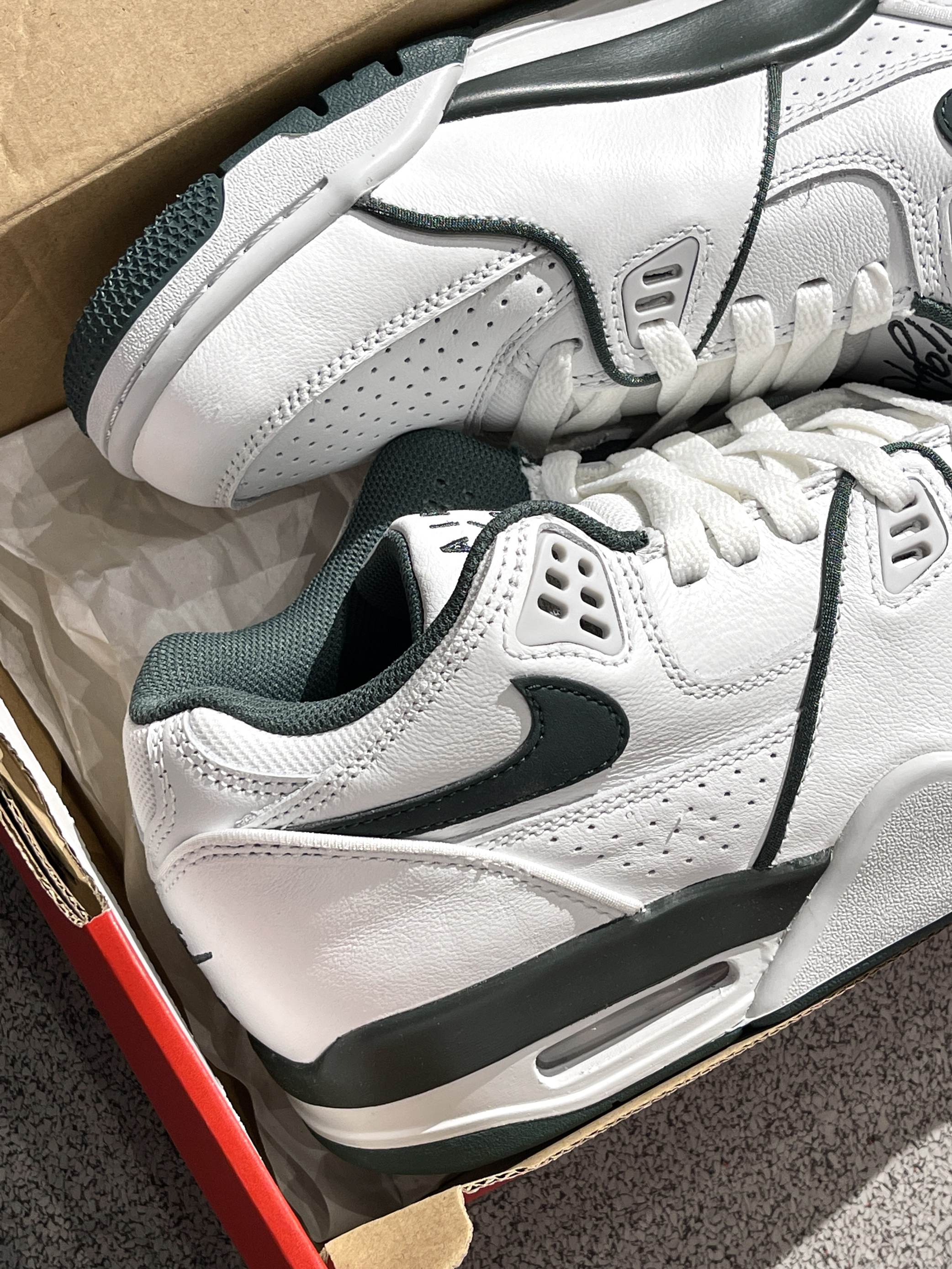 Nike玩复古是真有内感觉嗷!🔥 Nike|Air Flight 89 Low“Gorge Green”低帮复古篮球鞋“白绿”,经典复古鞋型➕中帮鞋型设计,上脚穿起来比高帮要好穿脱,包裹性满满~😍复古白绿配色,轻松驾驭氛围感!😎