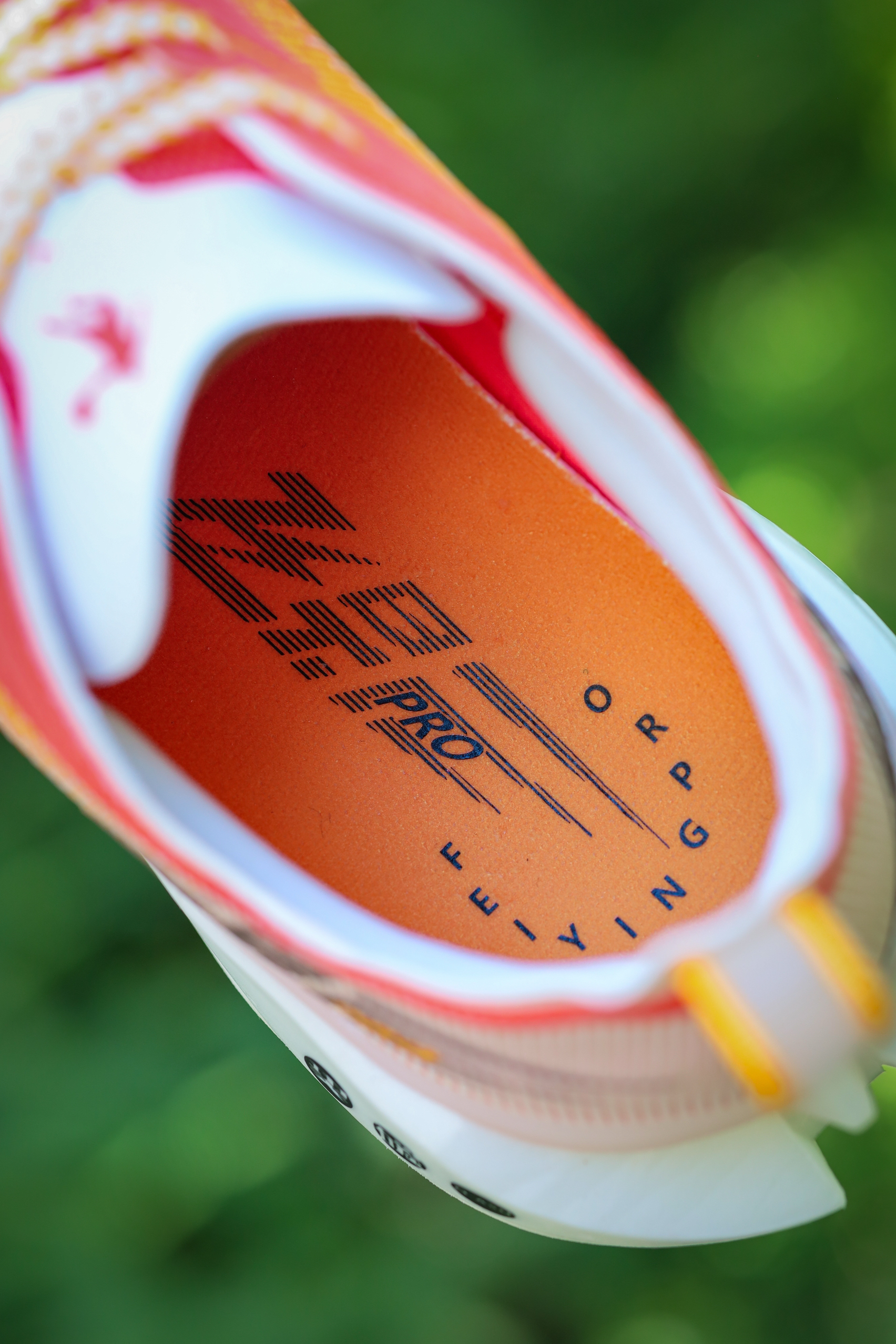 中乔家的飞影PRO YOUNG,虽然它的定位是针对青少年的竞速碳板跑鞋,但其实与成人版在配置上是完全一致的,仅仅在于尺码段和配色上的差异,所以对于脚码小的成年人,同样没有问题。 我入手的这双山河,整体白红黄的主色调,看起来就很有活力。加上它凌厉的鞋型和线条,颜值我觉得还是相当不错的!