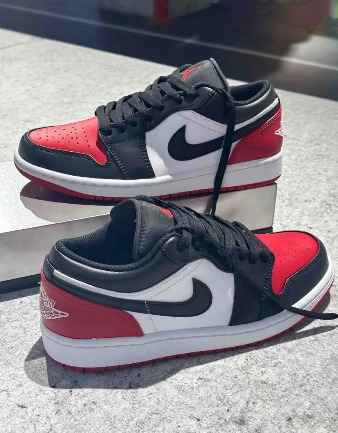 这双AJ1黑红脚趾是: Air Jordan 1 Low "Bred Toe"低帮复古 篮球鞋 整体配色采用黑白红三色拼接设计 时尚有个性,搭配全皮革鞋面,打造经久耐穿性,日常也非常好打理 搭配简单AJ1鞋型,经典百搭也不过时