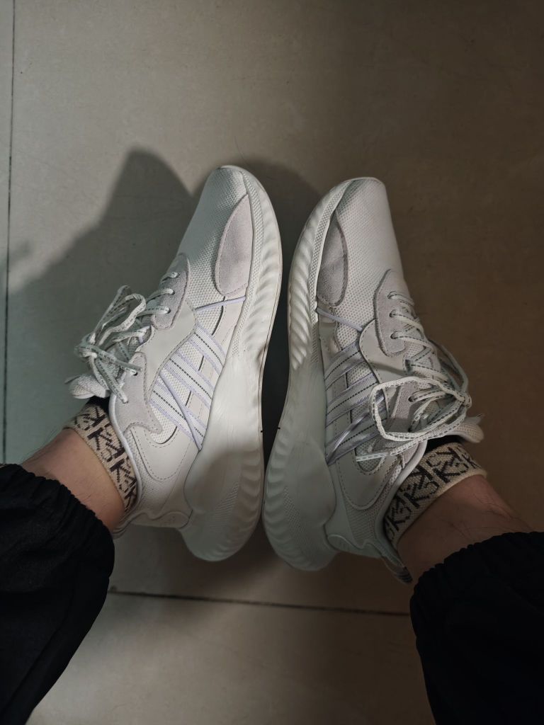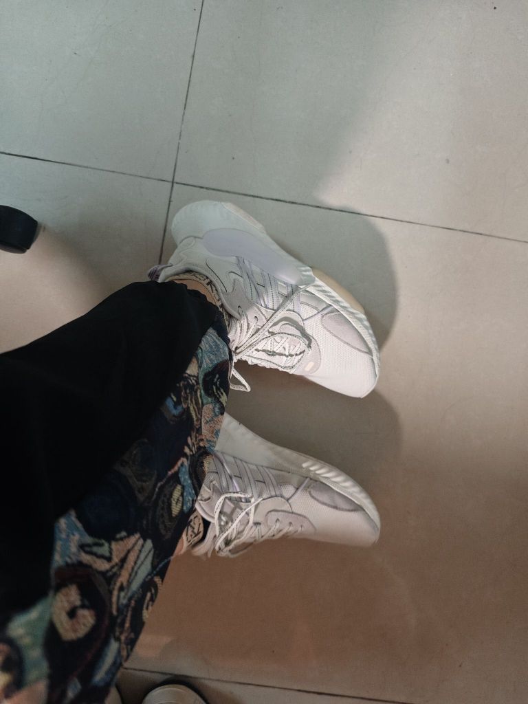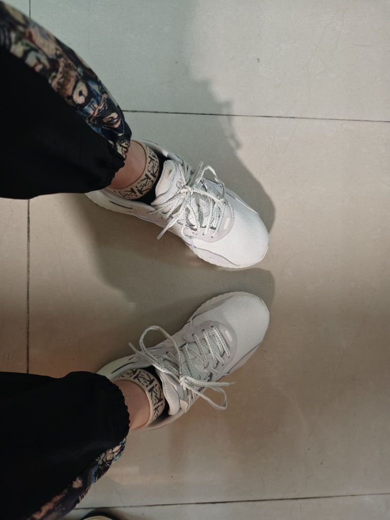 这双阿迪的休闲鞋是我在折扣期间买的,一开始就觉得价格便宜,还是阿迪的牌子直接下单。买回来以后试穿了一下感觉还是蛮舒服的,虽然说不上超级软弹,但是透气,舒适等方面还是挺不错的,有超级的百搭。我平时出去玩也看到很多人上脚这双鞋子,可见其销量的不一般。 这双鞋子带有淡淡的紫色,不像全白那样过于简单或者是有些单调,一点淡淡的紫色地融入给整双鞋也增加了不少亮点。