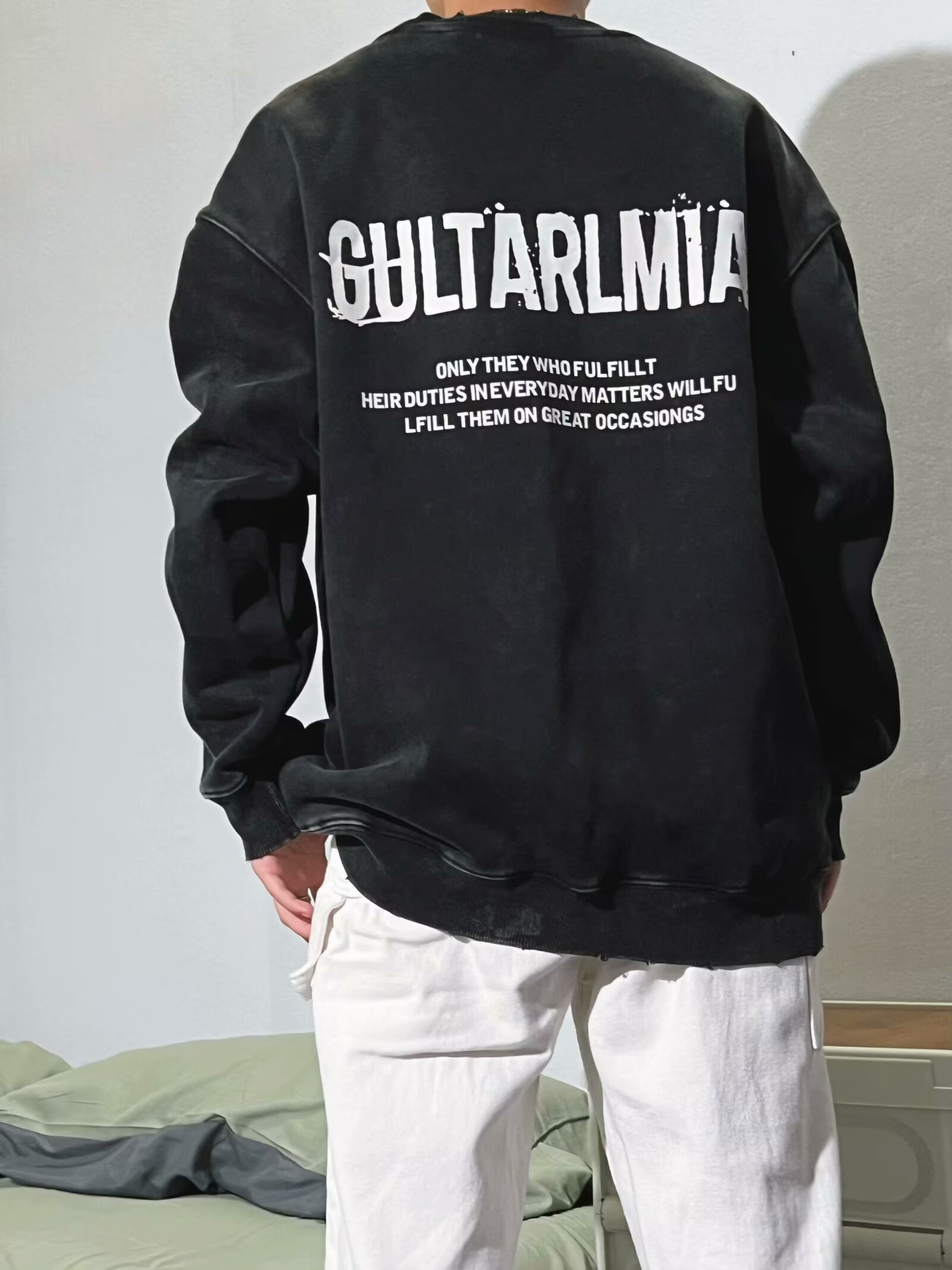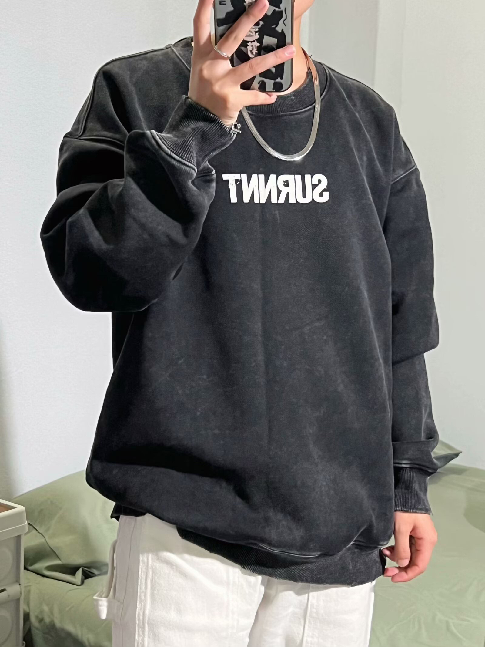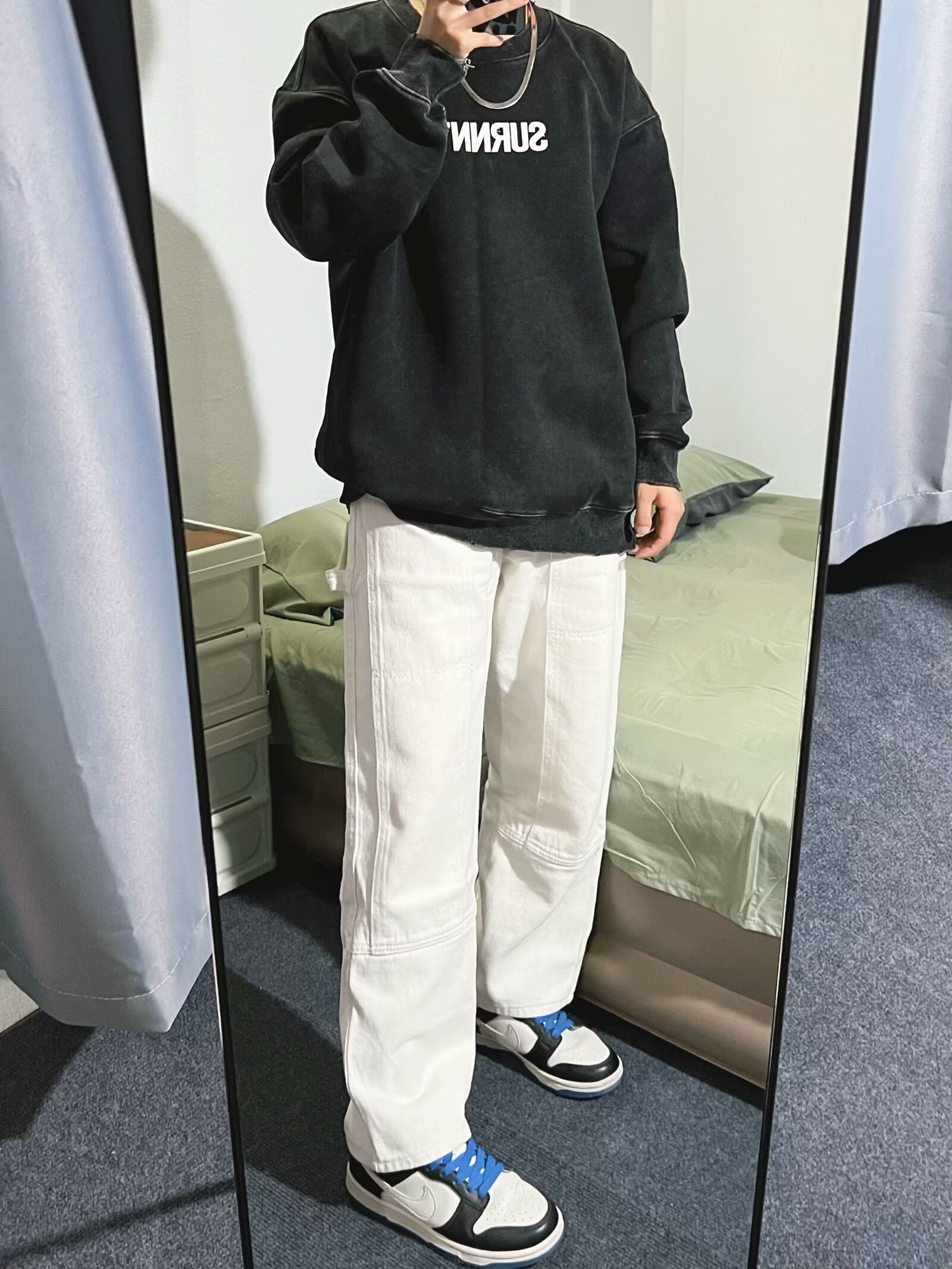 上身复古做旧卫衣 随便搭配一条白色裤子在配一双AJ 简约大气百搭休闲