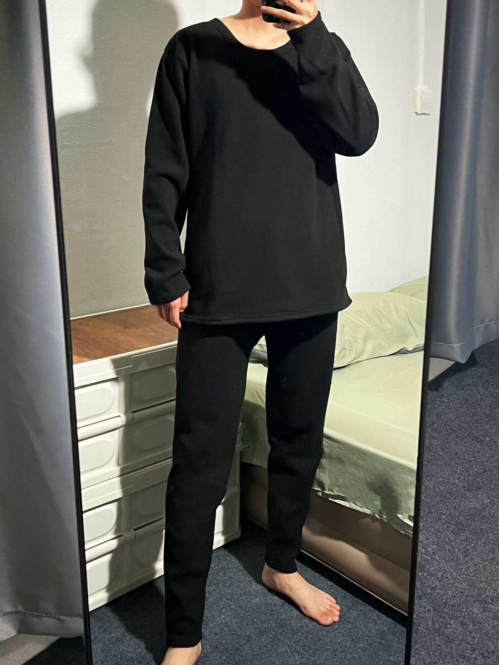 最近天气降温快,又到了穿保暖内衣的季节了我还是比较怕冷的体质,我喜欢外面单穿一件衣服,里面直接穿保暖内衣这样穿着宽松舒服。 美雅挺这款保暖衣里面毛绒绒的穿着很舒服,面料柔软平时居家单穿就很OK 够我穿一整个冬天了哈哈哈哈 身高165 体重45 L