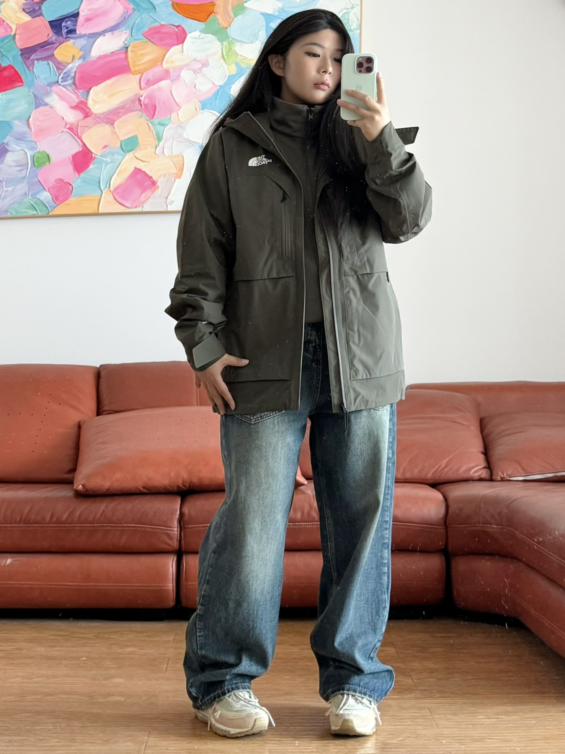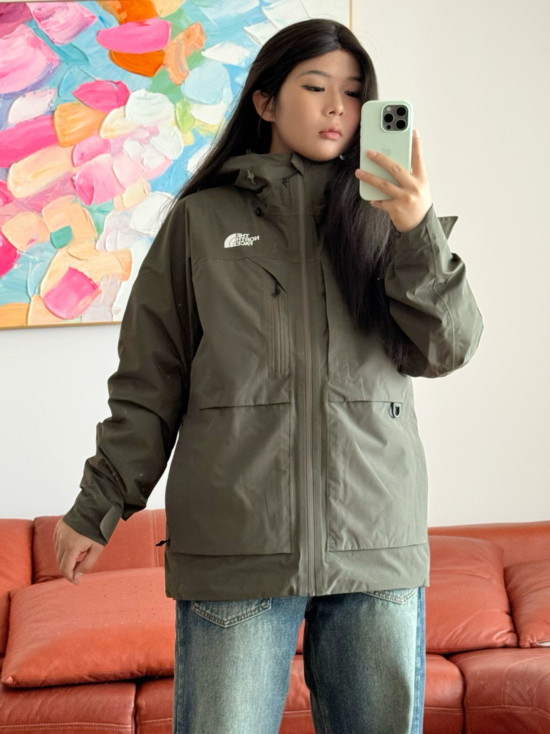 外出户外 还得是 THE NORTH FACE 今天分享一款高颜值冲锋衣 三合一 一件顶两件 更保暖更好穿 墨绿色耐看 耐脏 整体也很高级 上身不显臃肿 日常搭配牛仔裤 休闲裤都很不错 保暖效果很好 户外徒步 穿它合适 身高162,体重120斤衣服上身L码