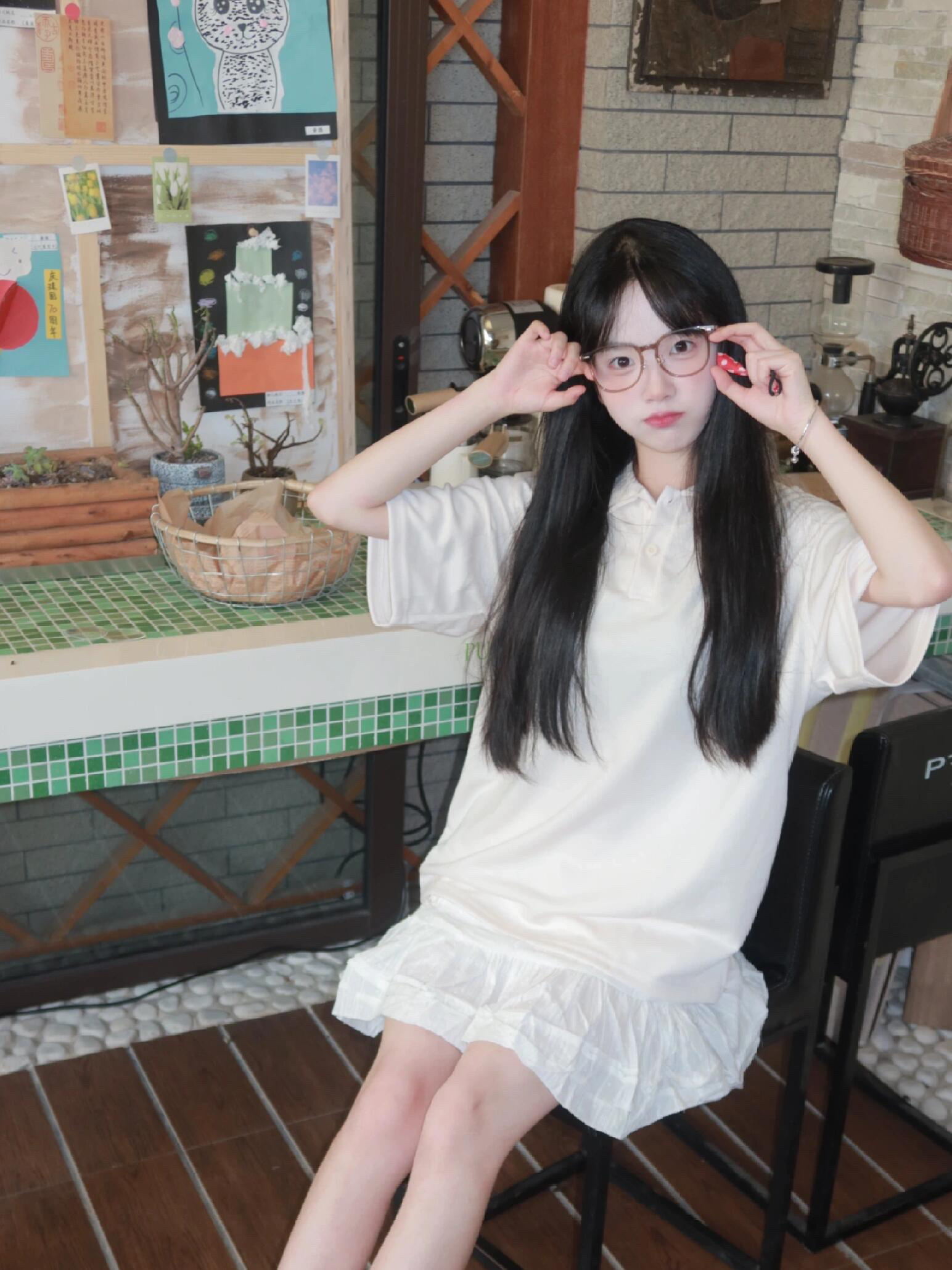 1. 站在店门口,单手叉腰,另一只手比个耶✌,笑容甜美又可爱。 2. 坐在窗边的椅子上,双腿并拢,身体微微前倾,双手撑着下巴,眼神灵动😜。 3. 拿起店里的小道具,比如可爱的杯子或花朵,举在脸旁,假装喝东西或闻花香🌸。 4. 靠在墙上,一只手摸着头发,另一只手比个心💖,充满了少女感。 5. 坐在沙发上,双腿交叠,身体向一侧倾斜,双手抱着抱枕,笑得很开心😄。 6. 走在店里的过道上,回头看...