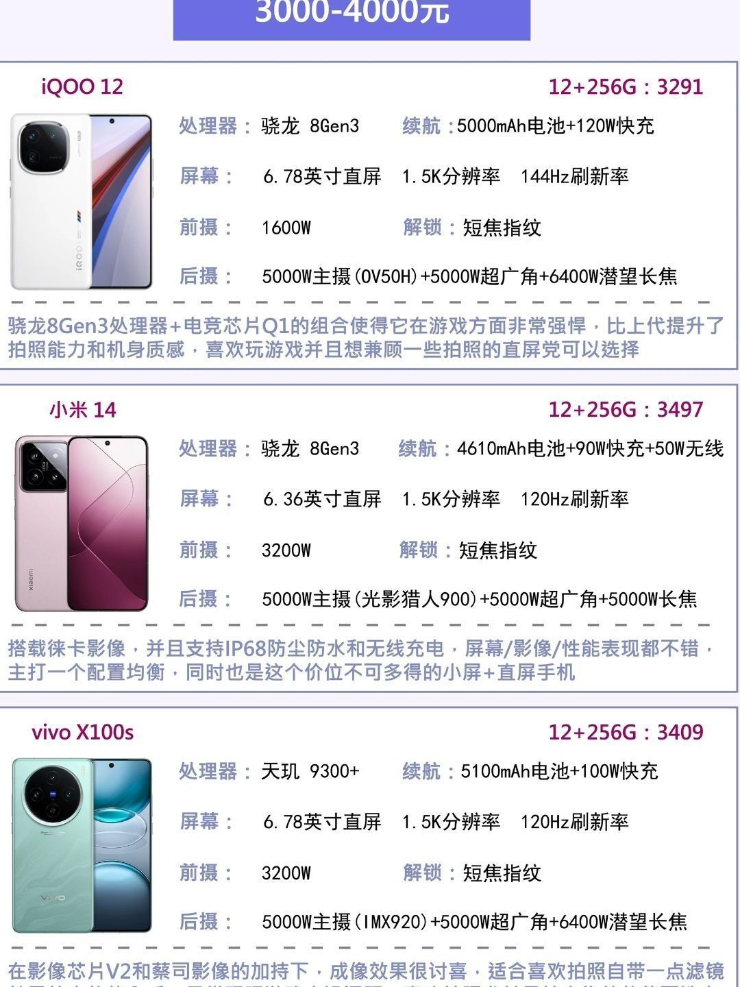本篇笔记关联了MI/小米 14 5G 手机 徕卡镜头 长焦 直屏 全网通 护眼 汽车互联 白色、iQOO 12 5G 手机 直屏 超快 自研 电竞芯片 潜望式 拍照 大底 主摄 闪充 超感屏 长焦 传奇版、MI/小米 14 Ultra 5G 手机 徕卡影像 大师人像 四摄 联合研发 超视感屏 全焦距大光圈 第三代骁龙8 双向卫星通信 全网通 白色等商品,为用户提供真实的使用体验和购买参考。