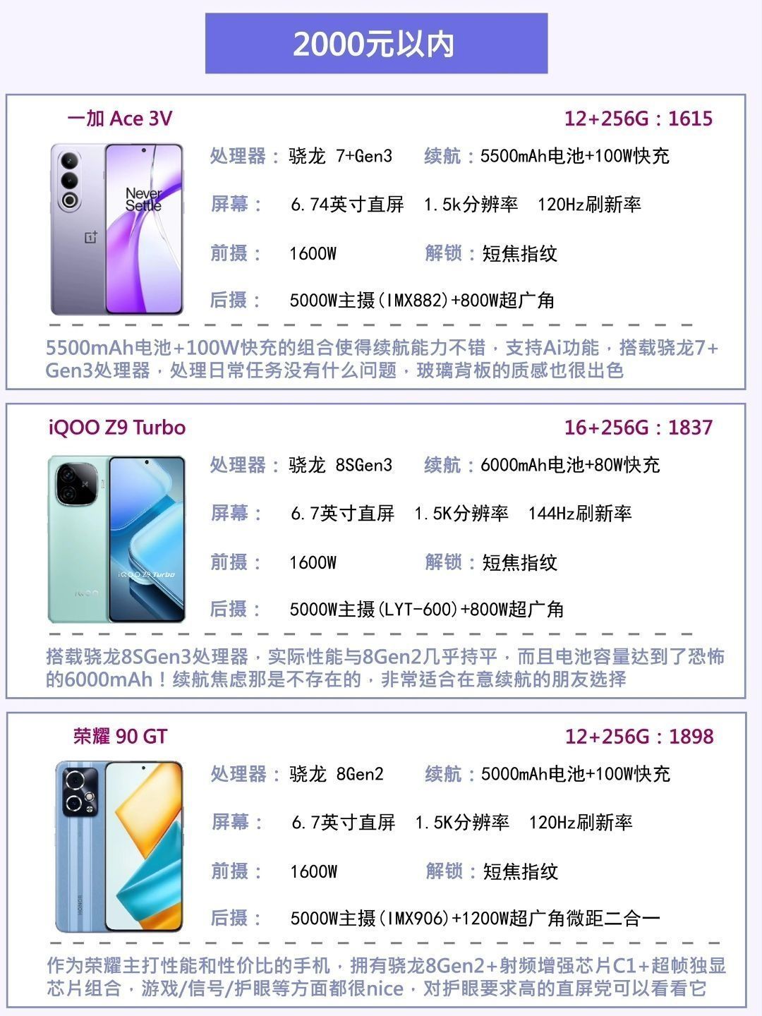 😘眼看着双11也快到了,小伙伴们恐怕也有点按耐不住想换手机的心了,这篇我就给大家整理一些不错的手机作为参考,就当做个双11前瞻吧! 10月和11月份会有一波新旗舰手机发布,不急的话可以蹲一蹲新机,不过新机刚发布时价格会高一些,现阶段不 如在 百补看看已经降价的手机,补个好几百不是问题, 性价比属实是到位了。 📱2000以内:一加 Ace 3V iQOO Z9 Turbo荣耀 90 GT 📱200...