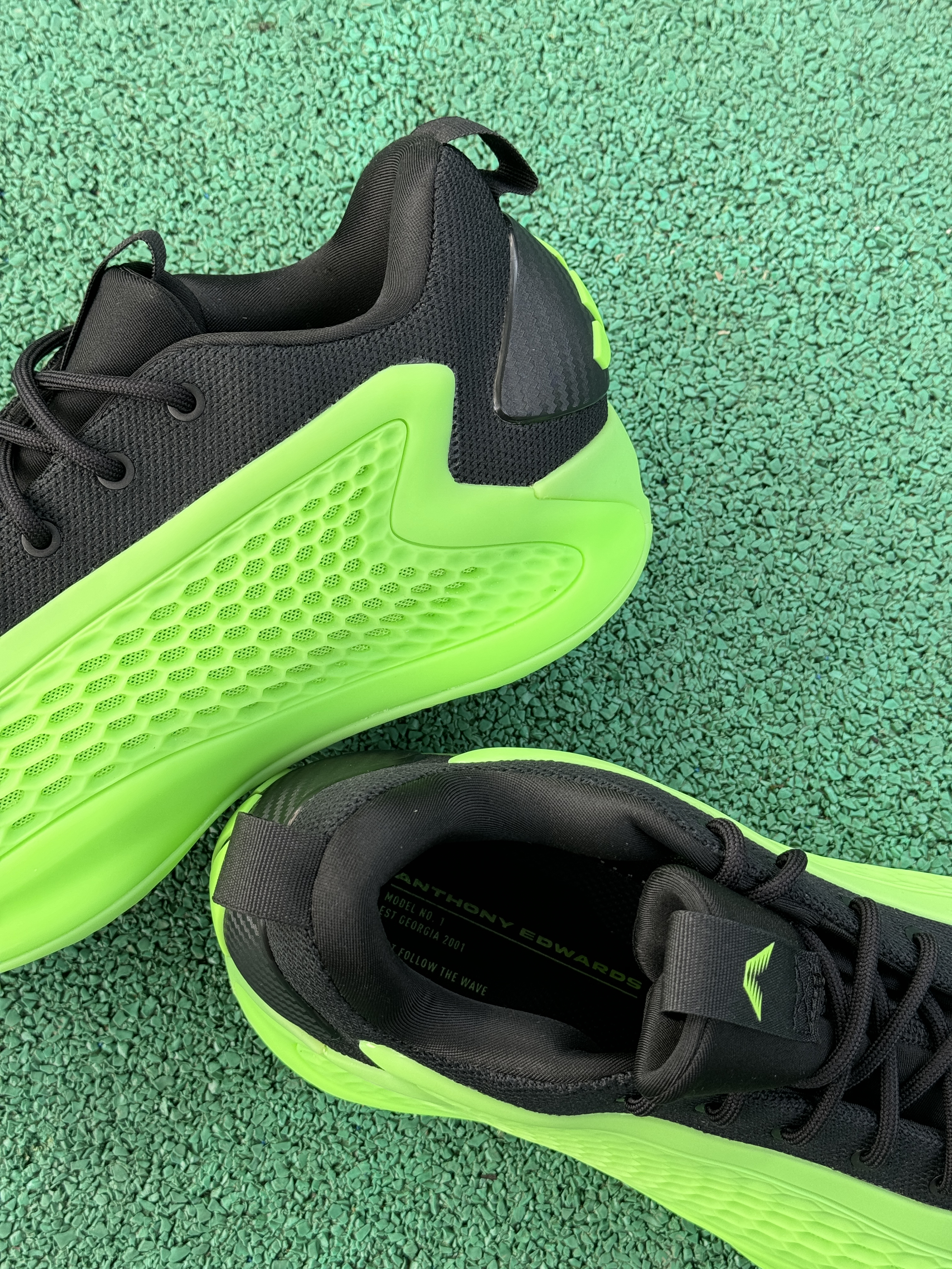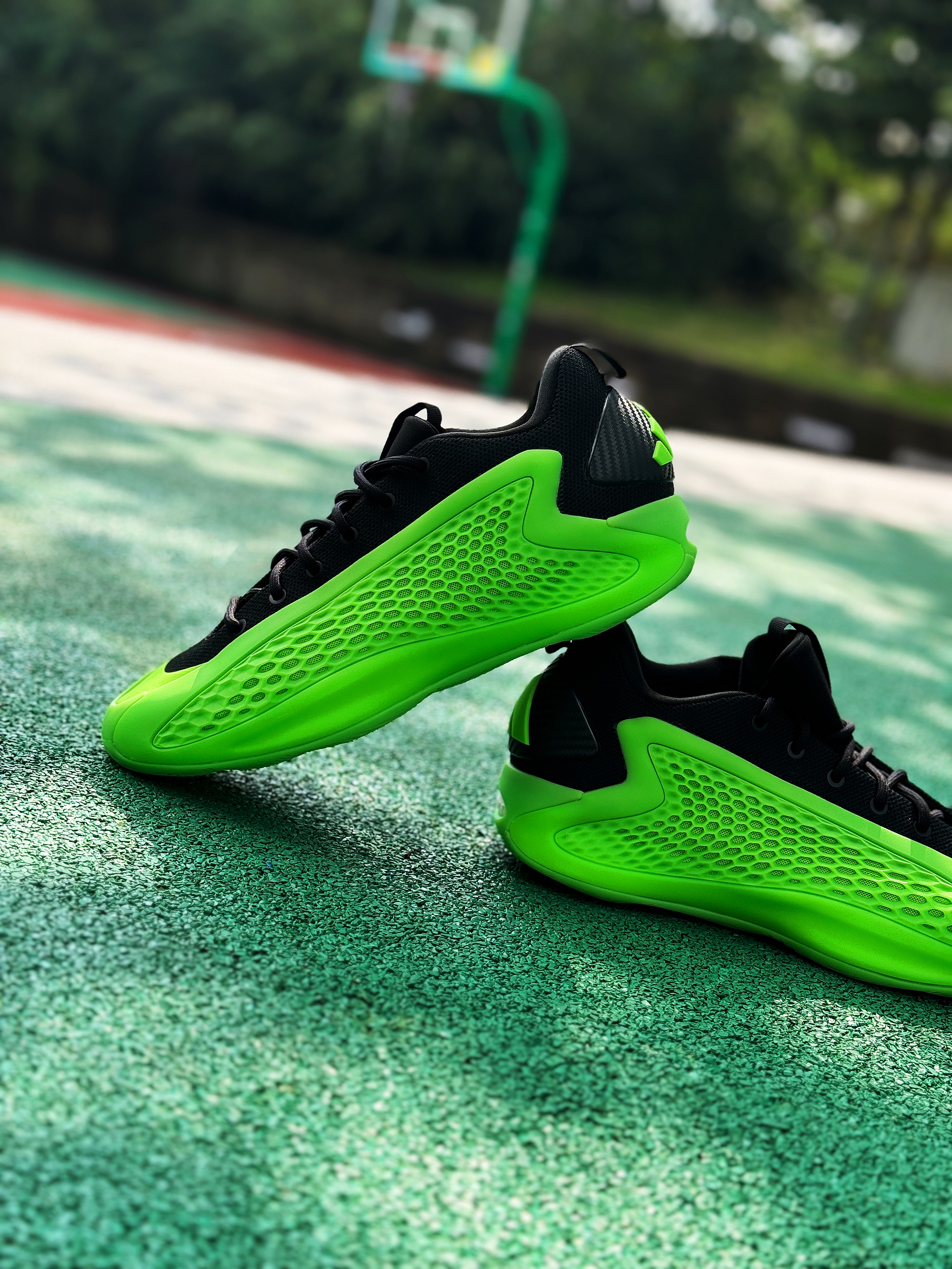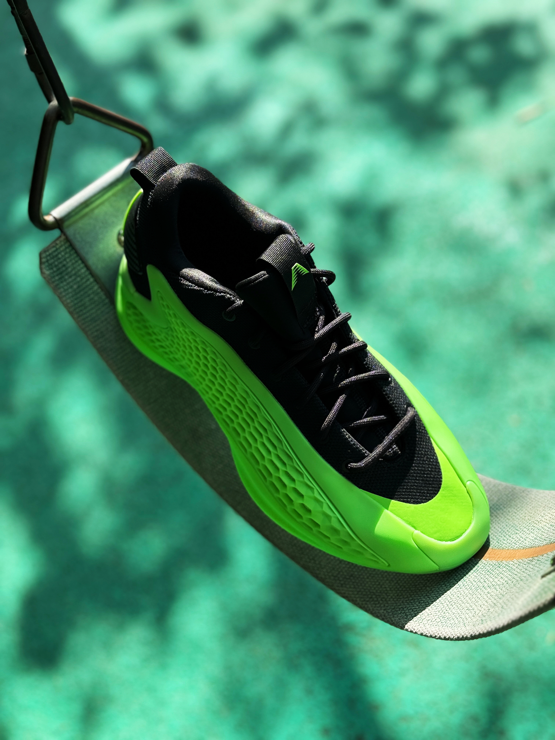 绿色系球鞋确实自己蛮少穿的 最近入手的这双爱德华兹1低帮的“变幻绿”还挺好看!让我想起了内特·罗宾逊扣篮大赛上脚的那双Foamposite“氪喷”! 拿到实物比想象中好看一点 黑绿的搭配格外显眼!标识性的蜂窝鞋面还是很酷!配置采用前掌Lightstrike + 后掌Lightboost 上脚确实轻质了不少 但脚感还是便硬一点!鞋码个人感觉有点偏小 这次选择了大一码 上脚感受比之前的黑色好很多!颜...