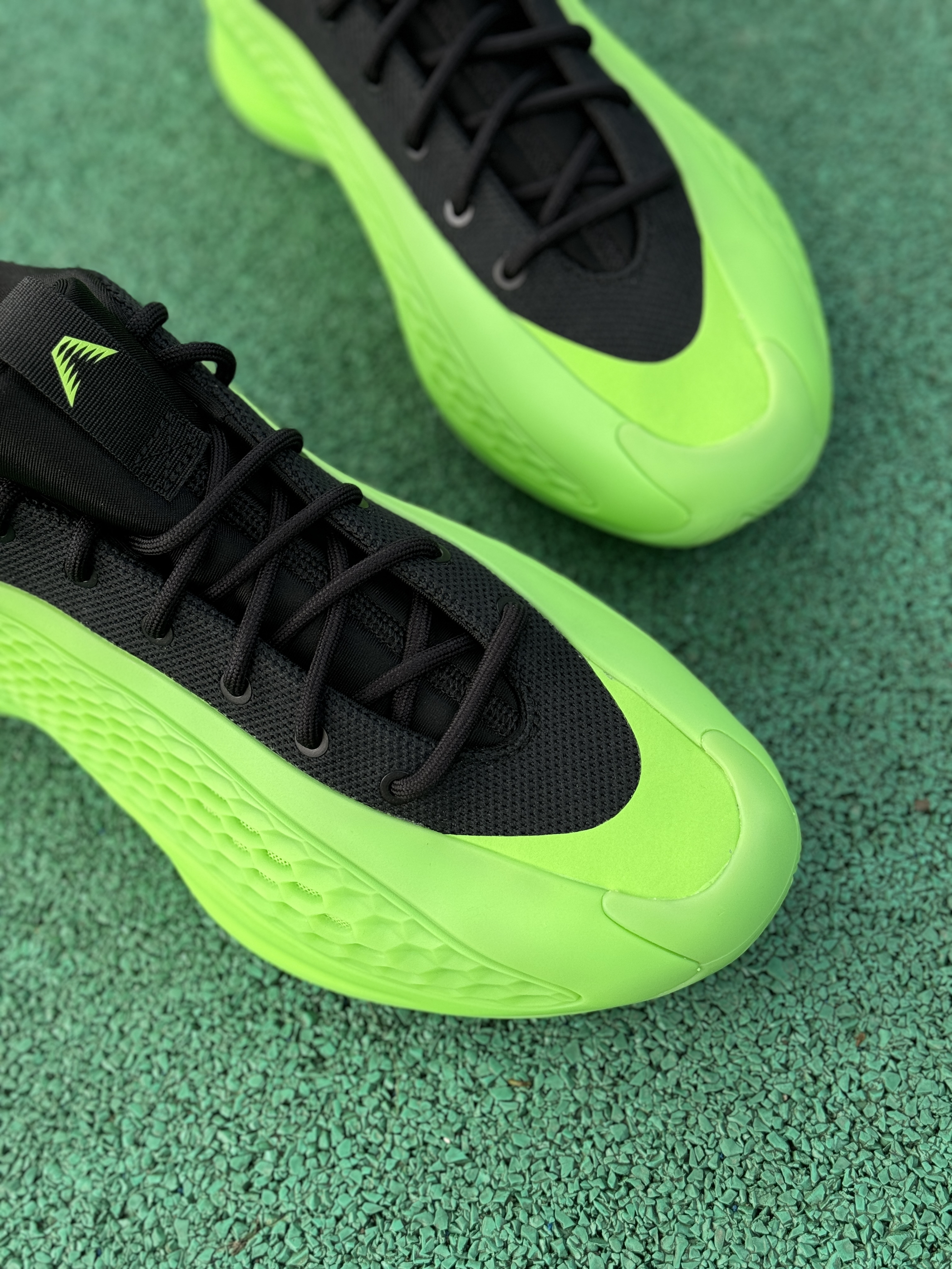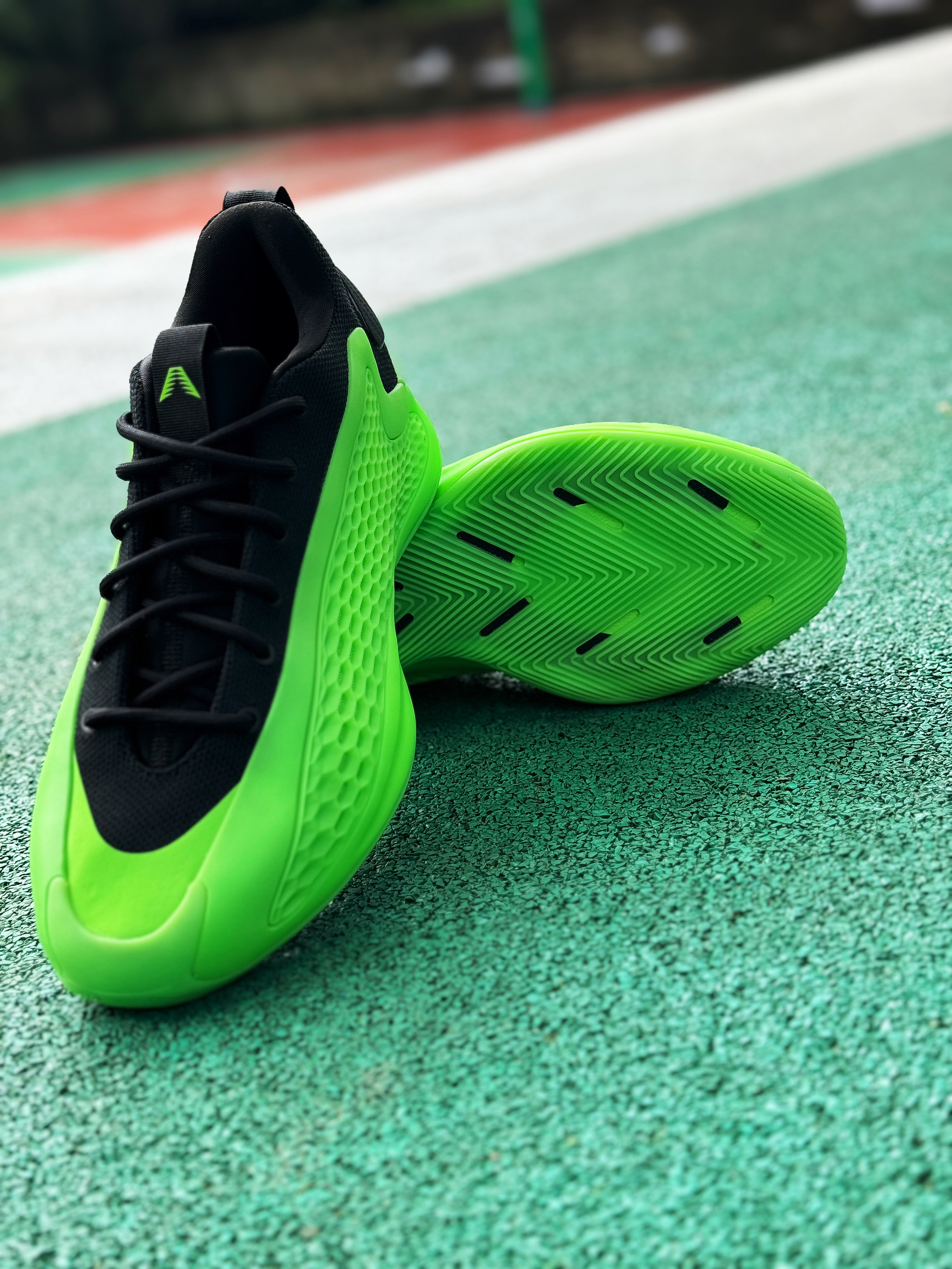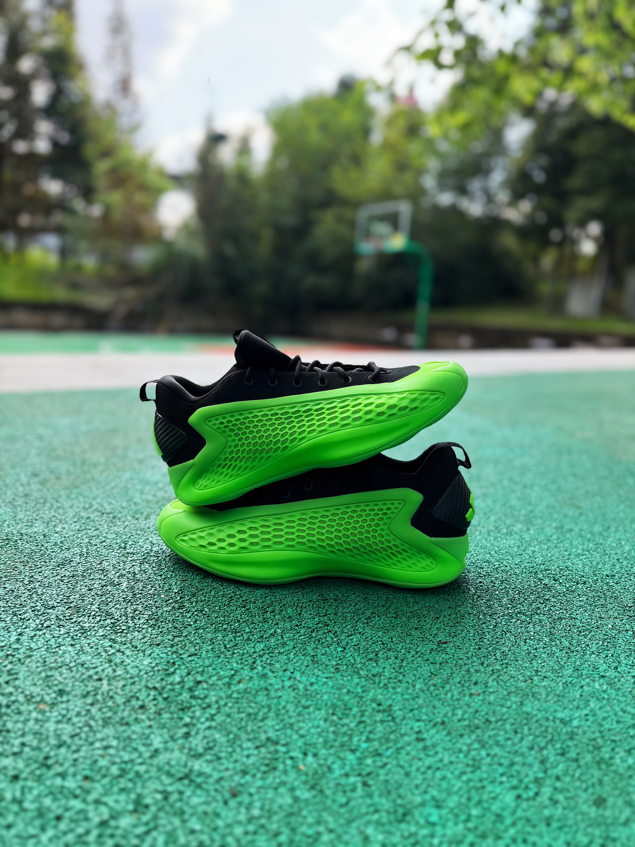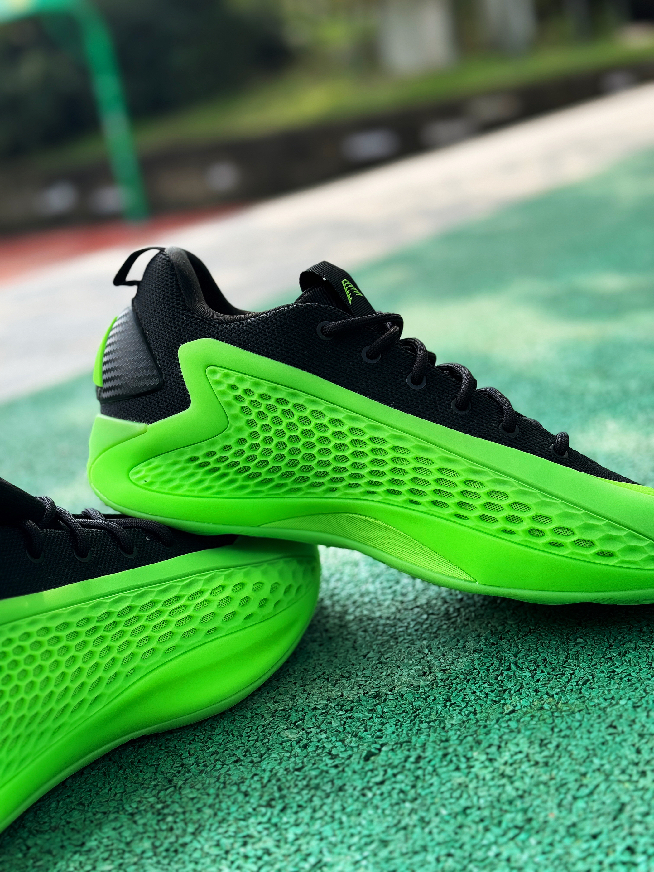 绿色系球鞋确实自己蛮少穿的 最近入手的这双爱德华兹1低帮的“变幻绿”还挺好看!让我想起了内特·罗宾逊扣篮大赛上脚的那双Foamposite“氪喷”! 拿到实物比想象中好看一点 黑绿的搭配格外显眼!标识性的蜂窝鞋面还是很酷!配置采用前掌Lightstrike + 后掌Lightboost 上脚确实轻质了不少 但脚感还是便硬一点!鞋码个人感觉有点偏小 这次选择了大一码 上脚感受比之前的黑色好很多!颜...