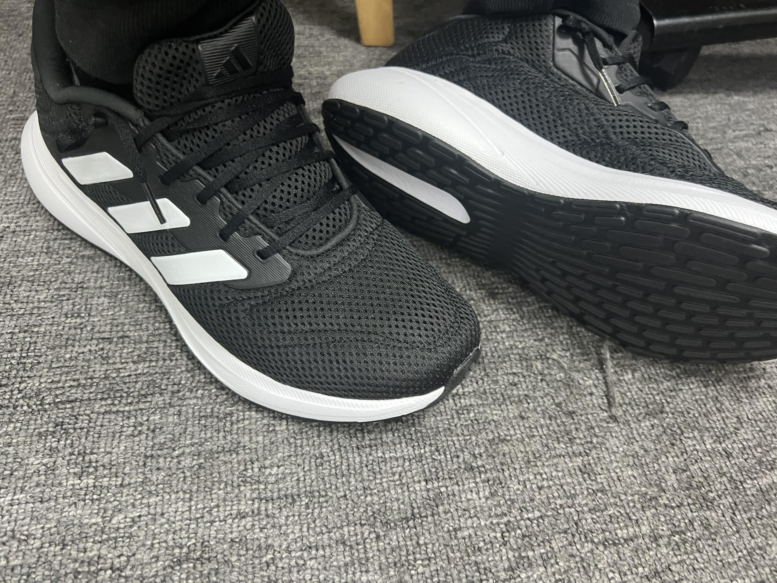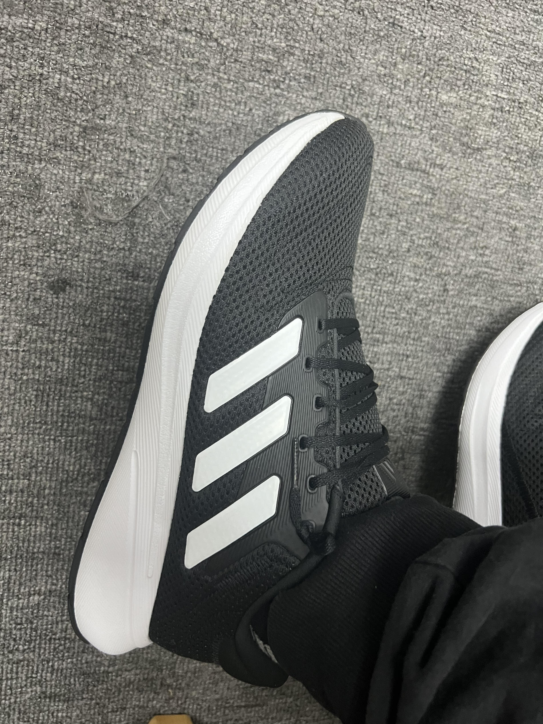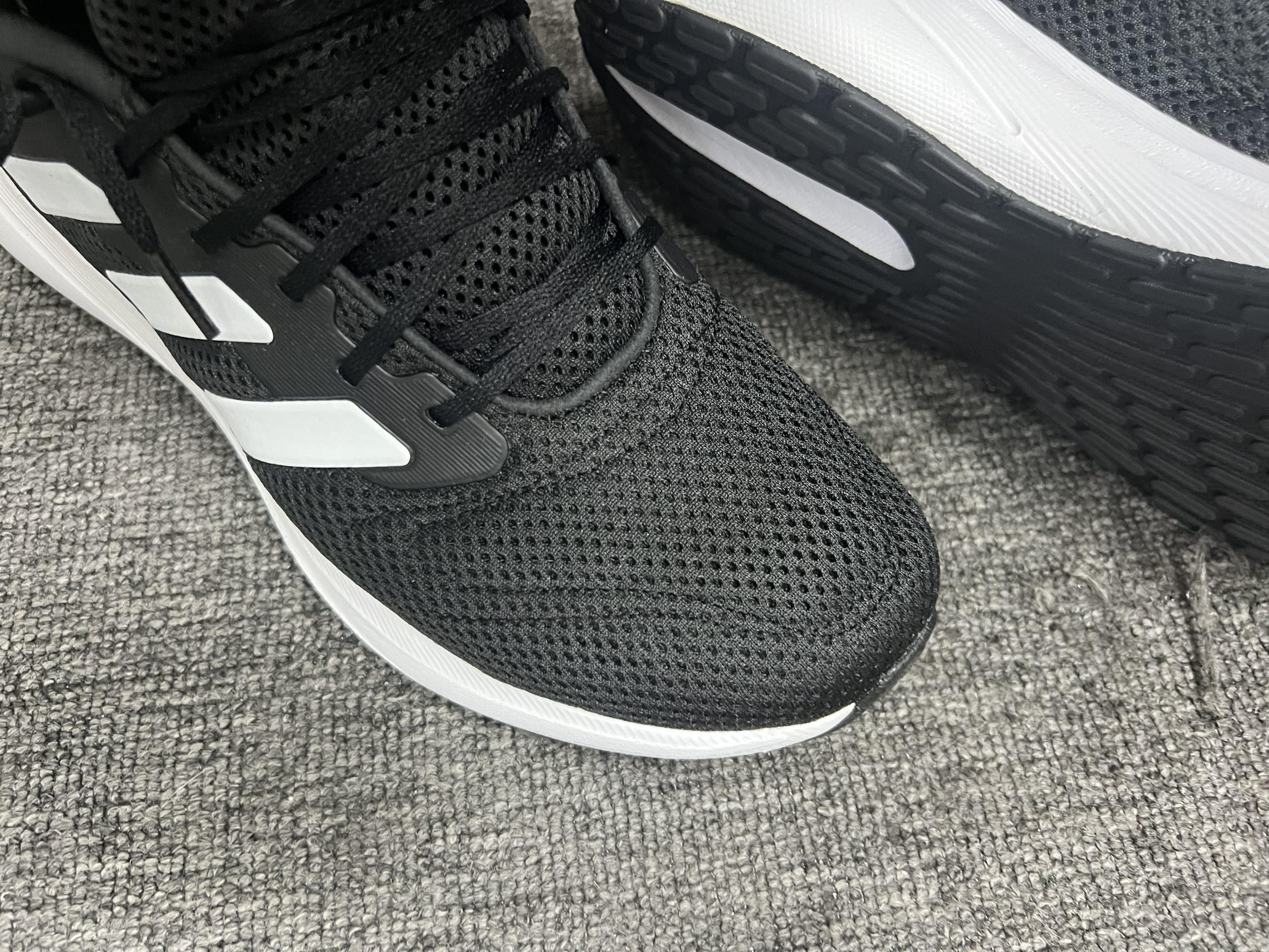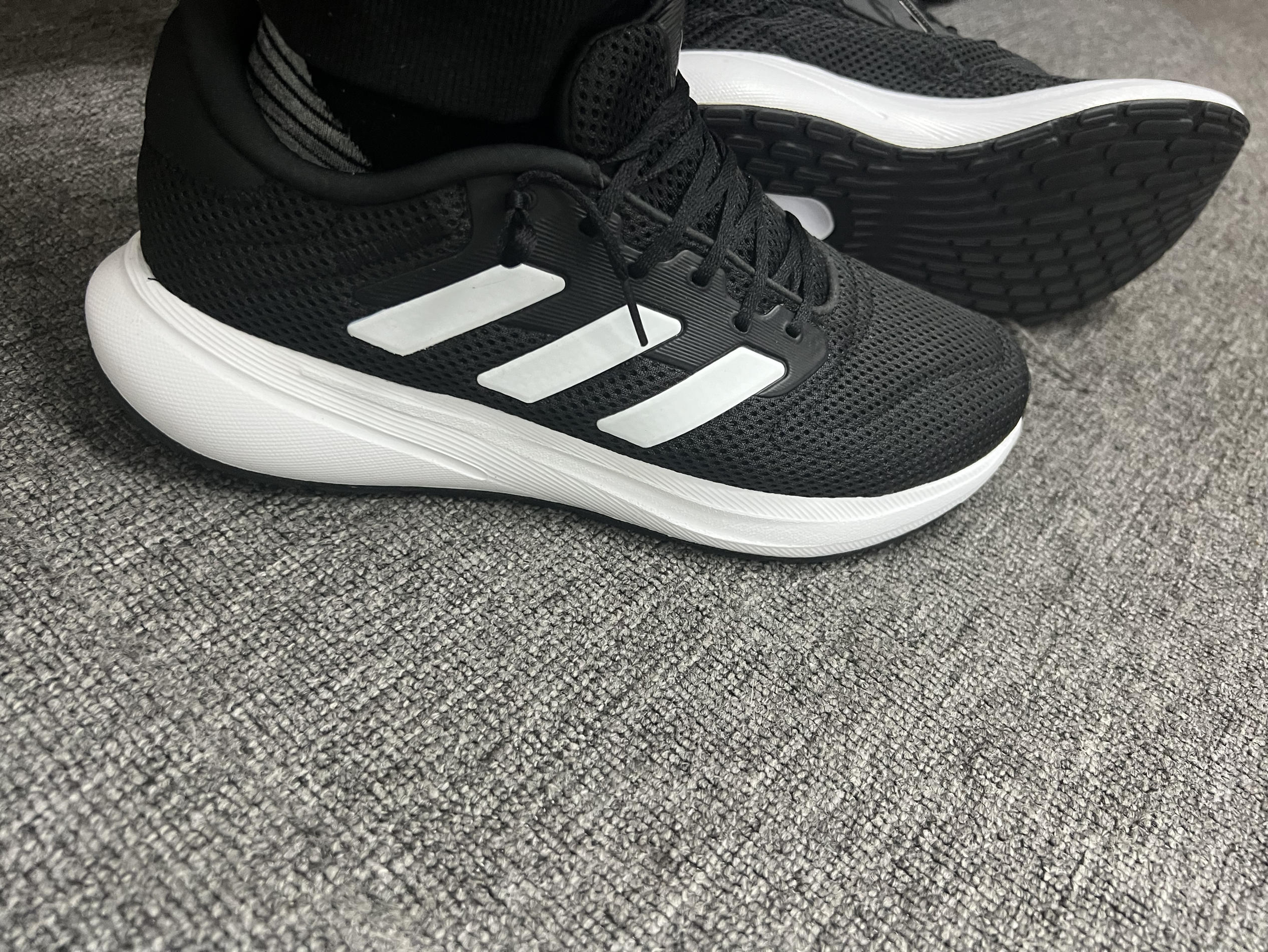 阿迪达斯最基础的跑鞋。这次选通勤鞋为啥没挑国产品牌?我来说个内心真实想法∶因为这双阿迪一百六十块钱。它有橡胶大底。对。我之前买同价位的国产休闲鞋,都是中底泡棉直接做的一体大底。轻是轻了,但是杭州这个下雨下得哦……雨天走在人行道上泡棉滑到无法控制,几次都差点摔在公司楼下。所以后来我再也不考虑泡棉直接下地的休闲鞋或者跑鞋了,必须有橡胶大底。然后橡胶大底的鞋吧,一百多块钱的又很少,特别是叫的出名字的牌子...