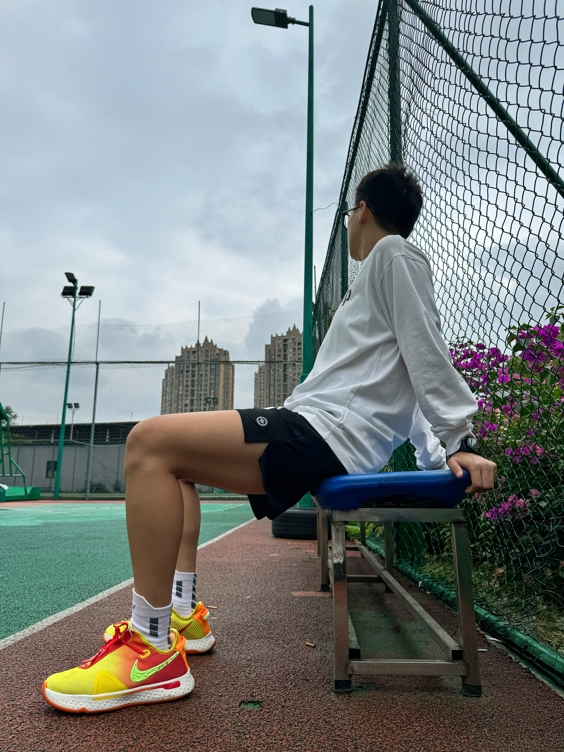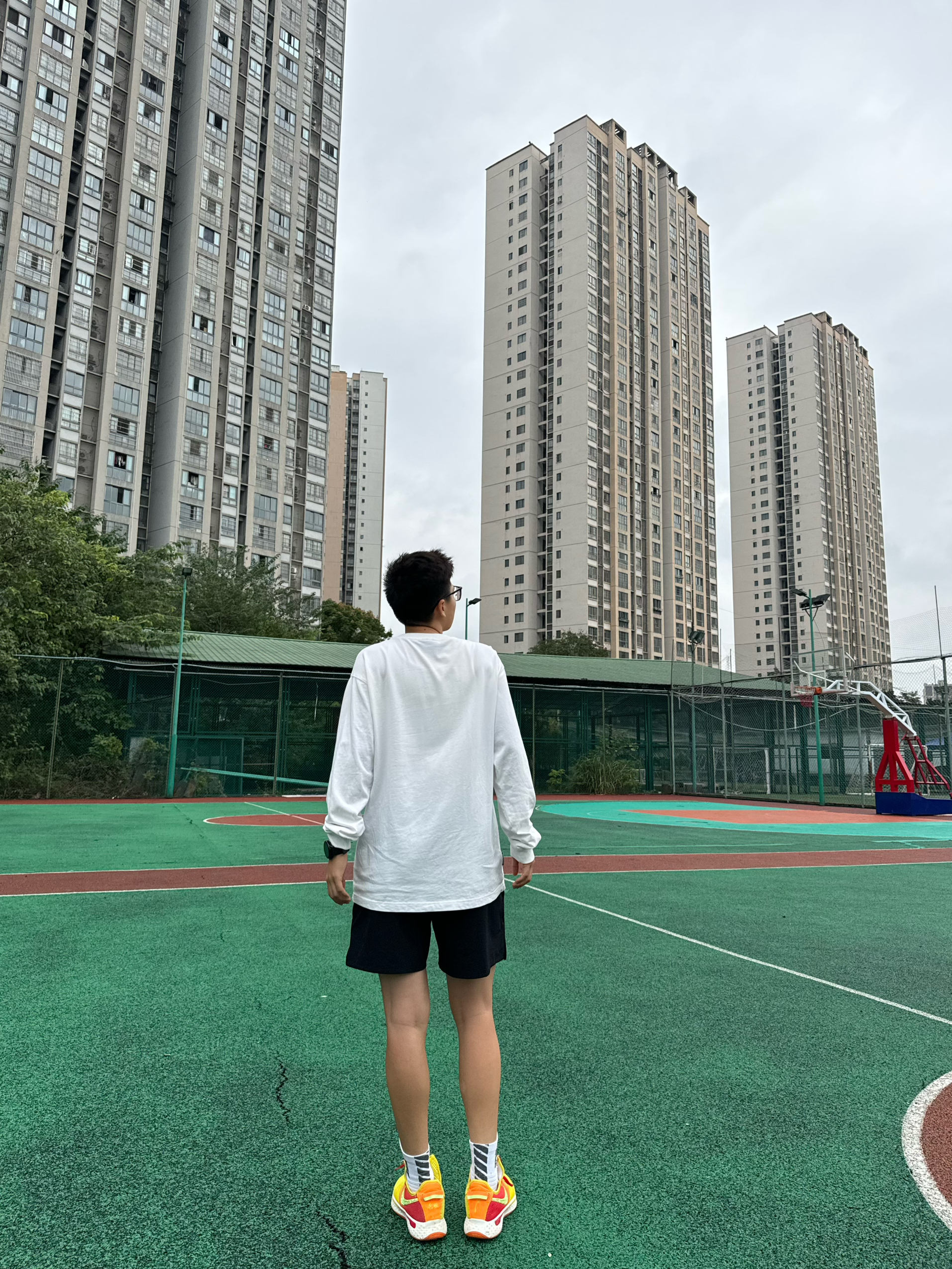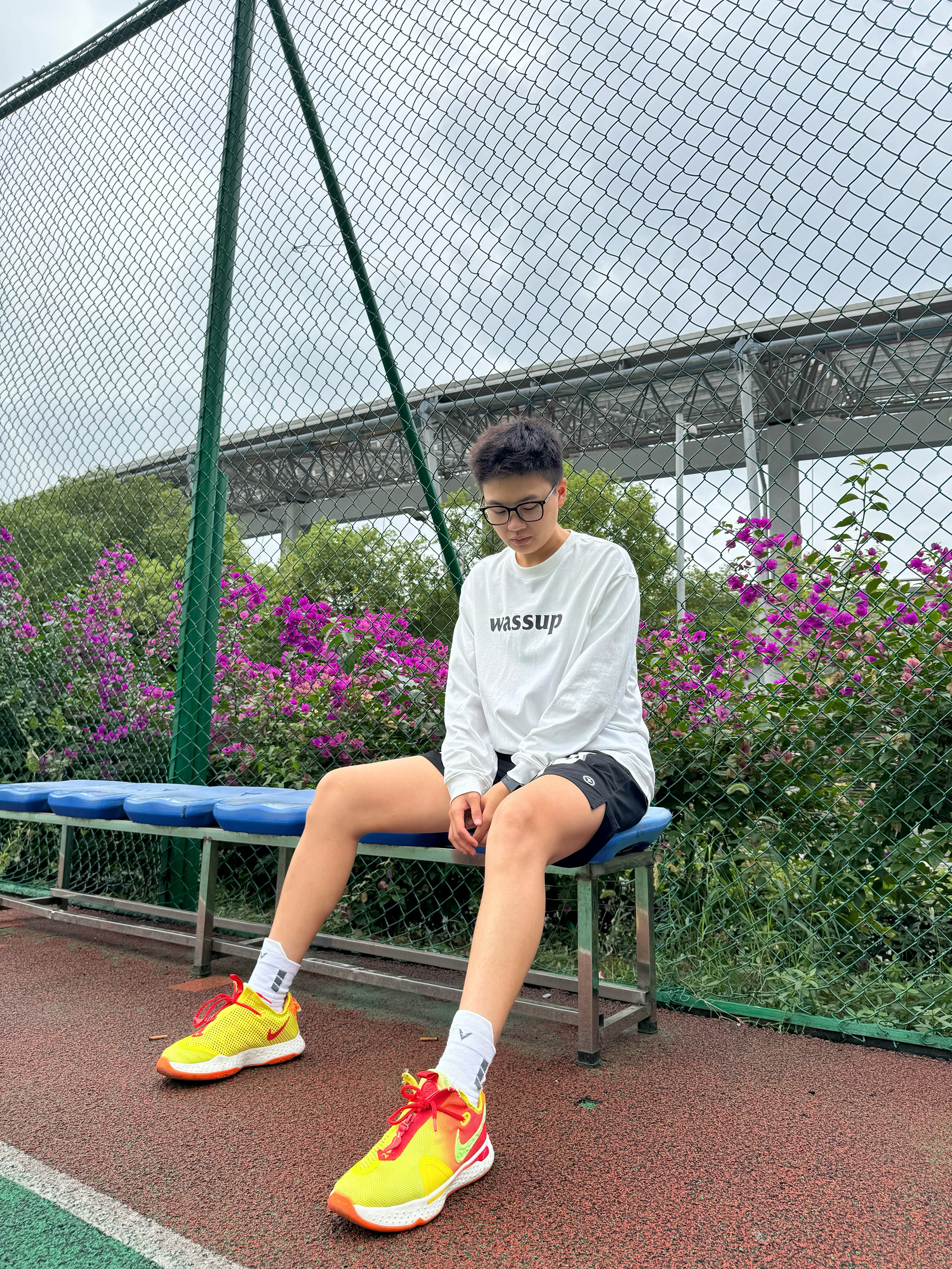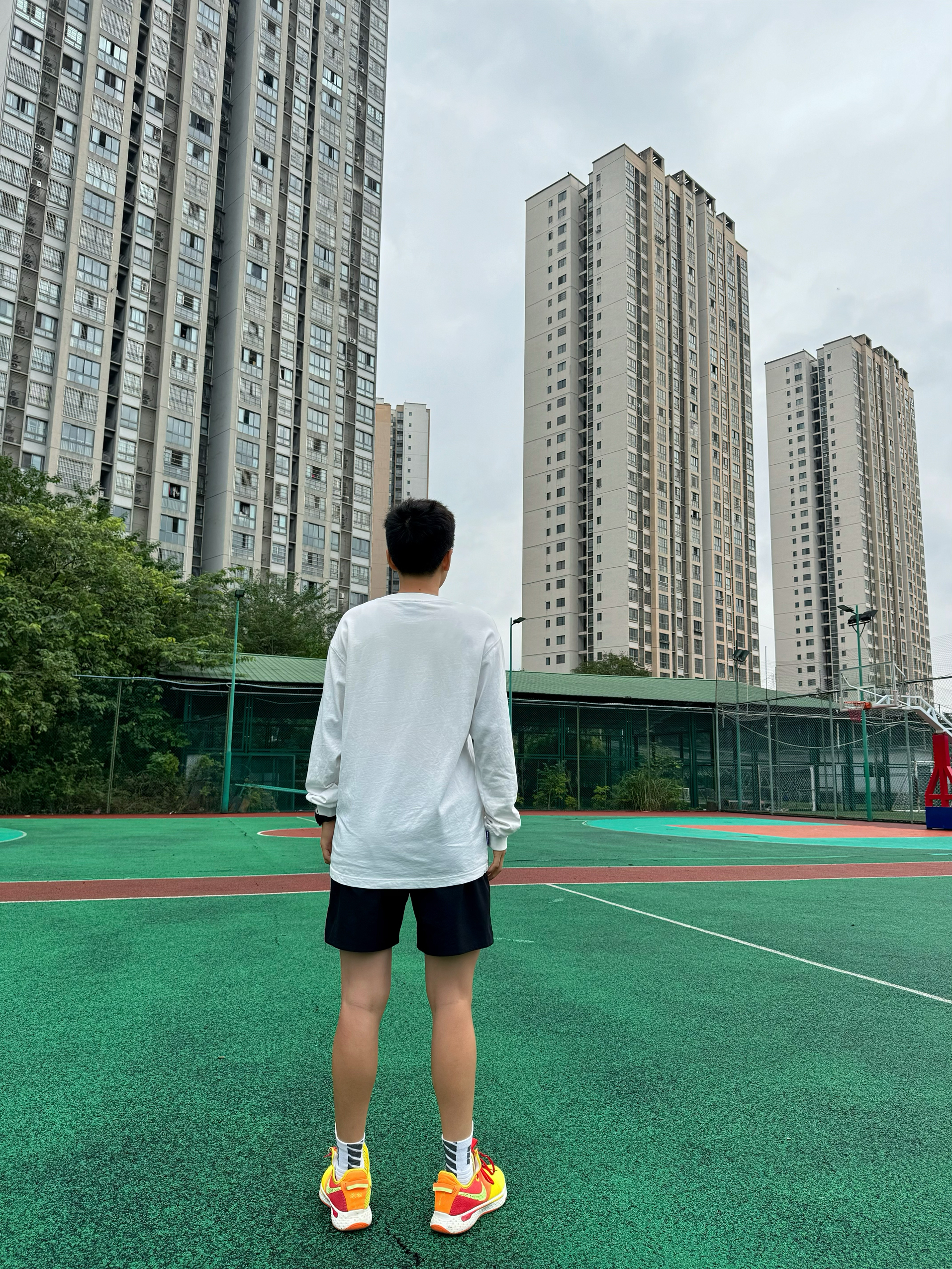 身高|体重:174 67kg(女) 🧍♂️ 穿搭风格:运动休闲 👔 上衣:上身的是wassup的基础款长袖T恤,纯棉材质,亲肤,柔软。有点偏大,能遮住臀部,显瘦。衣服重量适中,出去投篮穿它,然后穿个外套就差不多了。适合这个季节穿。白色真的很显年轻,永远的少年感满溢! 👖 下装:tipoff短裤 👟 鞋子:pg4 🎒配饰: