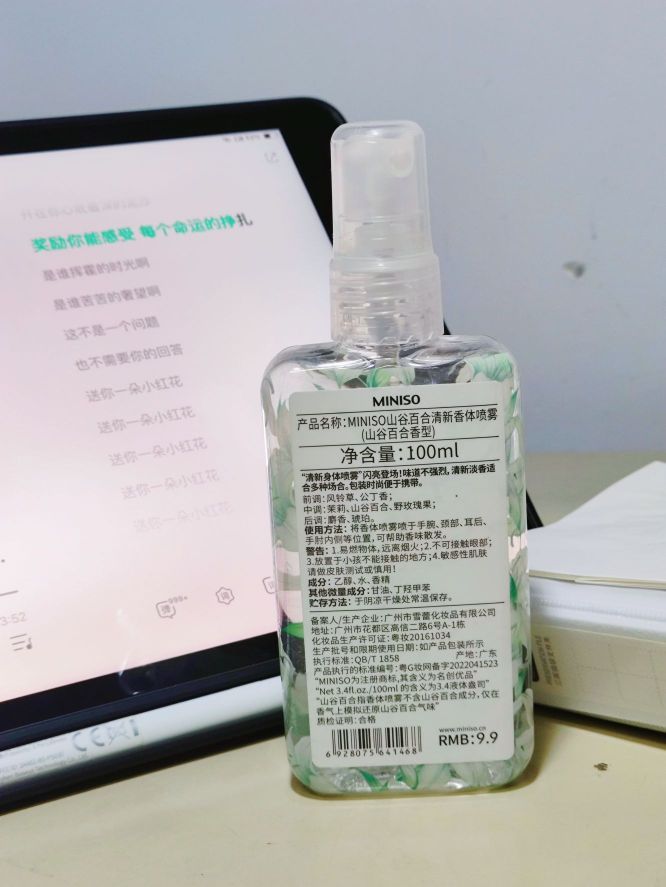 本篇笔记关联了MINISO/名创优品 香体喷雾套装 清香卧室 山谷百合100ml*2等商品,为用户提供真实的使用体验和购买参考。