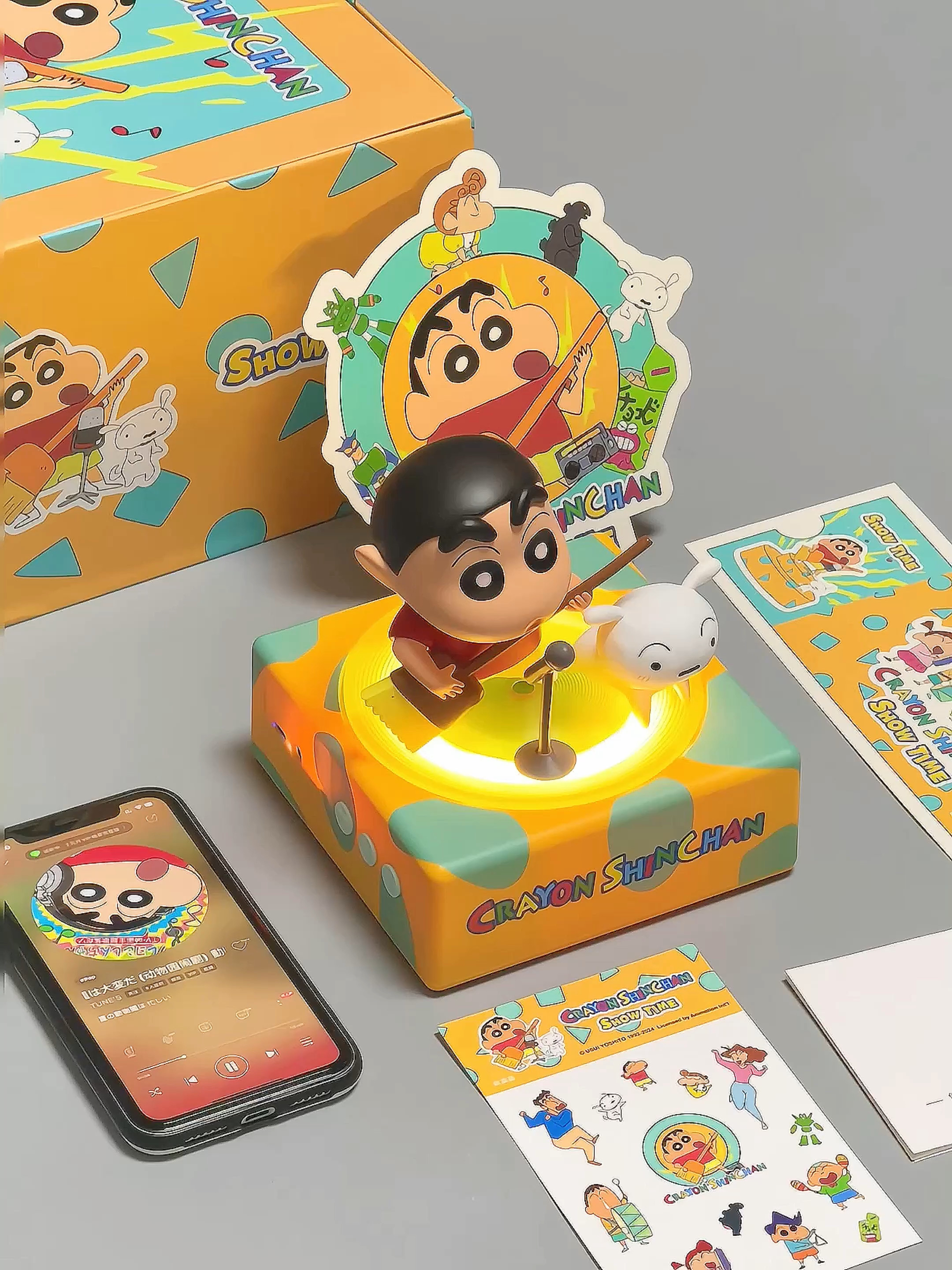 谁懂这对于蜡笔小新控的吸引力阿 打开以为是桌搭 没想到是蜡笔小新音箱 而且播放音乐唱片还会随之转动 我试了试音质🎶蛮不错的 不用的时候光摆在那里就很好看诶 这么可爱的小新 我已经舍不得送男友了🥹