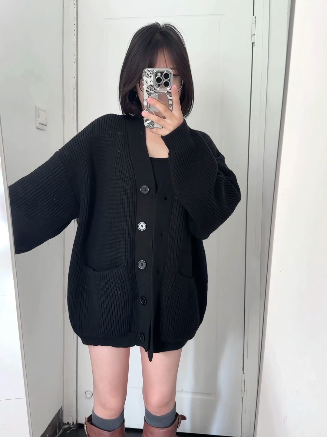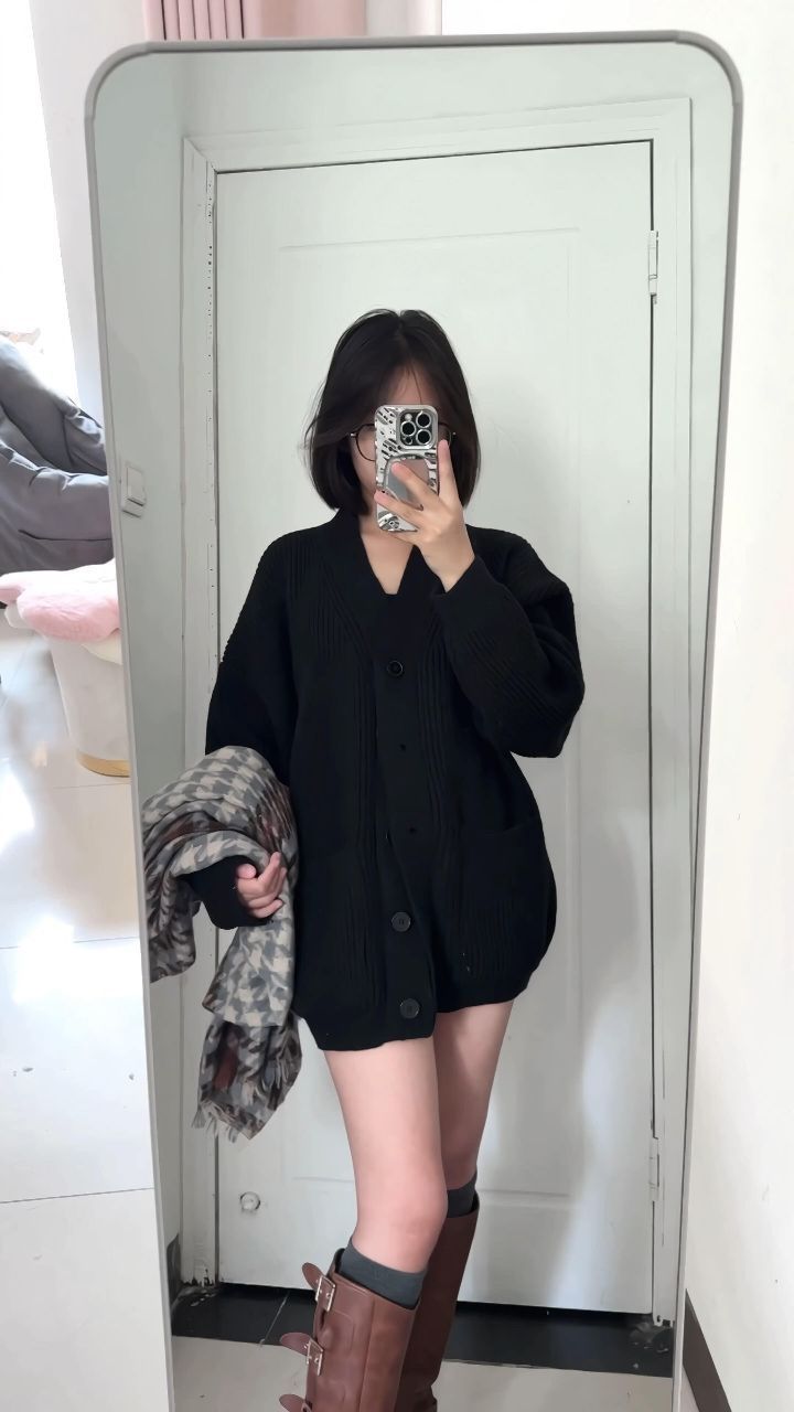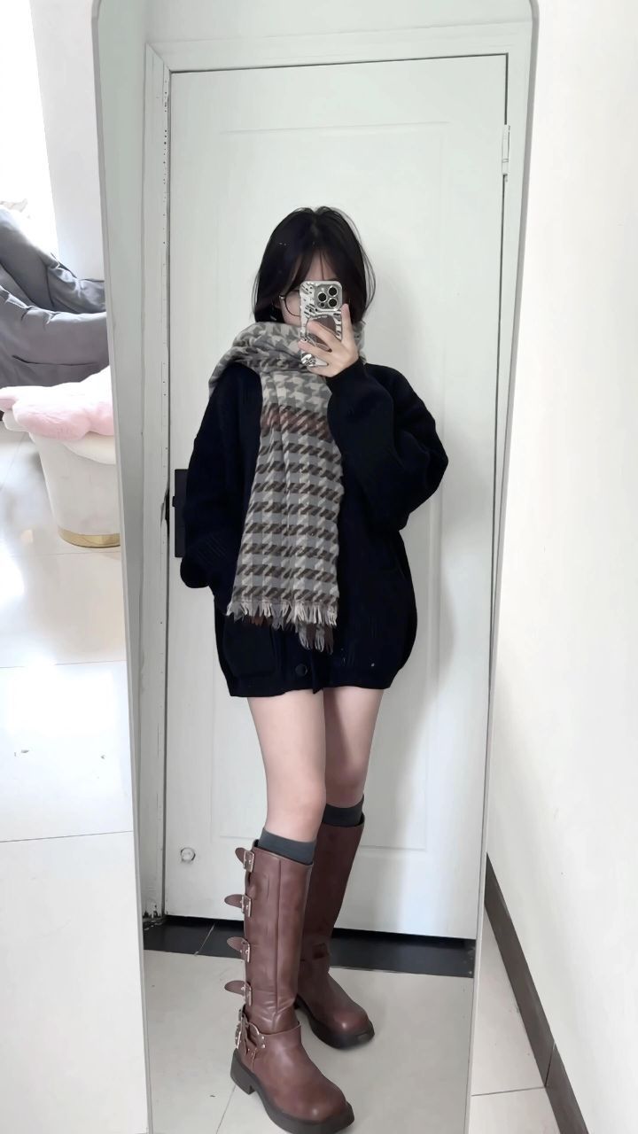 162/102斤H型身材(无广) 毛衣开衫➕围巾➕拼接长袜➕棕色靴子一整个初秋氛围感穿搭 替大家试过了这个毛衣开衫搭配围巾有氛围感,不搭围巾穿也不显胖,质量版型很好不起球有垂感性价比高(两位数)很难不爱!