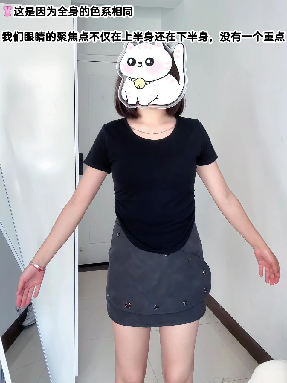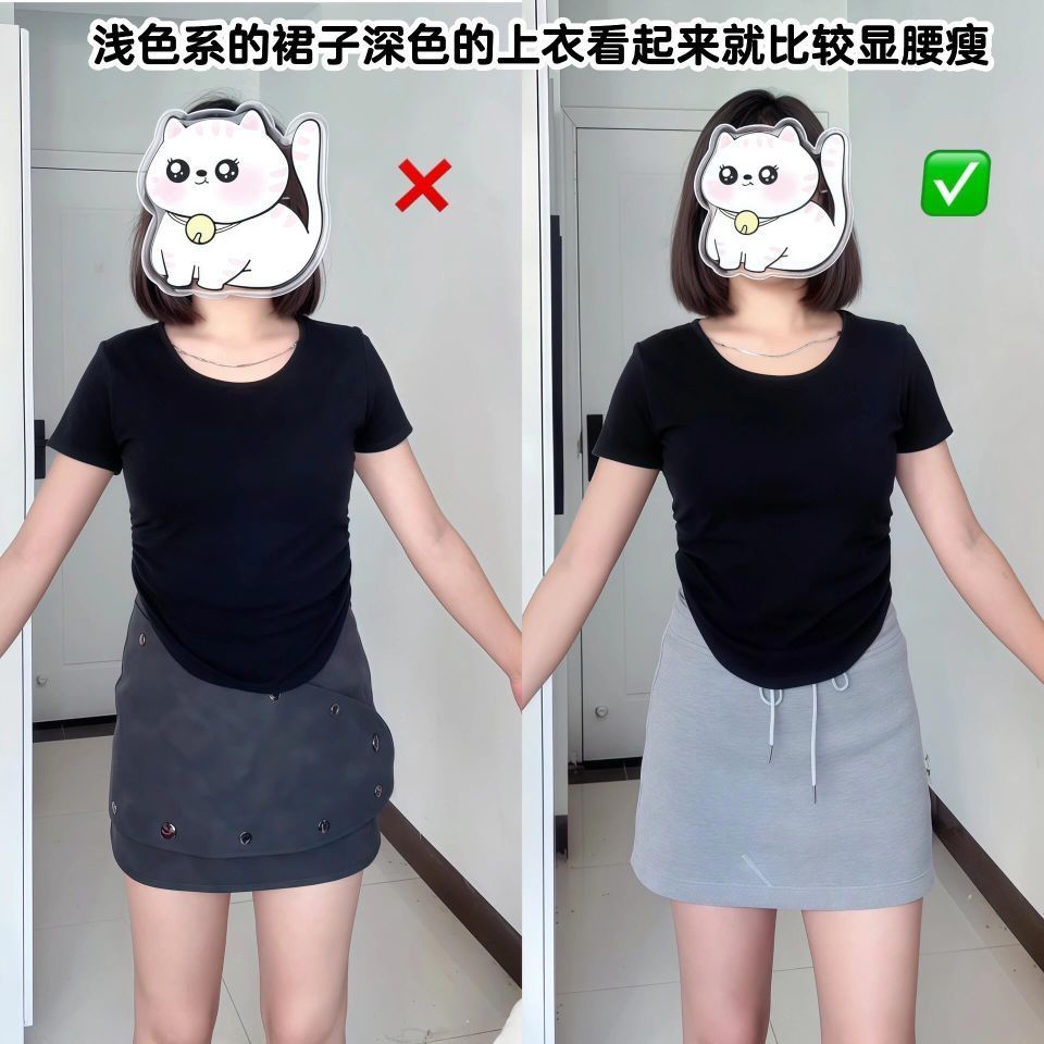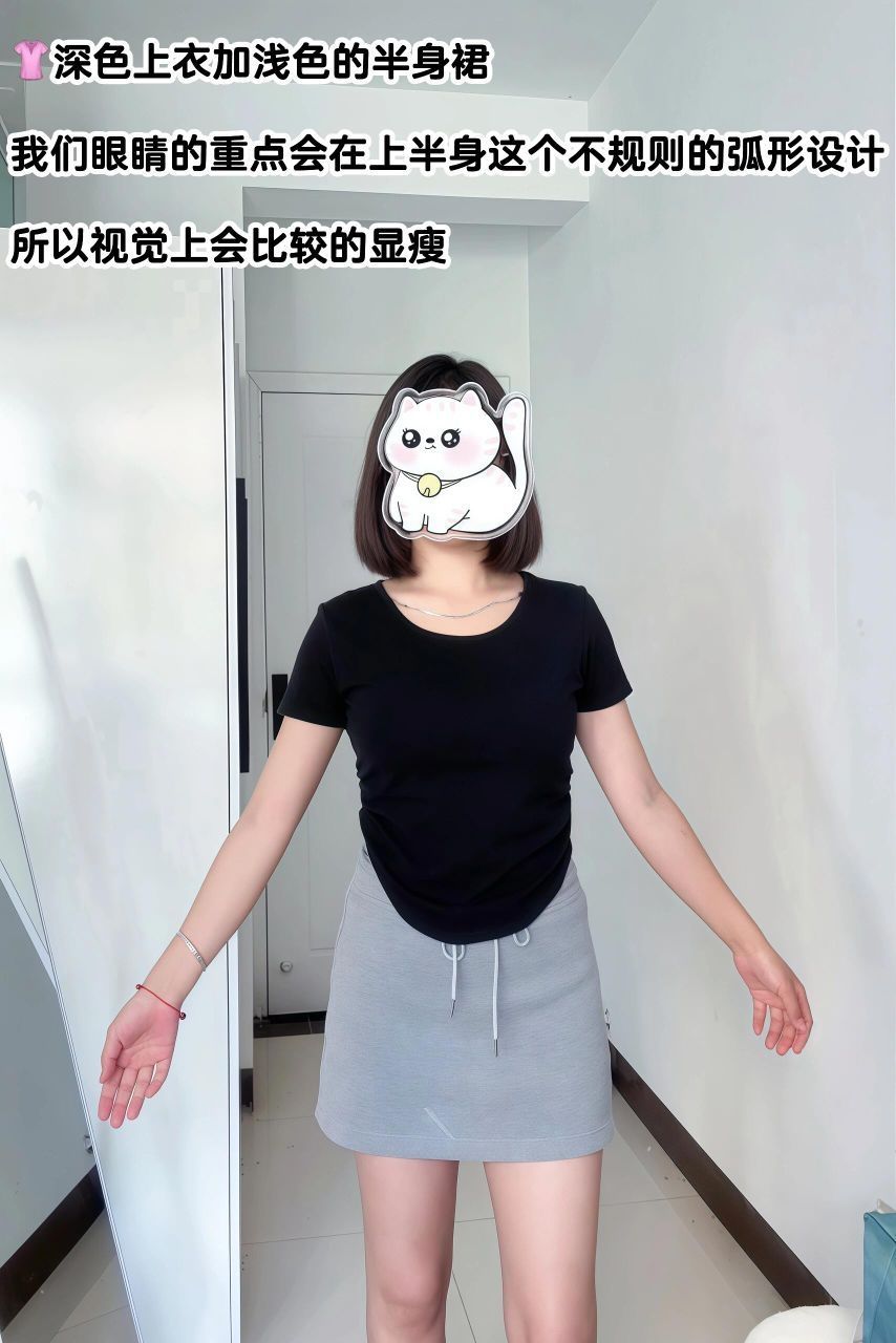 162/103H型身材 👗:这种贴身的半身裙H型宝宝真的不能搭配短紧身上衣穿啊,简直完全暴露缺点了。 1️⃣穿半裙的时候上身和下身色系最好不要相同,因为这样我们全身都是重点,很容易暴露腰和胯同宽的缺点。 2️⃣H型宝宝不要担心自己不能穿紧身的上衣或者不能穿贴身半身裙,不能放到一起但是我们可以分开搭配啊也是很好看的