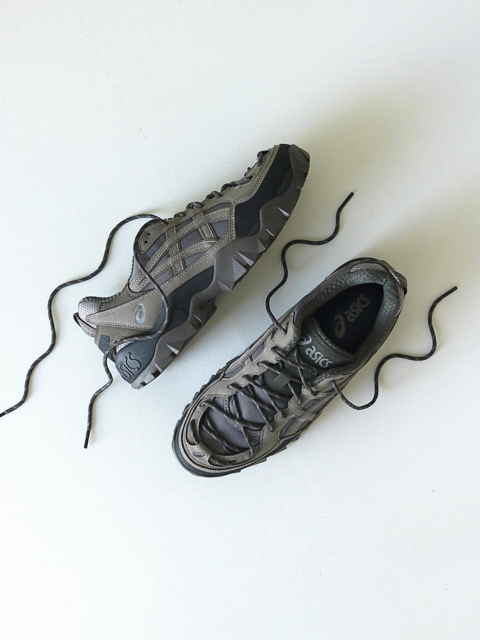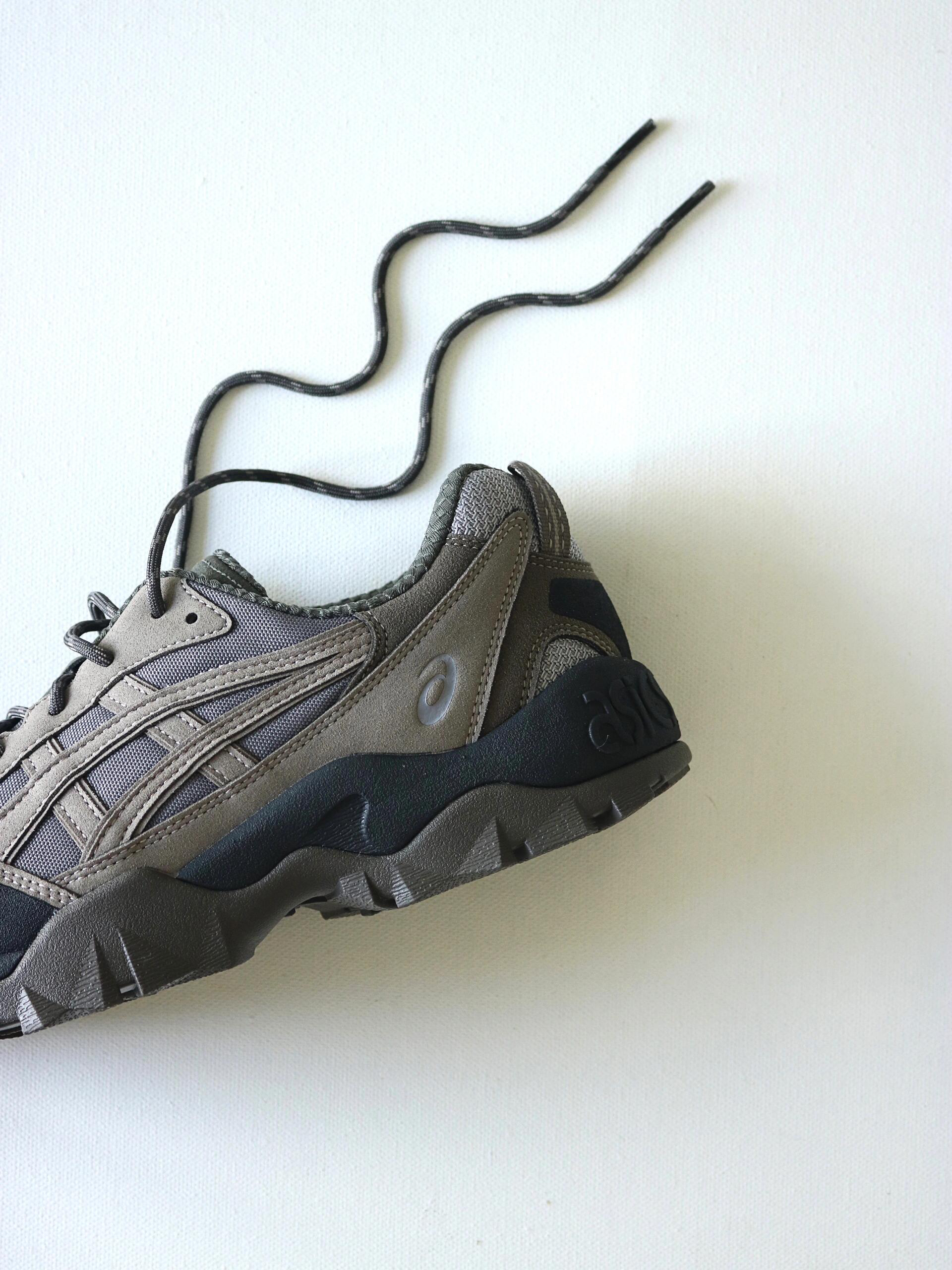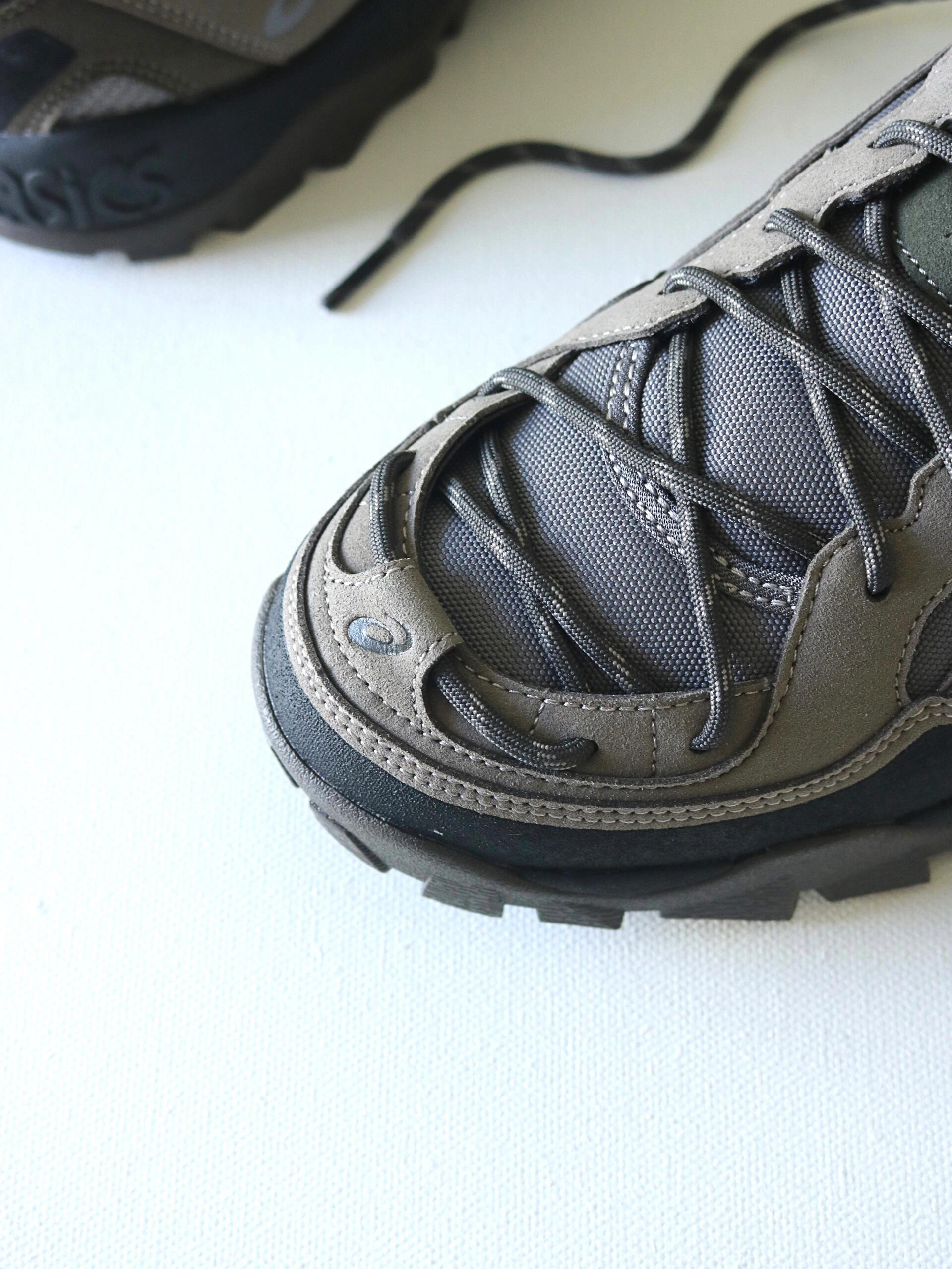 硬朗的造型配以低饱和度的多重灰,户外机能属性满满。 宽鞋楦设计,更适合亚洲人脚型,贴合脚型,不磨脚。鞋面采用防撕裂材料,耐磨防刮。鞋头橡胶防护,保护脚趾! 延伸至脚趾的鞋带系统,可以更好地提升包裹性,防止脚掌前冲。同时圆形登山鞋带,防滑不易脱落! 中底采用Asics当家Gel缓震科技,韧中带弹。鞋底则是高耐磨锯齿橡胶,防滑不易卡泥!
