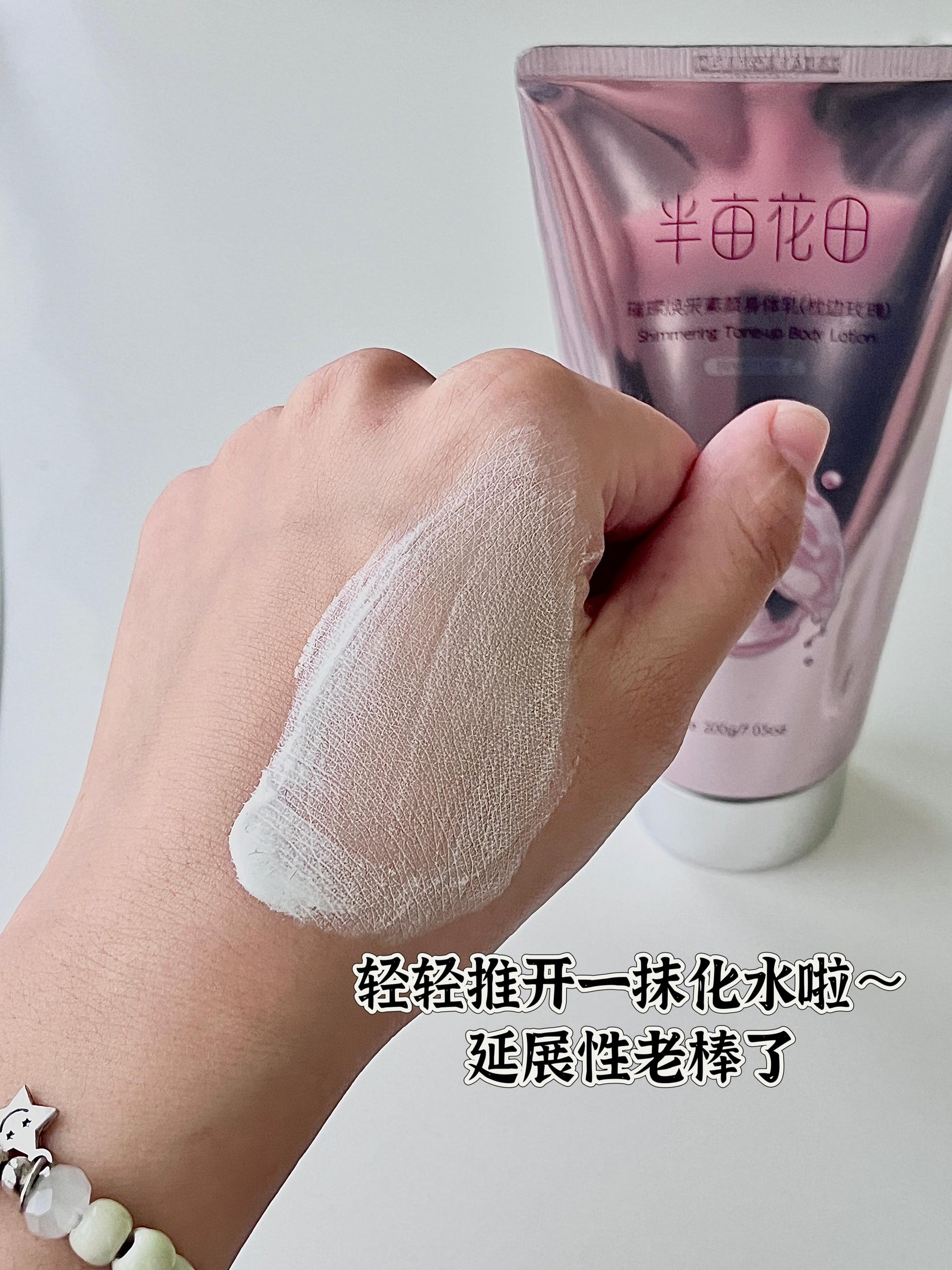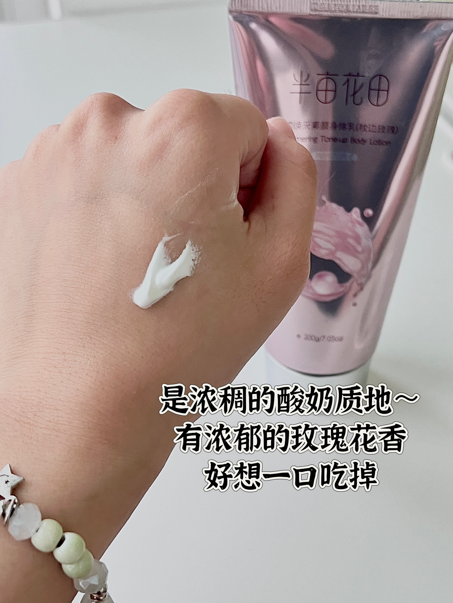 半亩花田身体素颜霜 夏天出门必备素颜霜!化妆以后身体和脸有色差的 姐妹真的要试试!涂完感觉自己在发光~ 烟酰胺:提亮肤色 珍珠粉:润泽肌肤 泛醇:保湿水润 乳木果油:强化肌肤水分及屏障保护 都是去黄提亮扛把子成分!! 冰淇淋乳液质地 轻轻一推就开 没有油腻的厚重感 很清爽的感觉 防水防汗 出汗不尴尬 富家千金玫瑰第香 白带体香! 无需卸妆! 沐浴露冲洗即可!