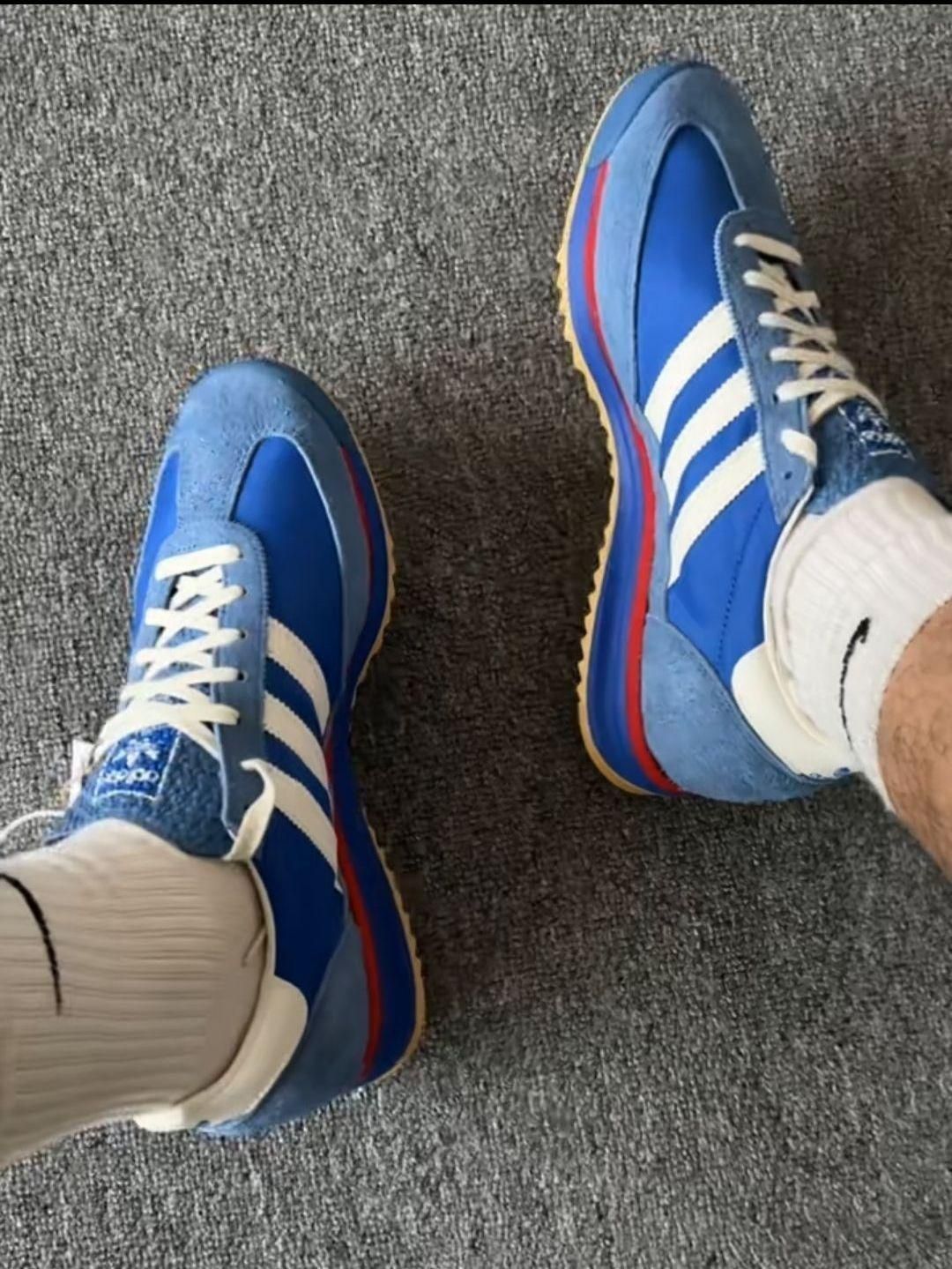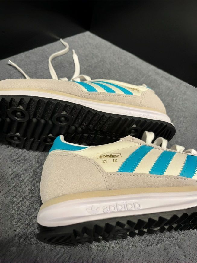 最近Adidas三叶草的SL72系列真香! 就像这款三叶草 SL72蓝白 复古跑鞋的造型,轻盈舒适的脚感~反绒皮鞋面穿久也不会磨脚 搭配牛仔裤运动裤都好看~