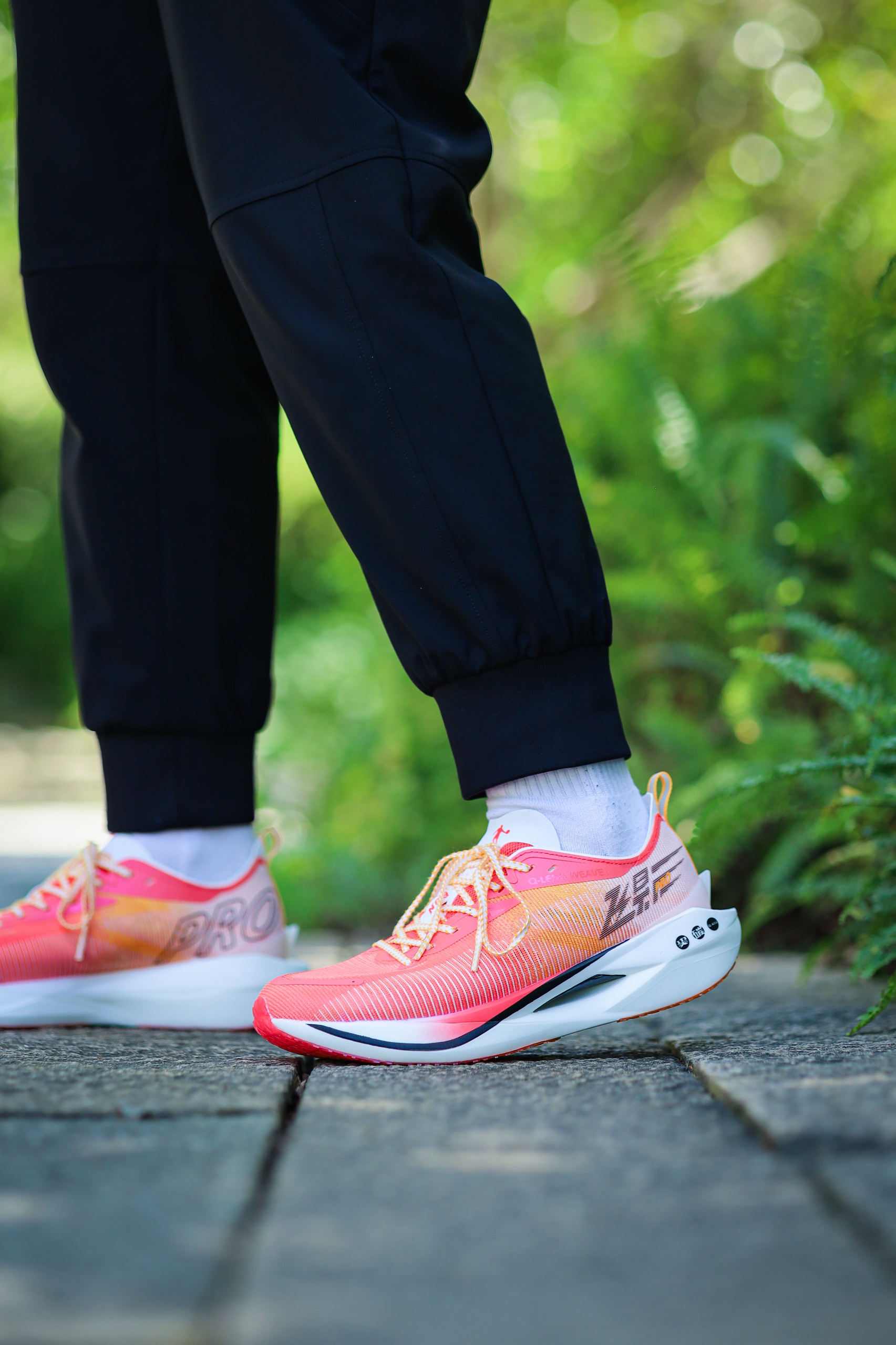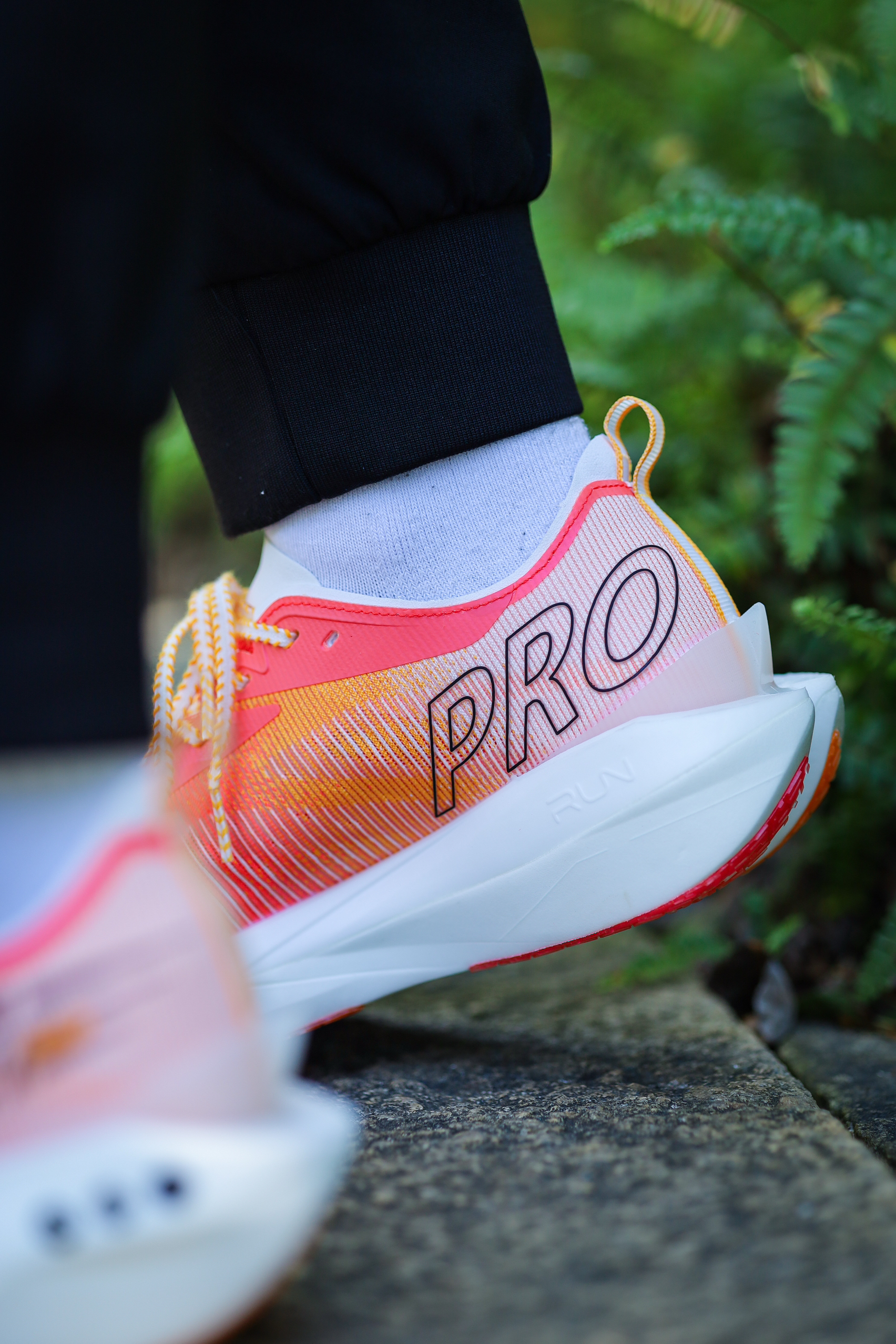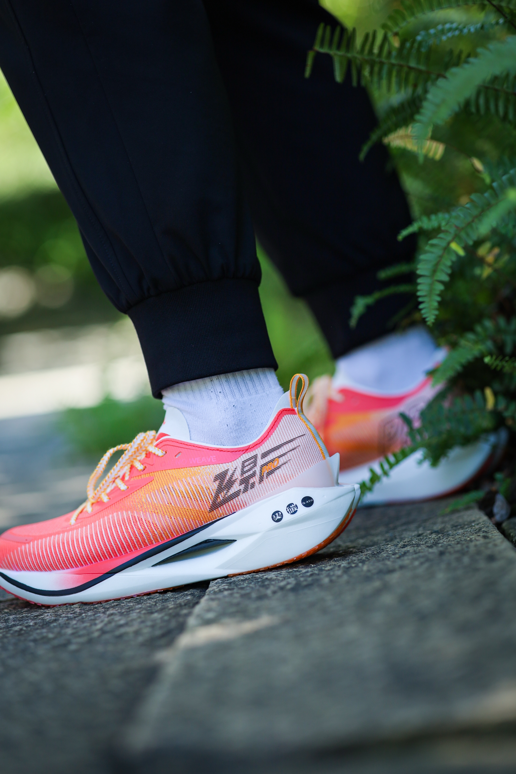 之前给大家分享过飞影PRO YOUNG,也就是飞影PRO的青少年版,其实除了尺码和配色的差异,它与成人版并没有其它区别。今天再来一组上脚吧! 细绞综编织鞋面,轻质透气,强度、包裹和舒适度都不错。 三明治结构中底,上层巭PRO,下层巭LIGHT,脚感韧弹澎湃。内嵌一块延伸至前掌的碳板,提供抗扭支撑,和助推作用。同时碳板的硬度并不会过强,所以驾驭门槛不高。后跟也有环抱式的tpu,稳定性非常出色。 C...