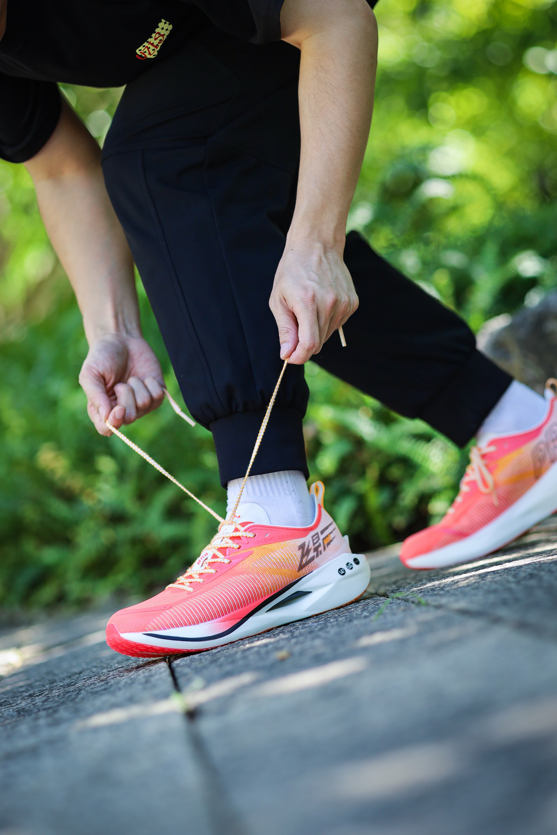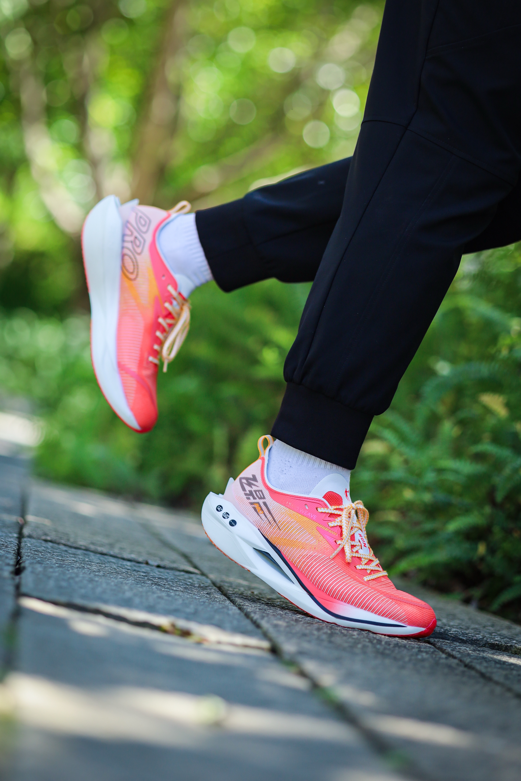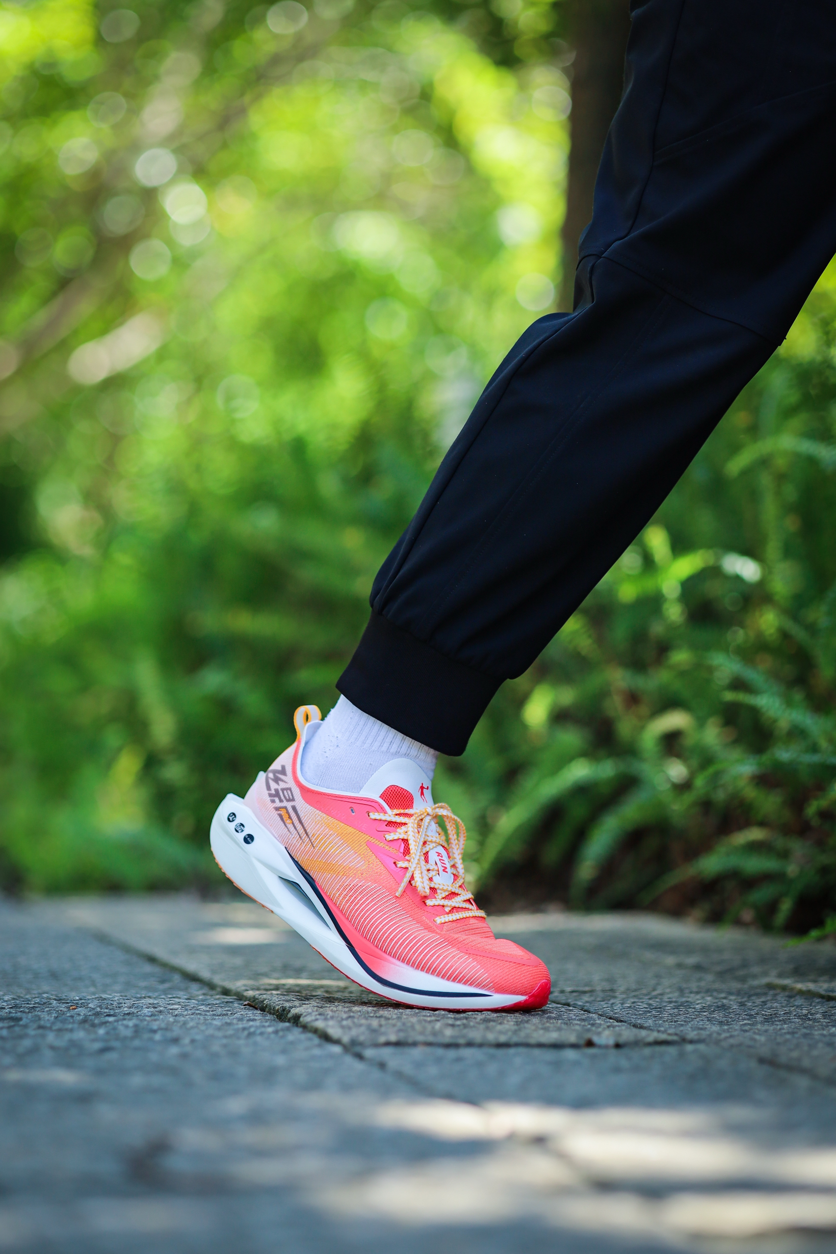 之前给大家分享过飞影PRO YOUNG,也就是飞影PRO的青少年版,其实除了尺码和配色的差异,它与成人版并没有其它区别。今天再来一组上脚吧! 细绞综编织鞋面,轻质透气,强度、包裹和舒适度都不错。 三明治结构中底,上层巭PRO,下层巭LIGHT,脚感韧弹澎湃。内嵌一块延伸至前掌的碳板,提供抗扭支撑,和助推作用。同时碳板的硬度并不会过强,所以驾驭门槛不高。后跟也有环抱式的tpu,稳定性非常出色。 C...
