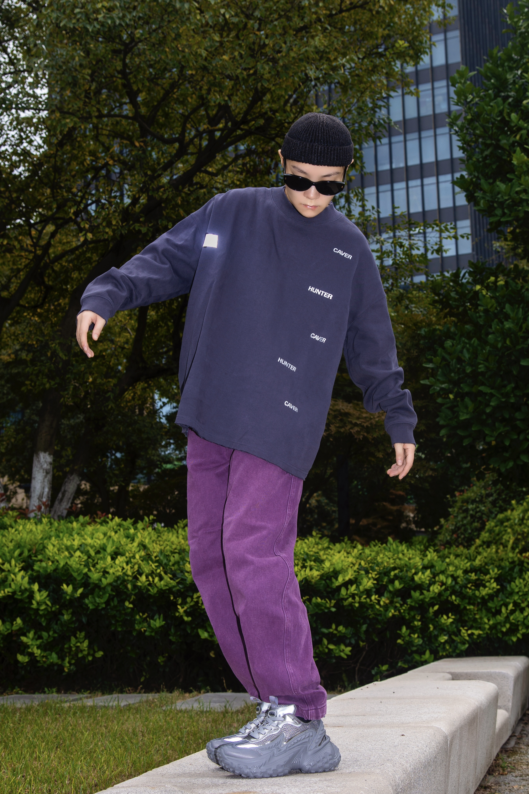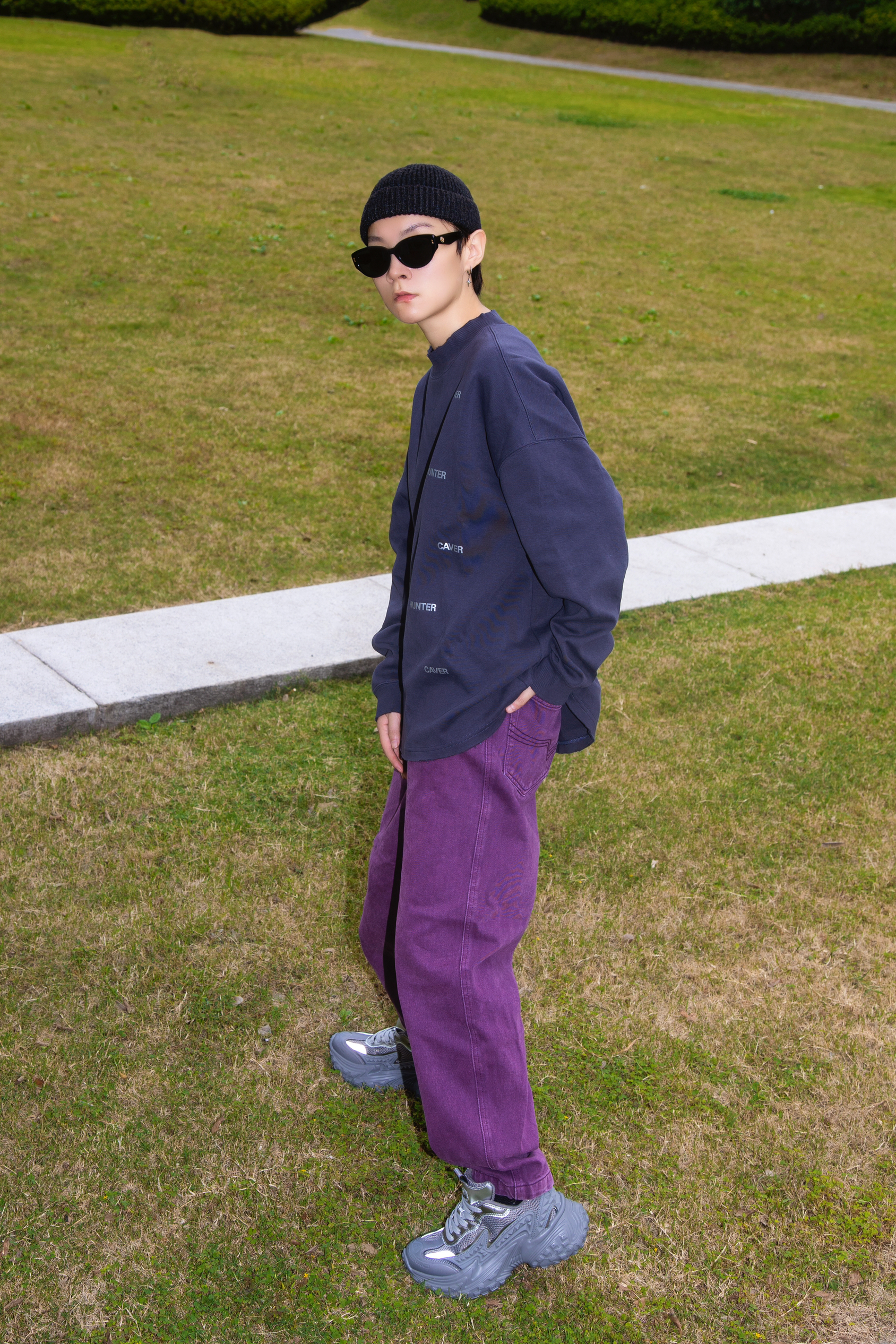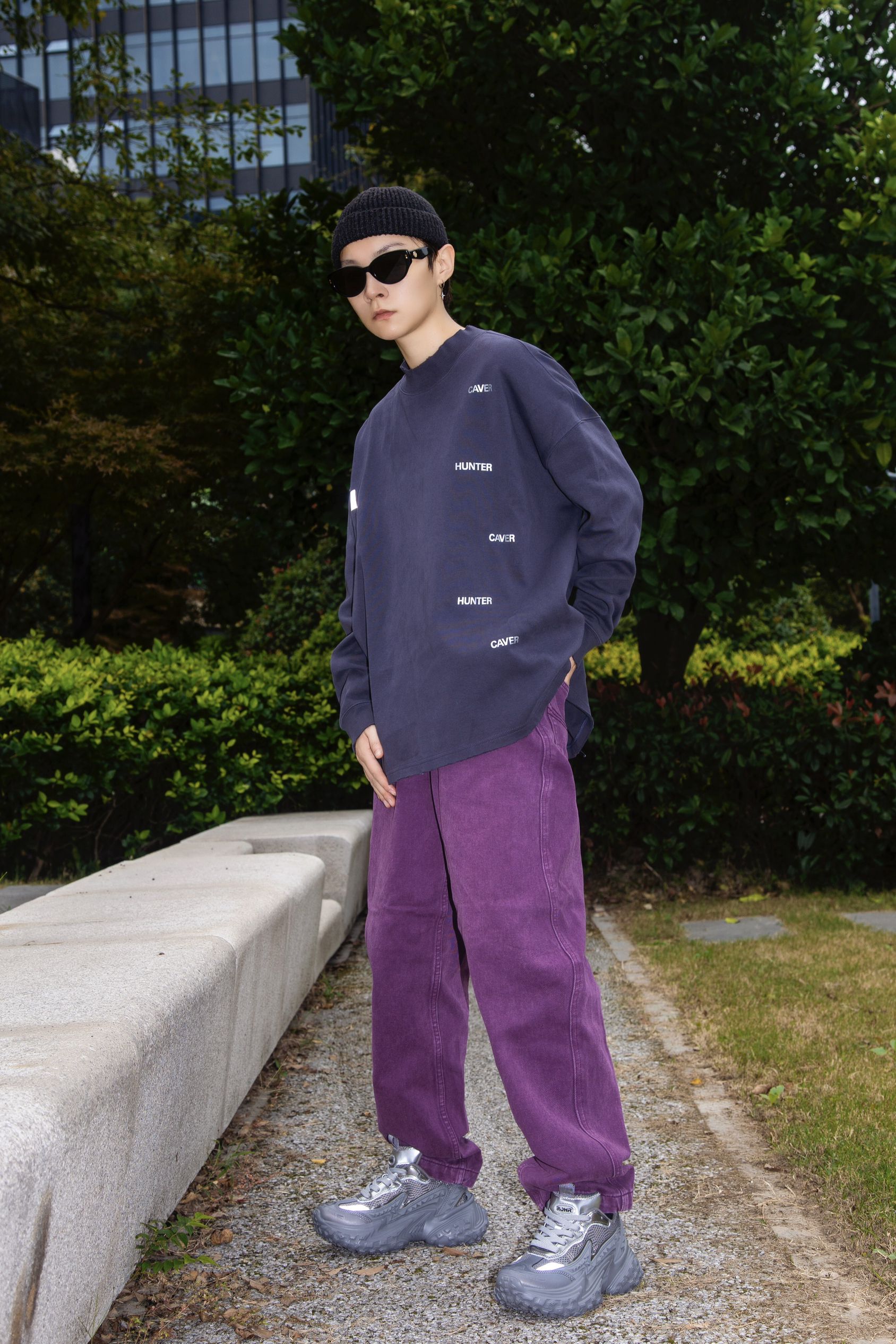 灰色和紫色搭配真的很可以 分享一套绝绝紫的格雷系穿搭 穿搭指南: 上身一件灰黑色长袖T恤 小高领配字母印花 简单随性 配一条紫色牛仔裤眼前一亮 选一双rohr老爹鞋 烟灰色和上衣刚好呼应 鞋底轮胎鞋的即视感 很时髦 厚鞋底穿起来贼舒服 灰和紫两个高级配色搭在一起 就问能行不能行
