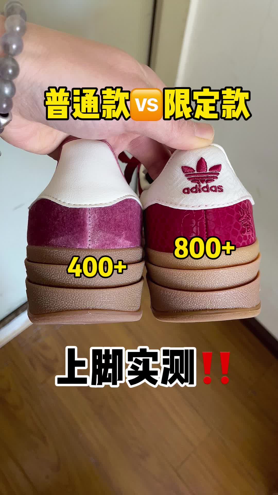 两双都是增高款的,不过♨️耐克的会稍微厚一点点🤏哦 我个人感觉上脚后耐克会更加厚实一点💪不过‼️耐克上脚份量感更重👉没有阿迪的舒服一点😯 耐克的话我感觉撞街率要比阿迪小很多呐😯 ‼️但是耐克最大的缺点‼️就是鞋底太滑了,有点硬所以在有水💦的地板上滑得很哦😯